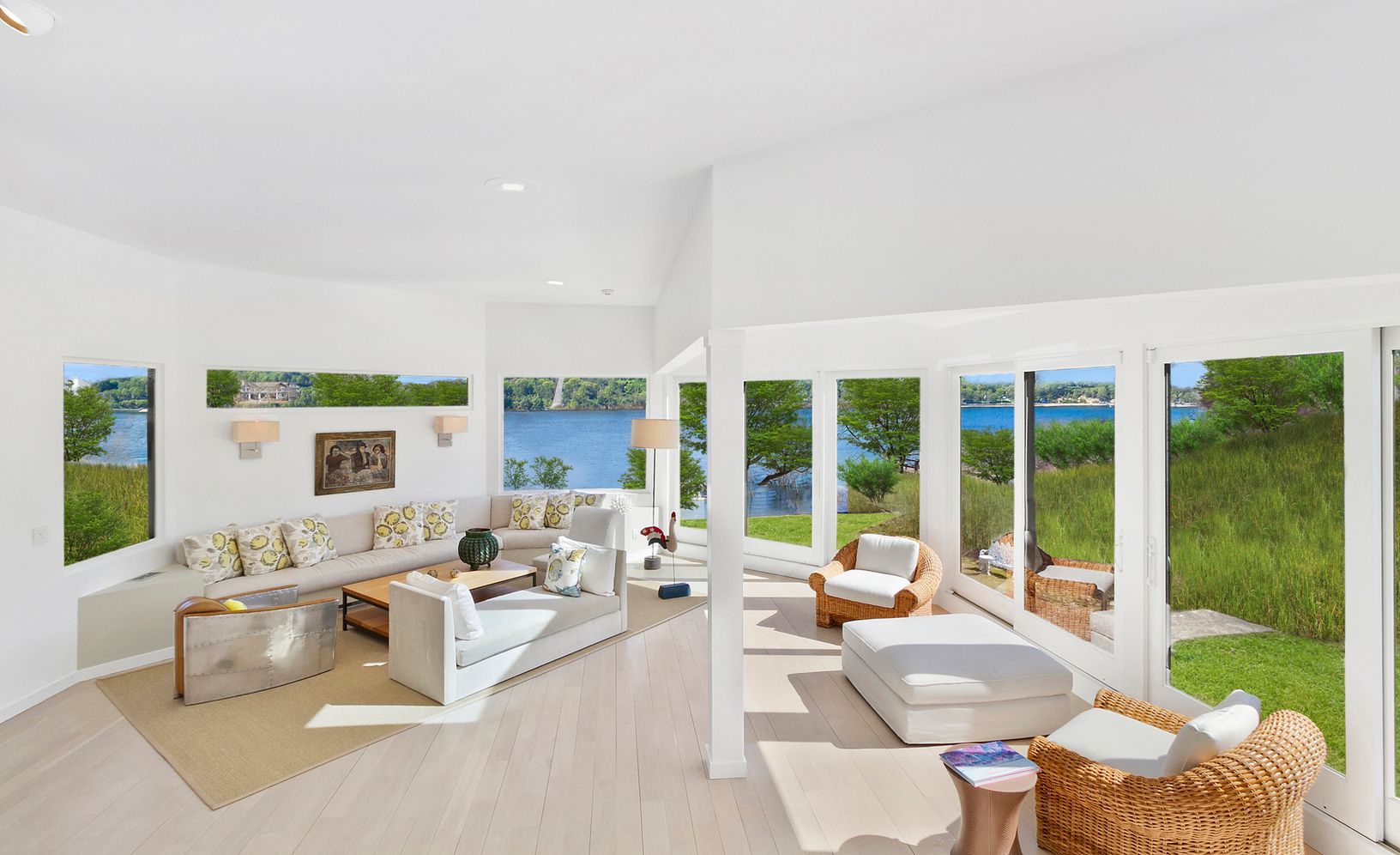 First Time Offered For Sale: This beautiful modern design by renowned architect, Gene Futterman, is privately situated on 1.40+/-acres, over 50' of' waterfrontage on Kellis Pond. It has a dock, beautiful gardens, two outdoor eating areas and heated Gunite pool. The house features four bedrooms, three and one-half baths; living room, dining area, family room, and full kitchen. The master bedroom, living room, family area roof deck and almost ev