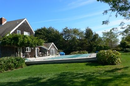 Close to town, 5 bedroom, 5 bathroom traditional with cac, heated pool and a short bike ride to Bridgehampton Village.