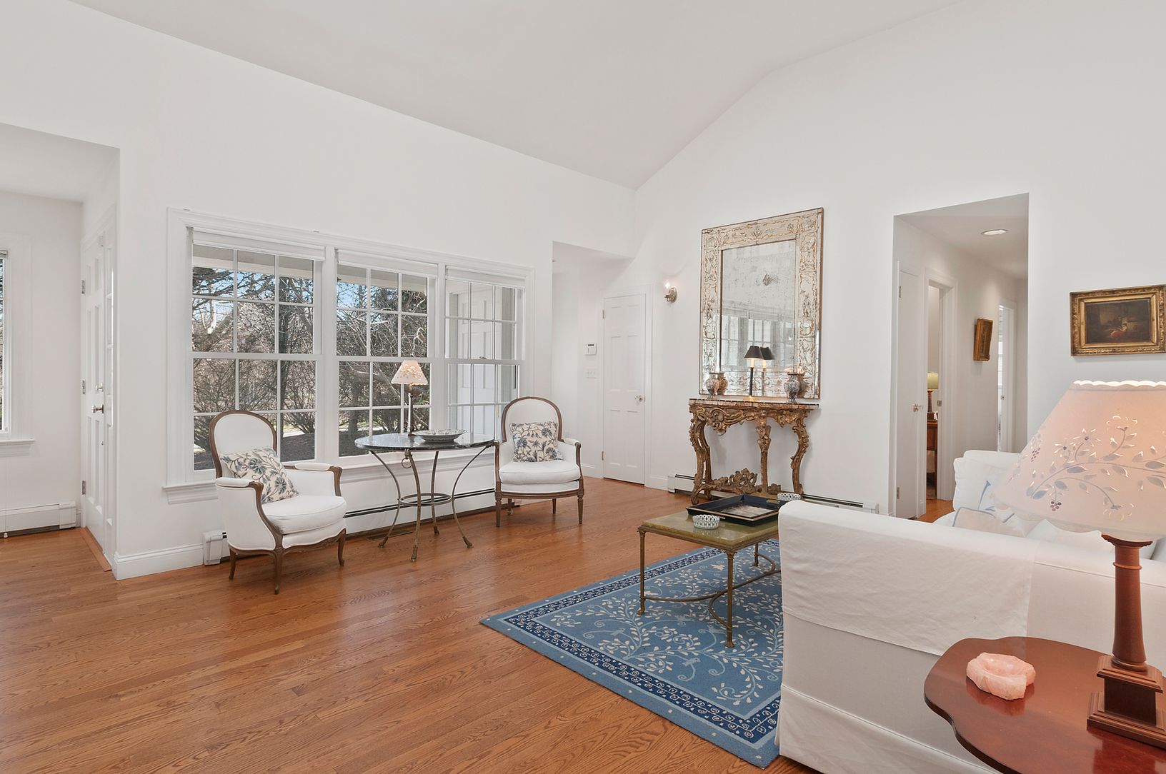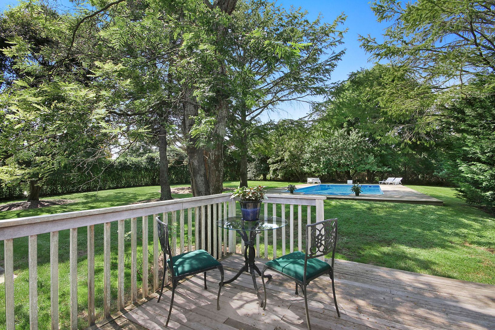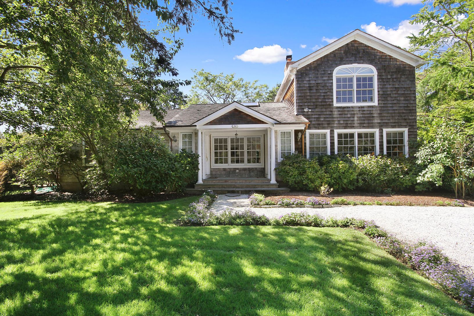 Quintessential Bridgehampton South Traditional offering 5 bedrooms (including a master both upstairs and downstairs), 4 baths, a beautifully renovated kitchen, and elegantly appointed formal rooms with an inviting open and circular flow. Entertaining spaces include a living room with fireplace, media room, and an eat-in kitchen which is open to a dining/family room. Three of the bedrooms are en suite, and two of them have either a private terr
