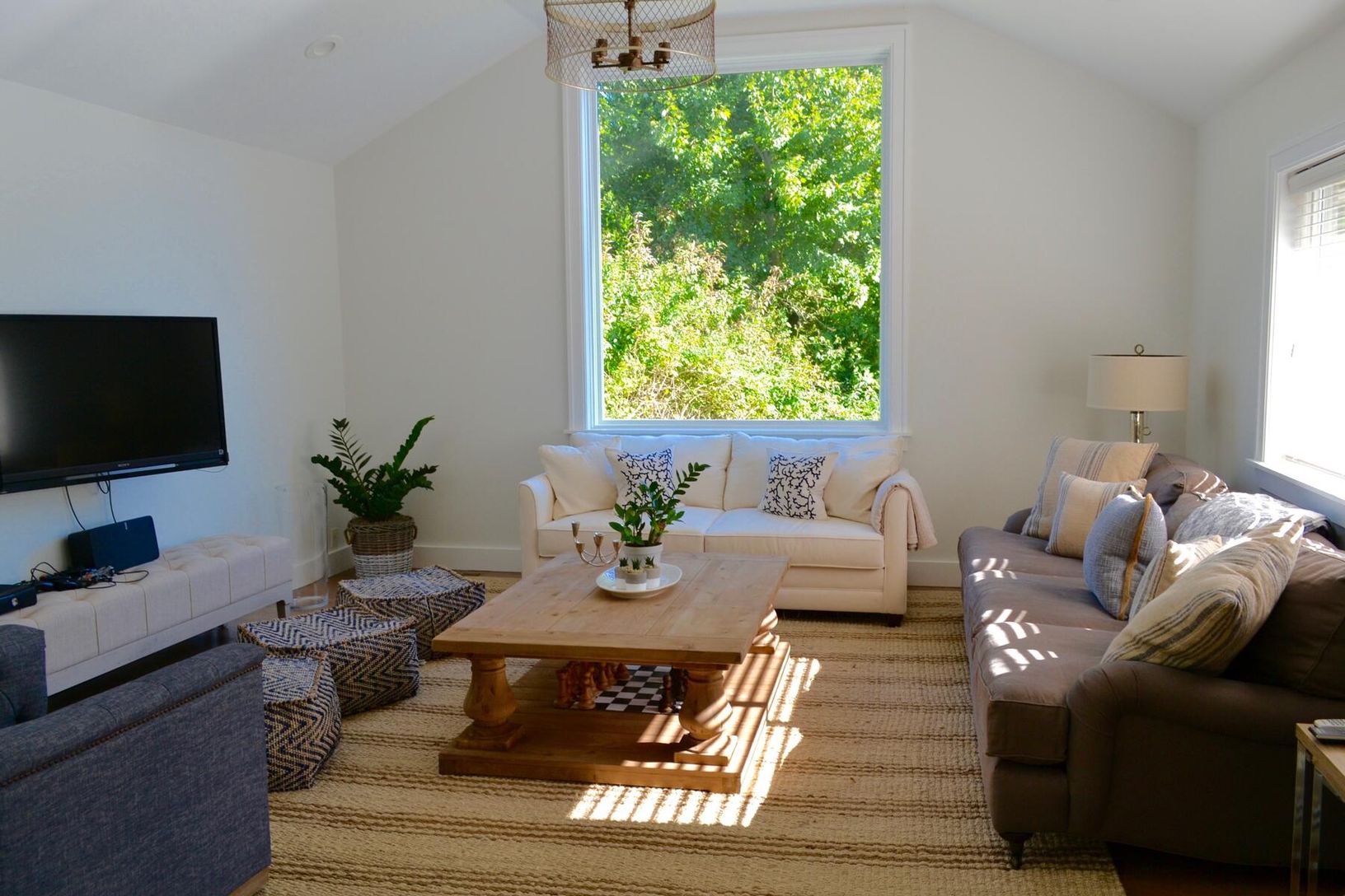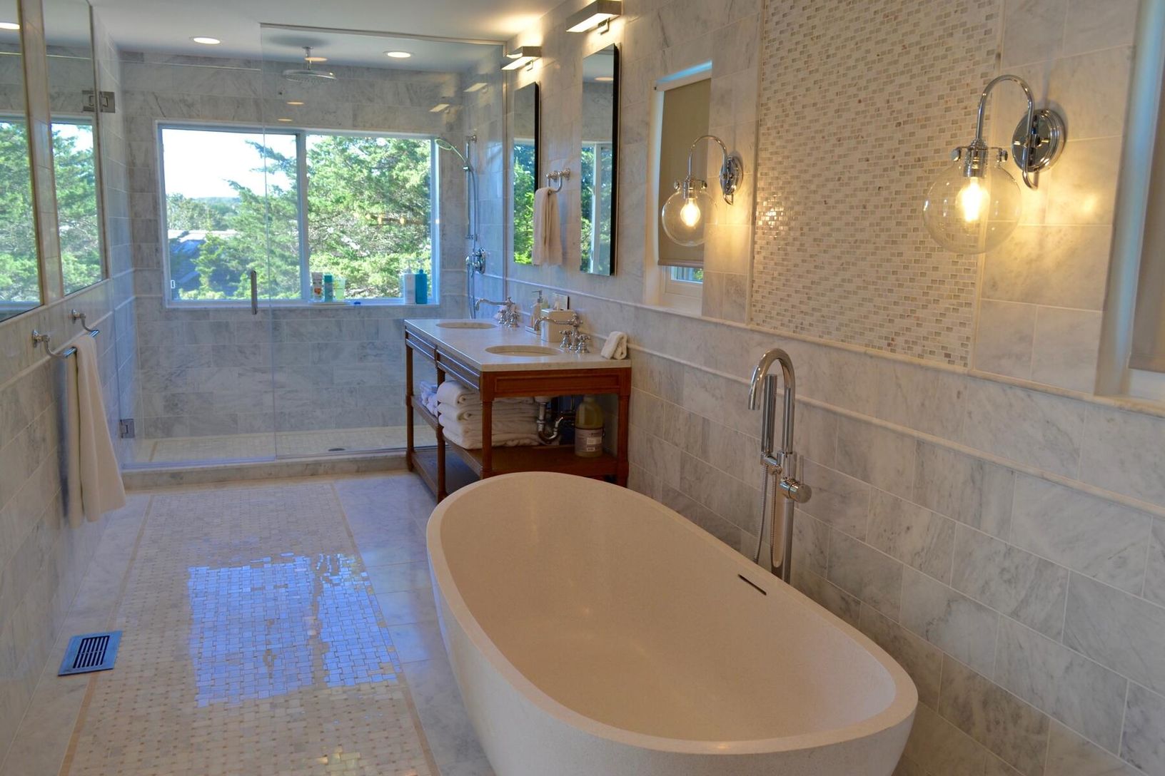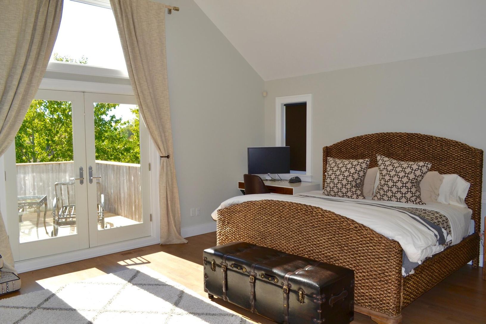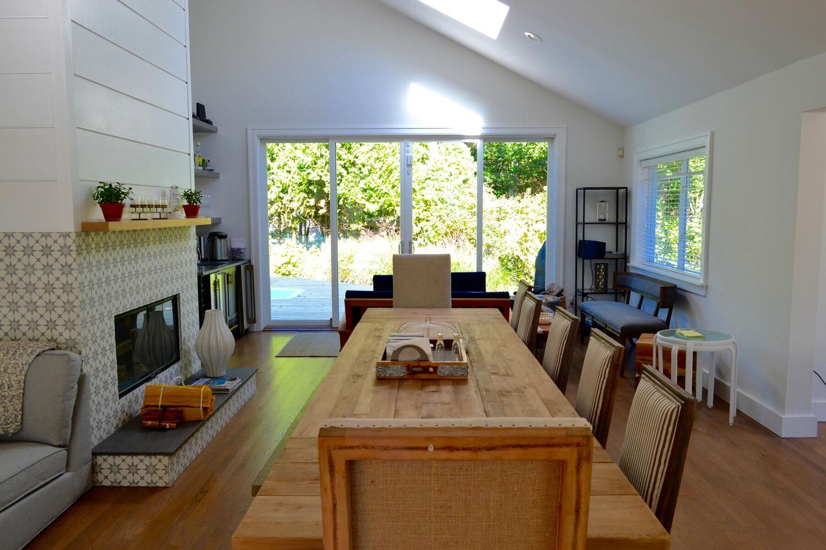 Located in horse country on a cul-de-sac, just 1.4 miles to Bridgehampton's fine restaurants on Main Street and minutes from ocean beaches. Fully renovated and tastefully furnished and decorated in 2017. The soaring ceilings and light filled open floorplan is great for indoor/outdoor summer entertaining! The heated pool with new a new wrap around deck offers plenty of room to entertain while the deck located off the kitchen offers a separate o