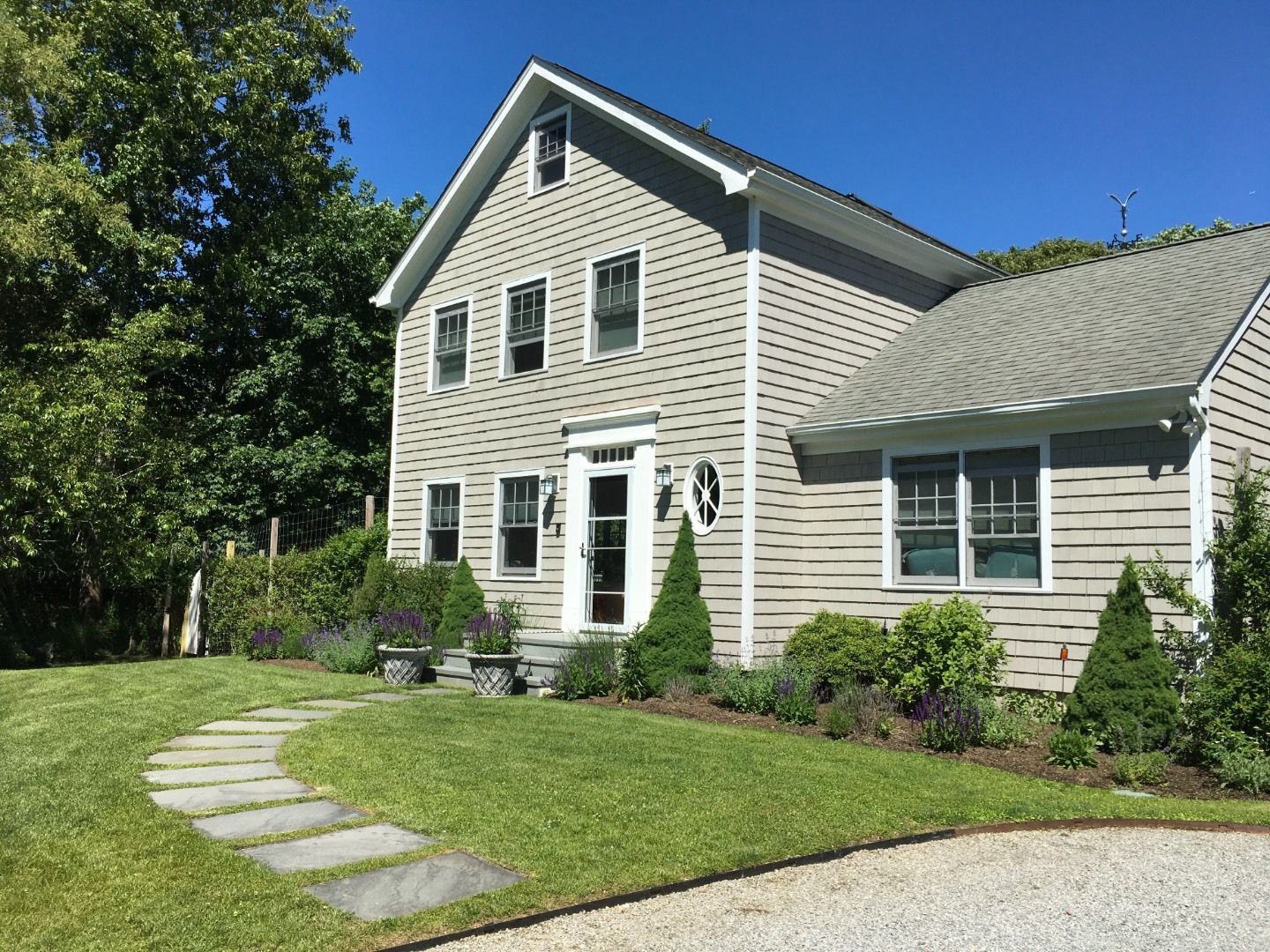 Down a long drive, this charming Hamptons classic house is situated on a professionally landscaped acre. Tucked away in a quiet community and only a stone's throw to both Bridgehampton and Sag Harbor villages. This stylish professionally decorated home is fully equipped with 4 bedrooms and 2.5 bathrooms. The first floor boasts a sun-drenched great room with designer furniture and lighting, wide plank floors and a brick fireplace. Additionally,