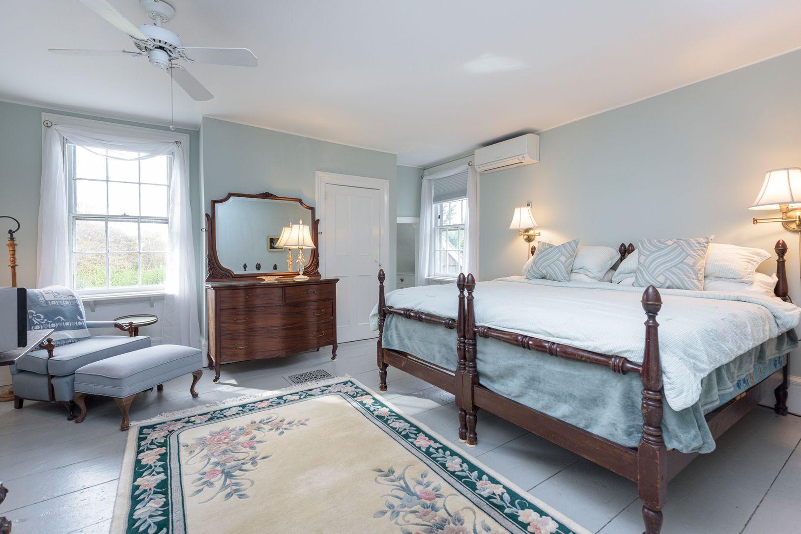 Village Greek Revival with a history in Bridgehampton dating back to the 1800's. New chefs eat in kitchen with all viking appliances.This home is furnished with antiques. It boasts a separate guest suite with a private kitchen. New Deco-turf full sized tennis court with heated pool and hot tub. Have your coffee at the new Citarella across the street or down Main Street to Starbucks. Flat screen televisions, wireless Internet access. Close to o