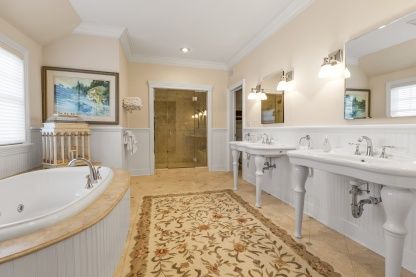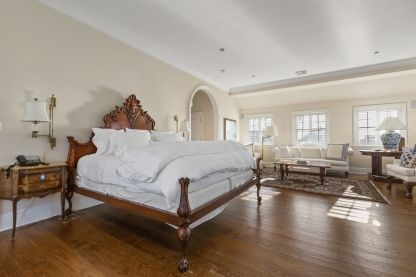 Beautiful south of the highway 6,500 sq. ft. traditional designed by John Laffey. Tasteful and classic furnishings with 6 bedroom suites, 6.5 baths and gourmet kitchen. Two acres of beautifully landscaped grounds with expansive open lawn, heated gunite pool, pool house and garage.