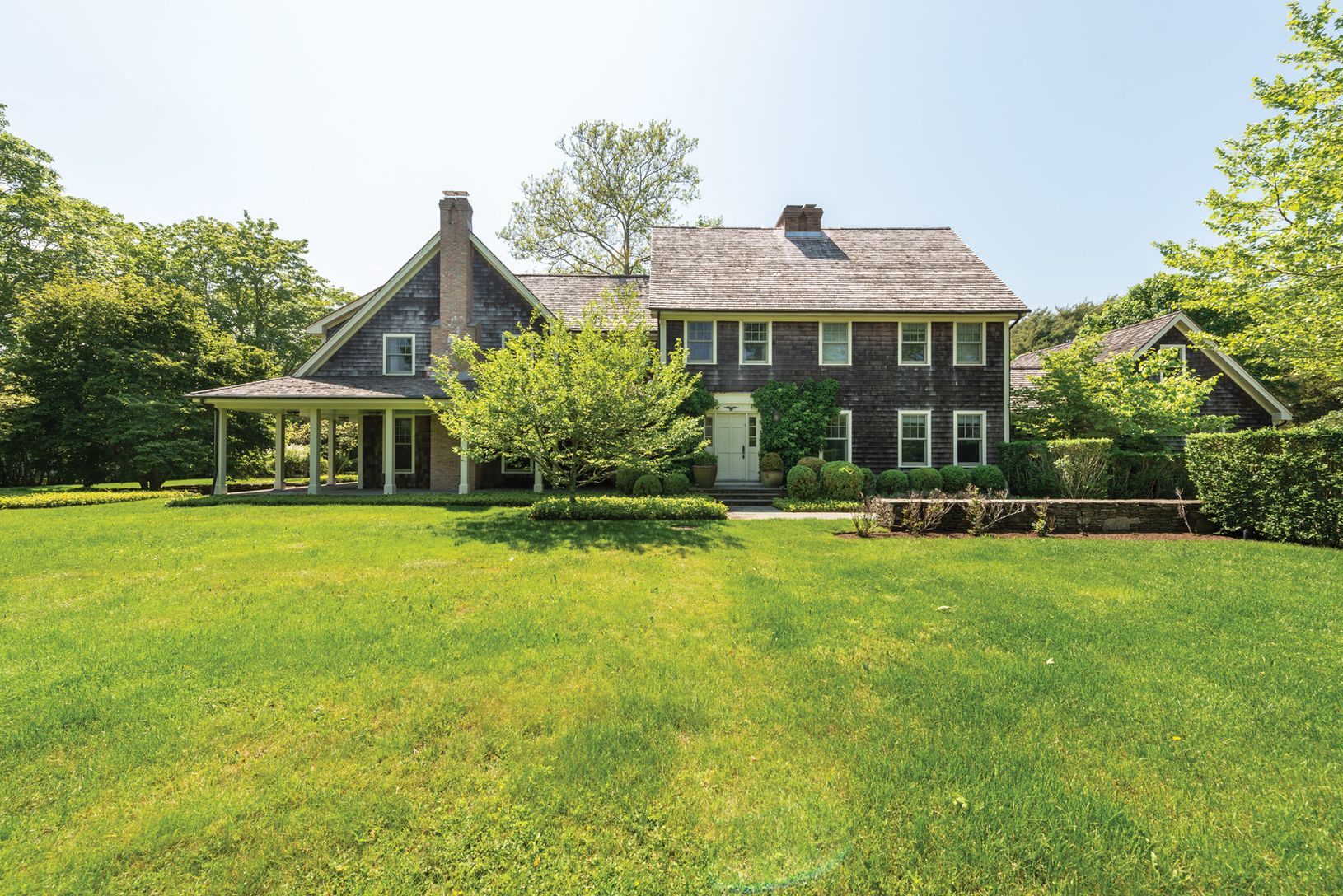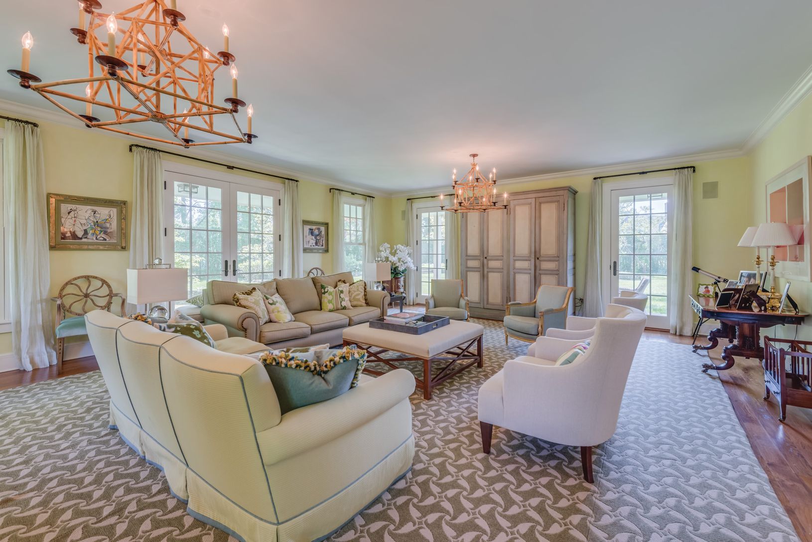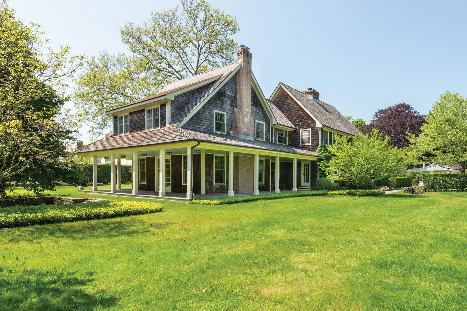 This stylish south of the highway 5,000 +/- sq ft traditional home is landscaped to perfection and situated on a shy acre offering five bedrooms, five and one half baths and four fireplaces. Elegant living room, formal dining room and professional kitchen with adjoining family room. The master suite includes office/library and luxurious master bath creating complete serenity. Grand wrap-around porch leads to heated gunite pool and wisteria cov