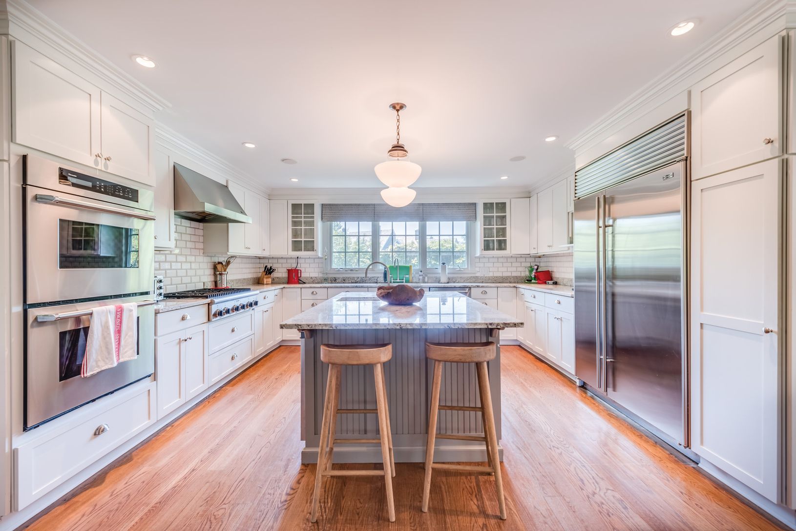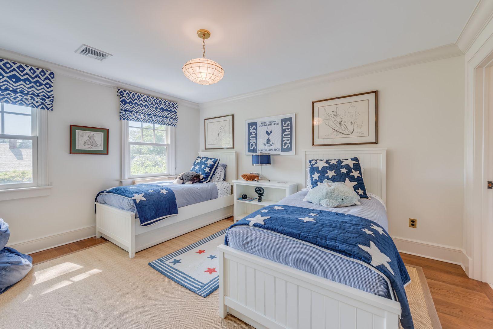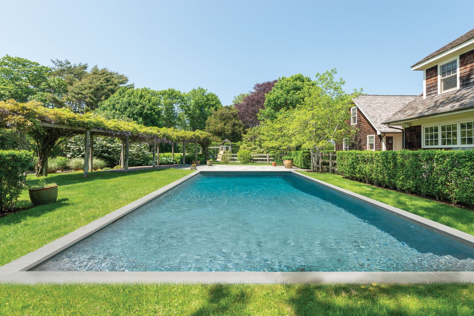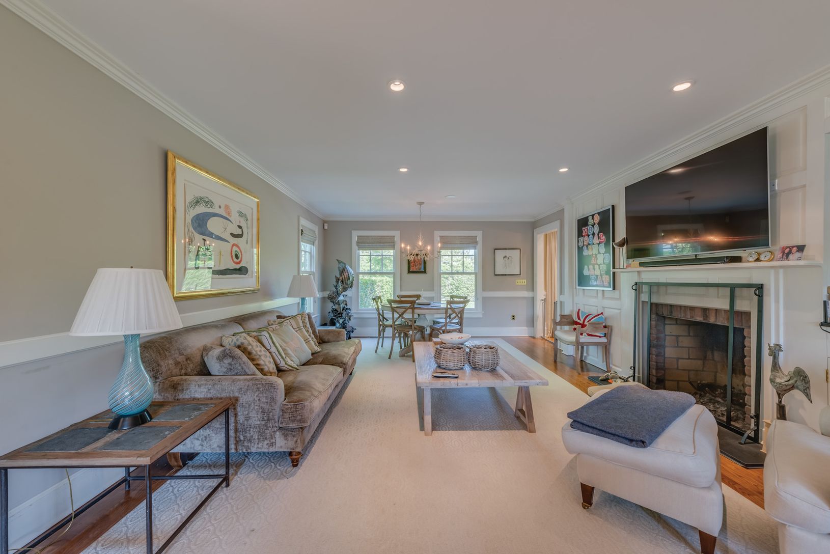 This stylish south of the highway 5,000 +/- sq ft traditional home is landscaped to perfection and situated on a shy acre offering five bedrooms, five and one half baths and four fireplaces. Elegant living room, formal dining room and professional kitchen with adjoining family room. The master suite includes office/library and luxurious master bath creating complete serenity. Grand wrap-around porch leads to heated gunite pool and wisteria cov