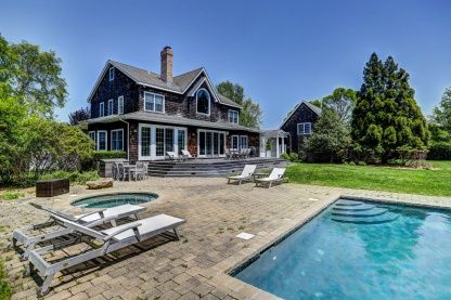 Private and tastefully appointed traditional with 4 bedrooms. Country charm inside and out. Gracious backyard with deck, patio, heated pool and jacuzzi. Convenient to town and Ocean beaches. Bridgehampton at its best.