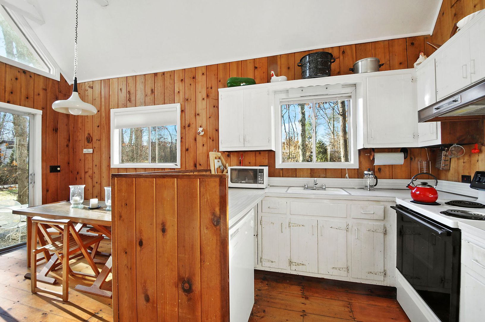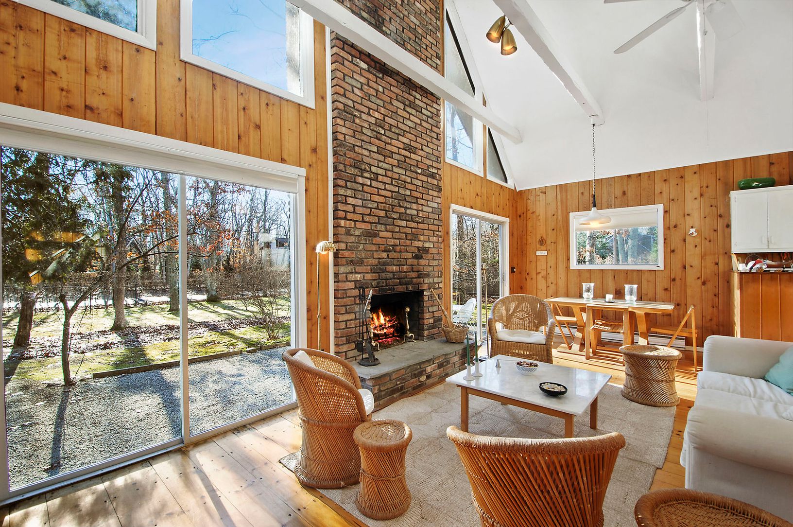 This East Hampton cottage is sited on half an acre with room for a pool and expansion. Cathedral ceilings and generous windows give the interior an intimate warm glow with beautiful hardwood floors and pinewood walls. An open floor plan, fireplace, three bedrooms and two baths complete this bright and inviting oasis providing an excellent base for a renovation project. Located close to Accabonac Harbor, the General Store as well as Ashwagh Hal