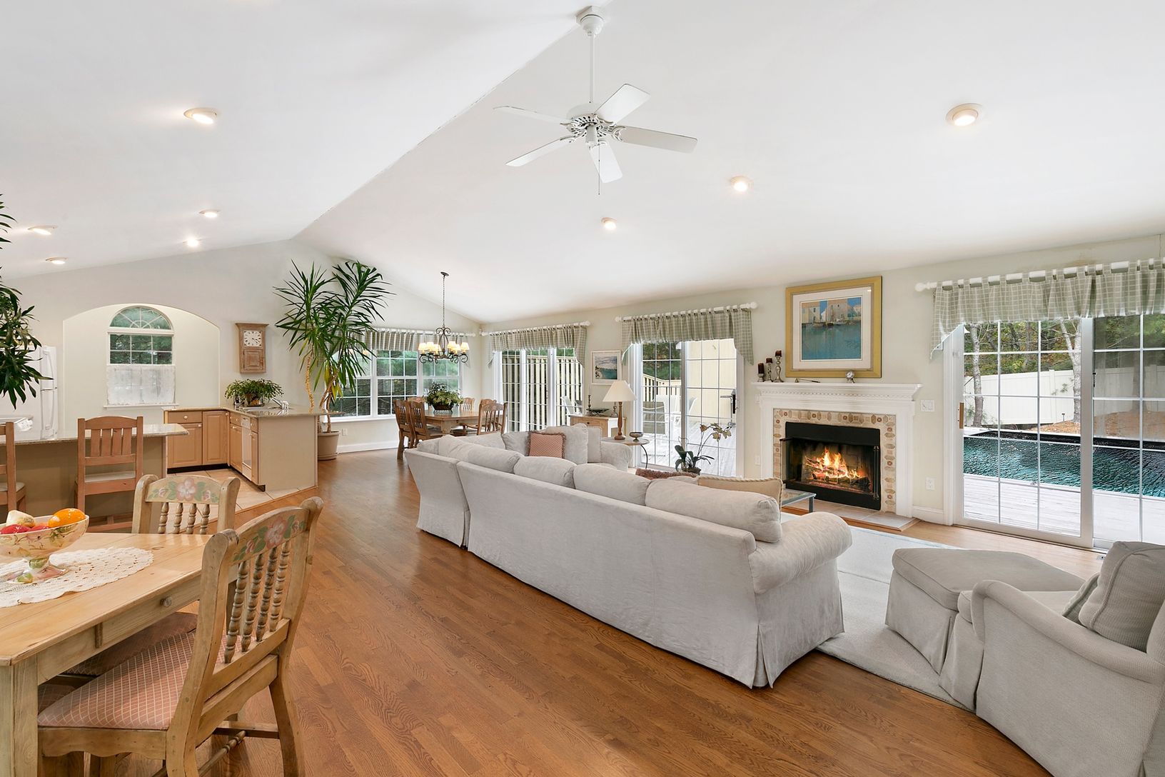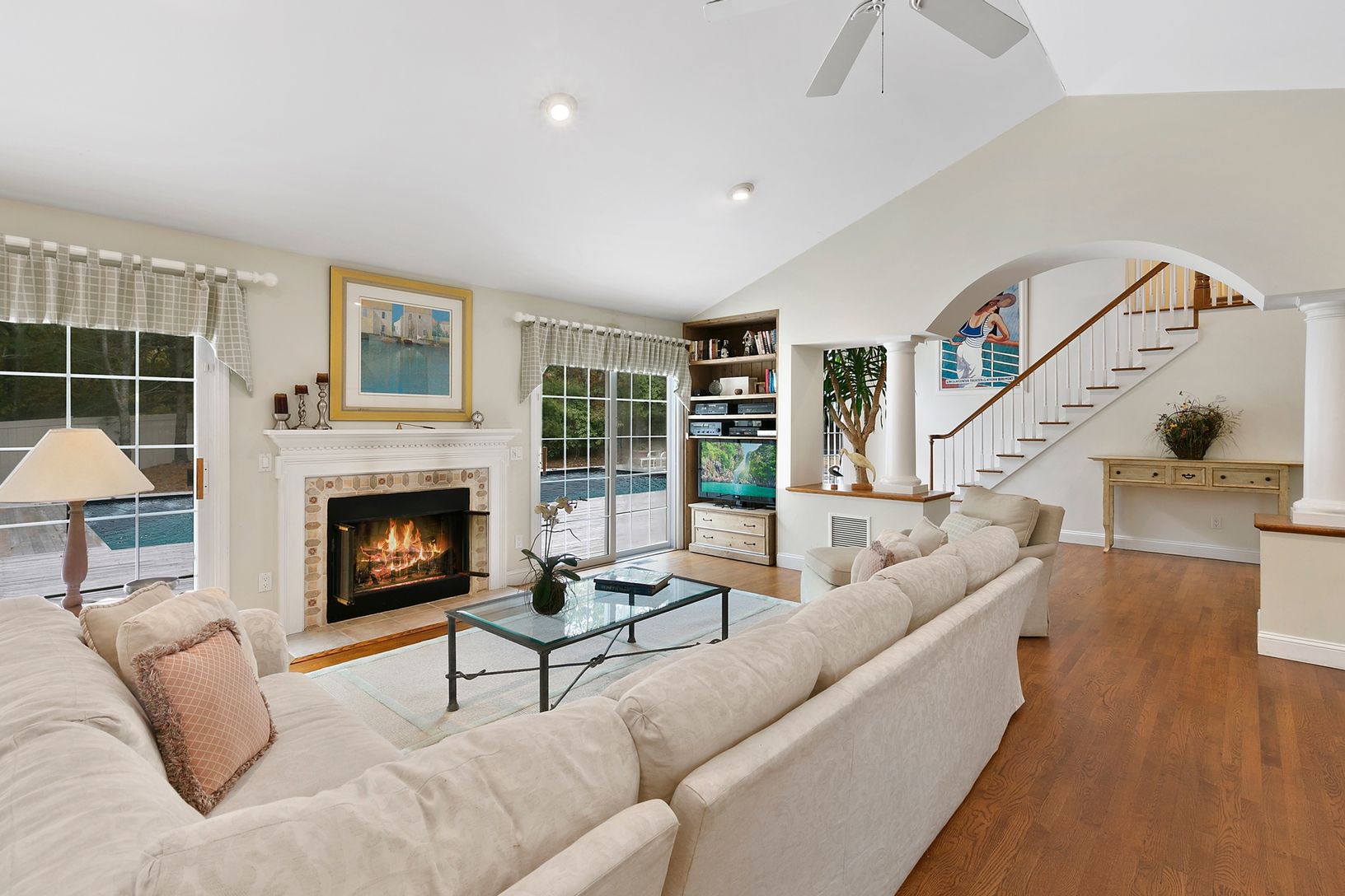 SOLD. This property is located in private, upscale Hands Creek Farm community on a quiet cul de sac. Just a couple of miles from the Village. This spacious Post Modern Contemporary has everything you need to enjoy the Hamptons lifestyle. The first floor boasts high ceilings with a light filled open floor plan; there is a large living room with a wood burning fireplace, open dining area and kitchen. All with lots of windows and sliding doors le