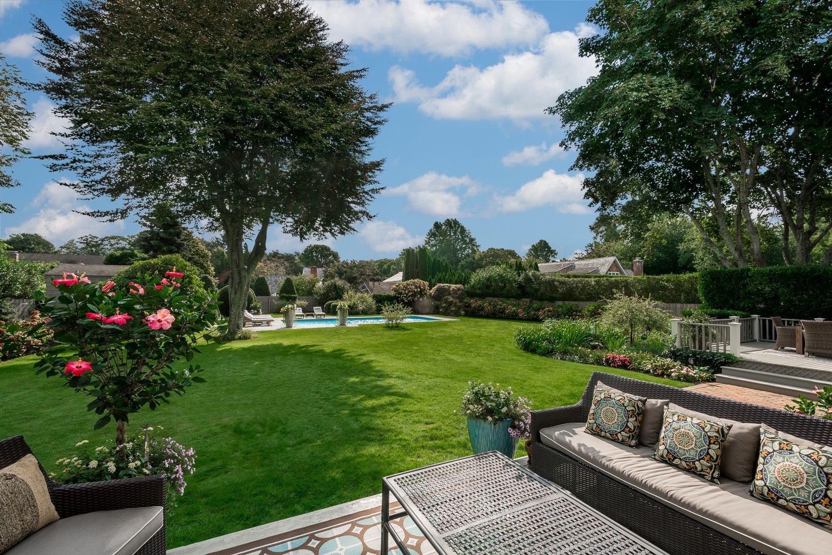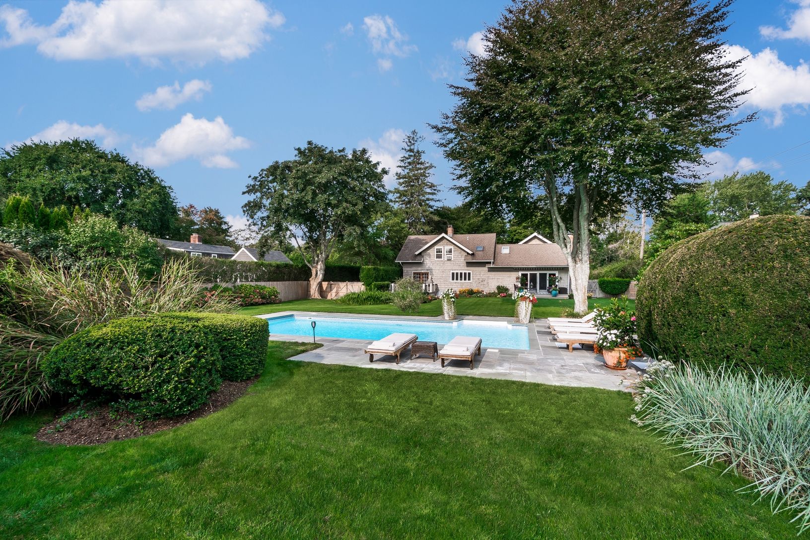SOLD. Set on .63 of an acre, this perfectly manicured property affords a setting of natural beauty and total privacy. The heated pool with bluestone patio is surrounded by an expansive lawn, beautiful perennial gardens, established evergreens and majestic old trees. The home itself exhibits everlasting charm and architectural integrity, now completely renovated, updated and expanded while maintaining details and the essence of its period. Firs