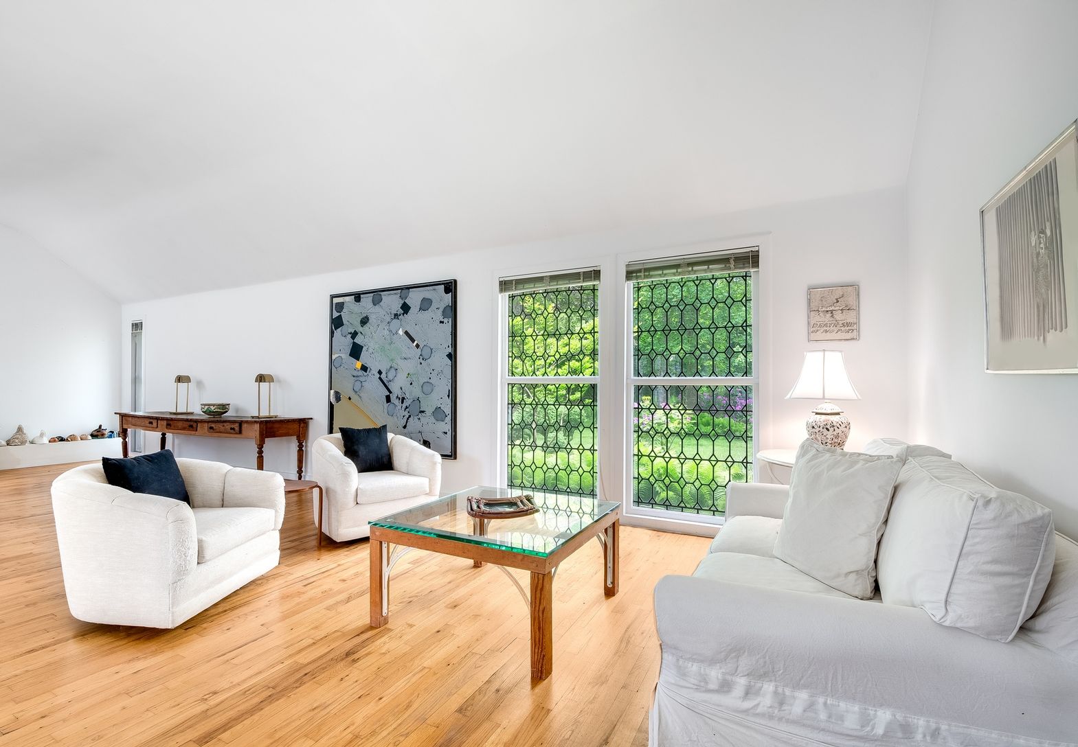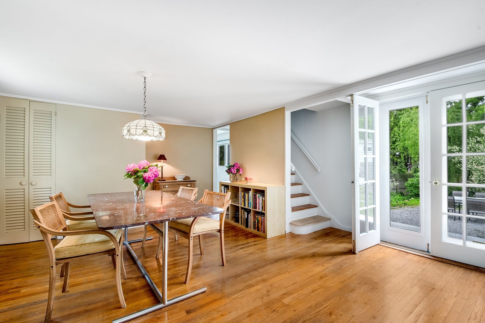 SOLD. A unique opportunity to purchase a truly eclectic home on the fringe of East Hampton village. Endless possibilities exist to create your dream home out of this almost 3,000-square foot expansive structure.The original house features an enclosed front porch with floor to ceiling framed glass doors. This lovely entrance and foyer leads to a separate dining area, a full bath and a truly charming "diner like" eat-in kitchen. The upper level