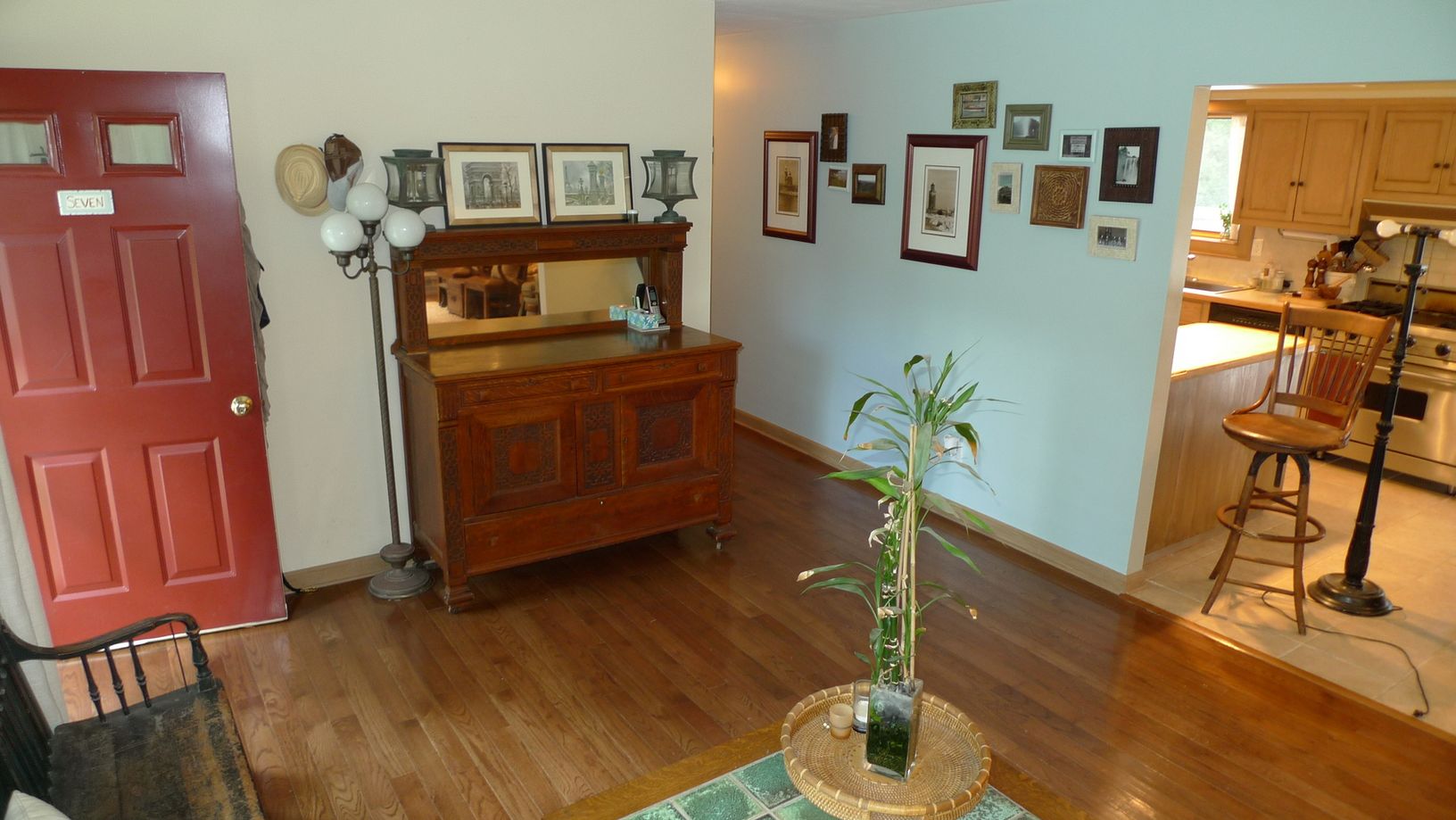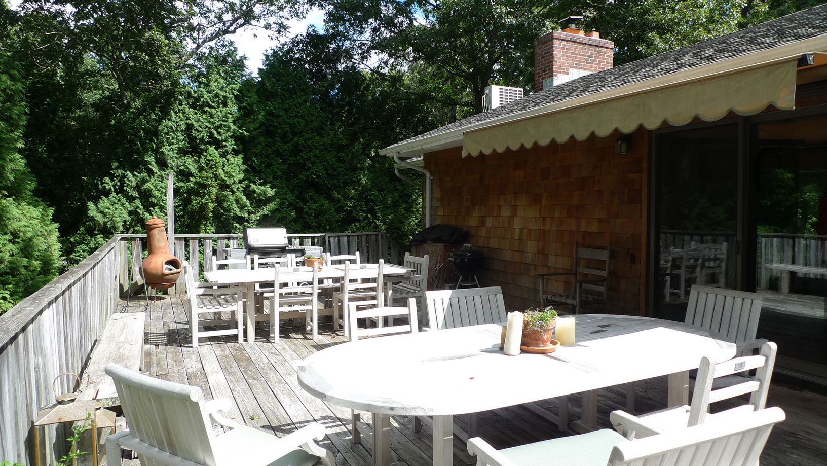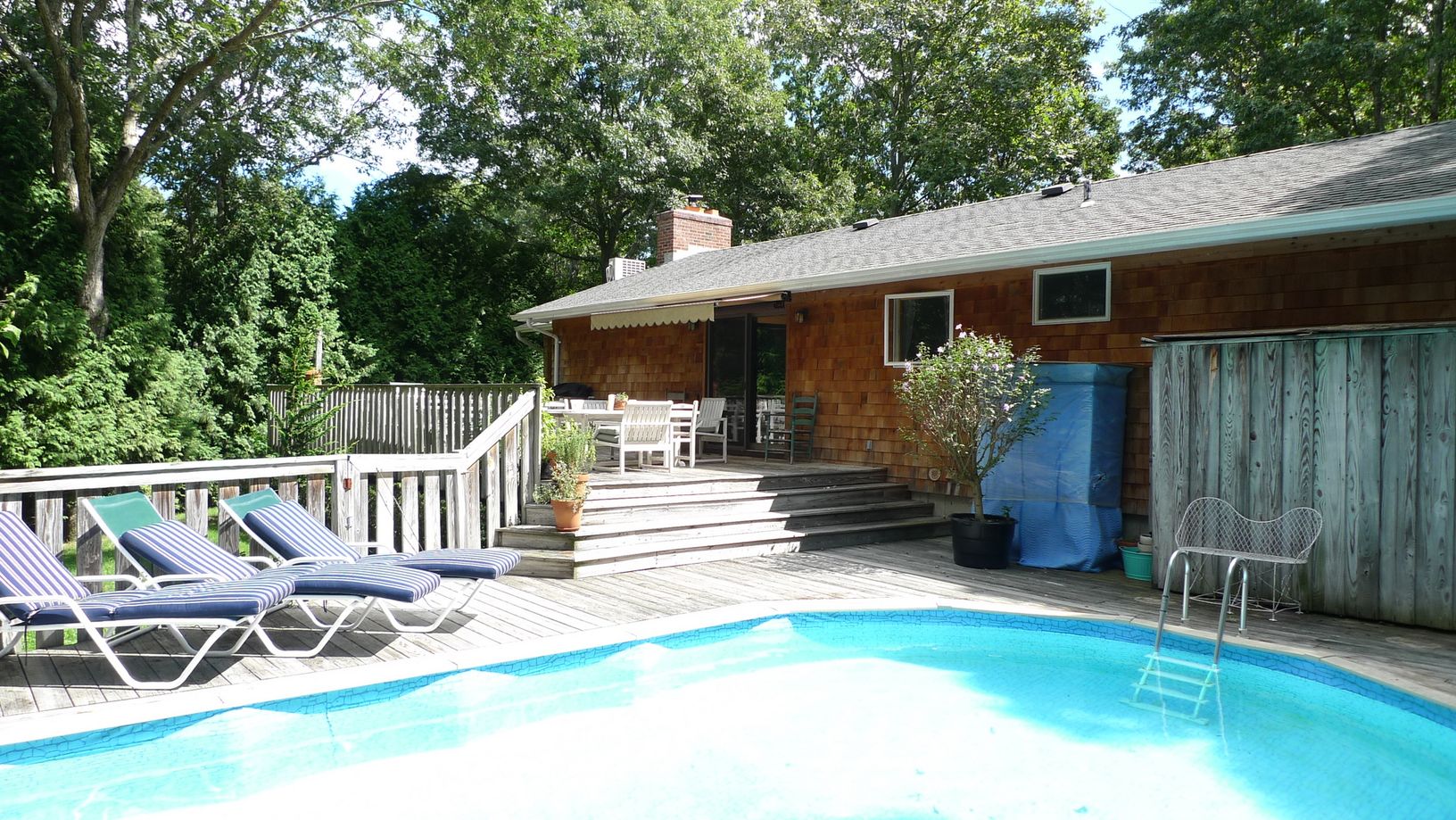 This adorable, well-maintained three bedroom, two bath ranch sits on a private, well landscaped half-acre. The front door opens to an open plan living room with wood-burning stove. Eat-in kitchen with commercial range has sliders to spacious decking with plenty of room for outdoor entertaining. There is a retractable awning for sunny long lunches on the deck. In addition to the sparking oval pool there is a convenient shed for storage. Folio
