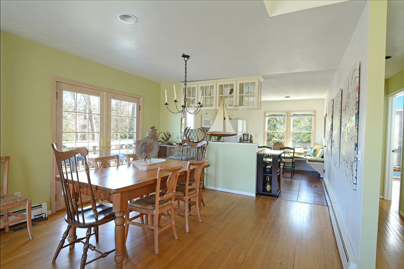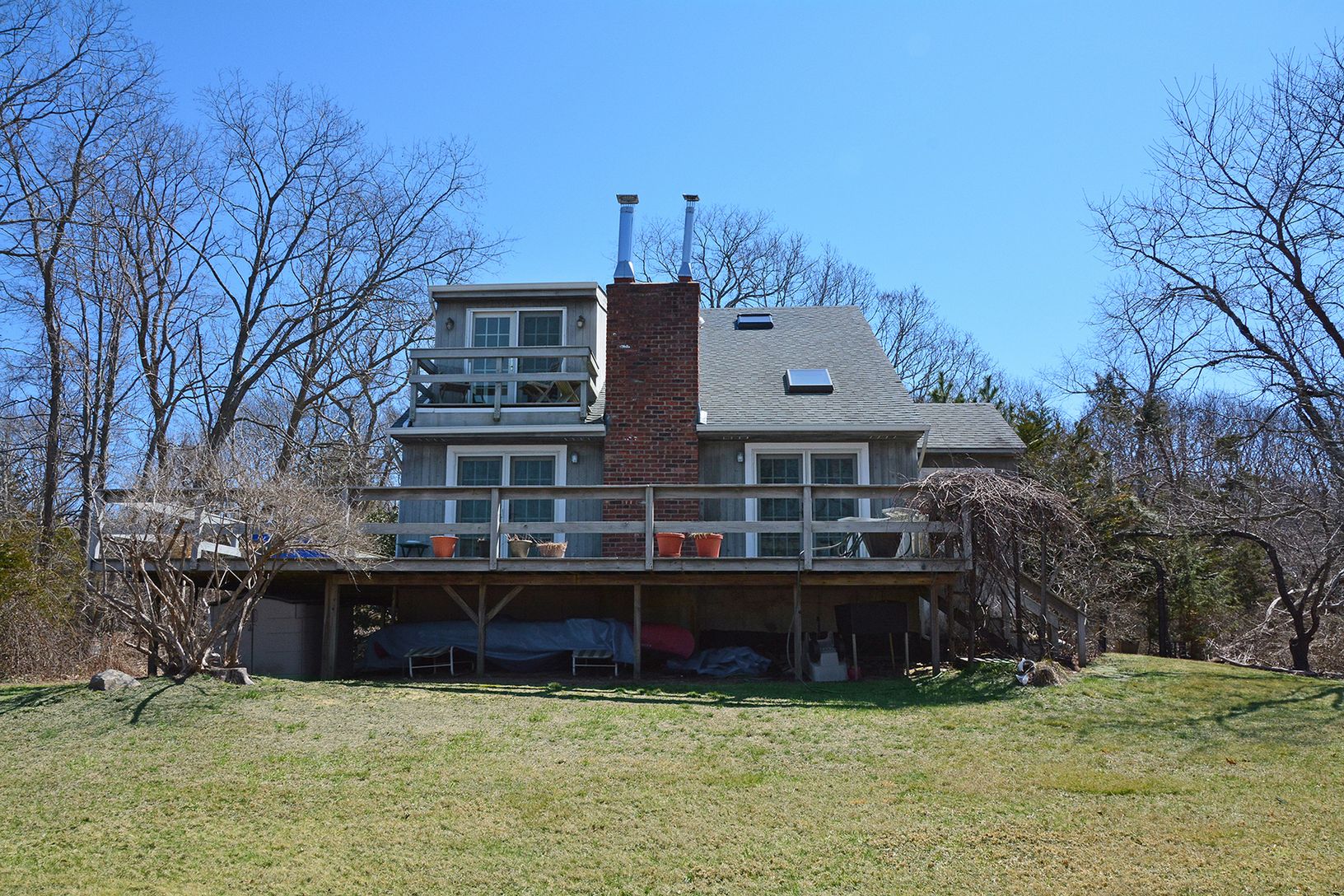 New to the Market. Nature Lovers scenic three bedroom, two bath, waterfront home boasting spectacular views of Preservation Land, Accabonac Harbor and Gardiners Bay. The main area is an open floor plan featuring a cathedral ceiling, sky light windows, wood burning brick Fireplace, and french doors leading to spacious three sided wrap around deck. The Master is located on the main floor, The second floor has two additional bedrooms, a seco