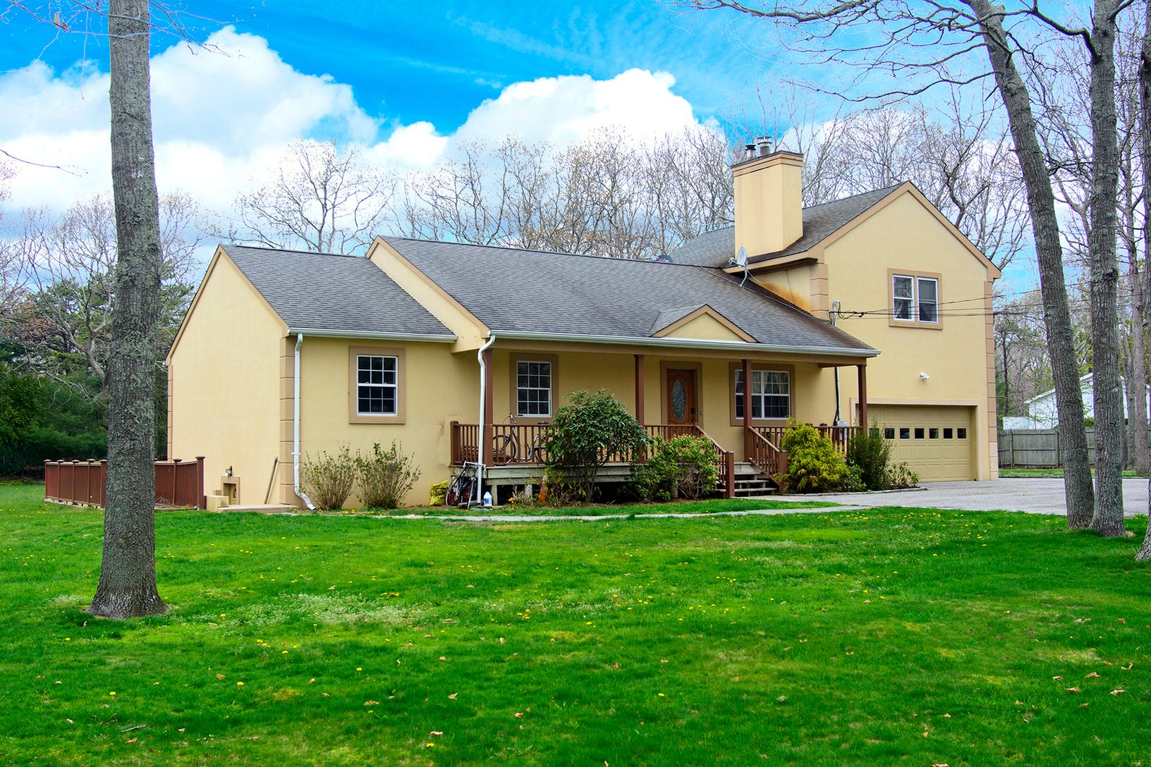 This quaint home has 6 bedroom, 4 bath home. 0.78 acres. Sits peacefully in East Hampton North. Enjoy extra space in the separate studio. The living room has a fireplace. A dining area has doors to a large deck. The master suite is located on the first floor, along with another bedroom and full bath, with two more bedrooms. Room for a pool. You're minutes to ocean beaches in easy reach!
