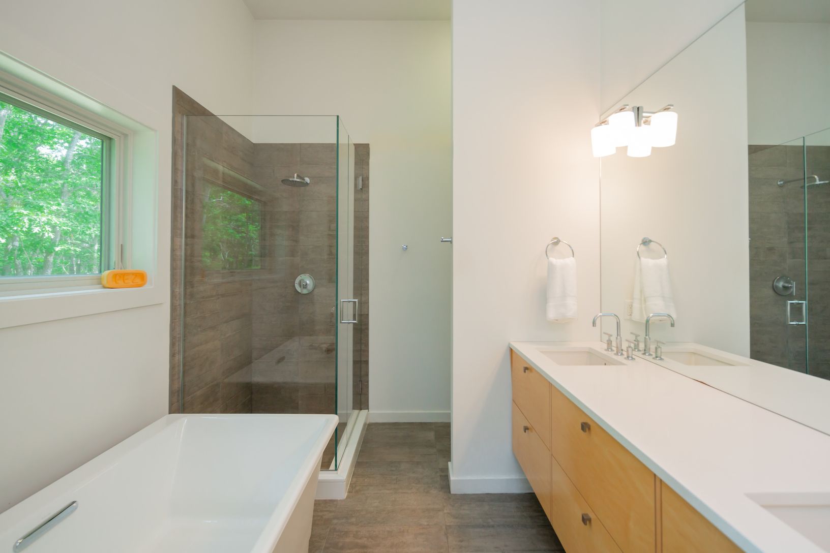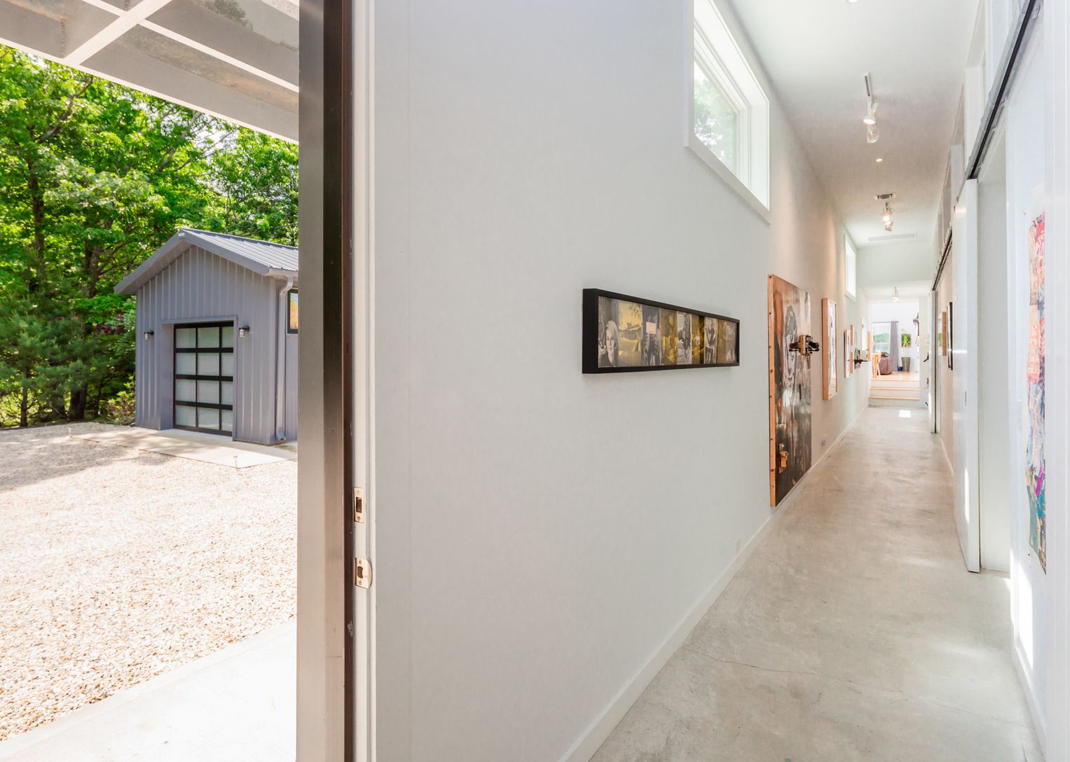 Recently completed, this striking new 4,100 square foot modern residence with an attached 1,500 square foot climate controlled Art Studio offers a rare opportunity to own a noted Artist's home. Greg Miller has been living and painting here for the past 4 years. It's location is superbly positioned just down the street from the Pollock-Krasner house, Accabonac Harbor and Gardiners Bay in the Historic district of Springs, East Hampton. With a