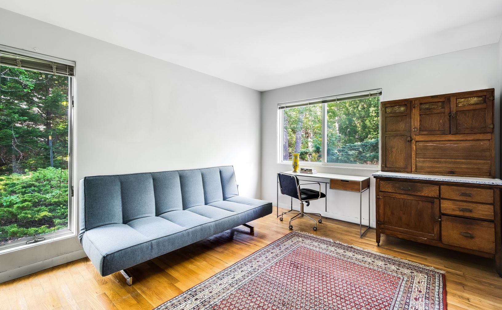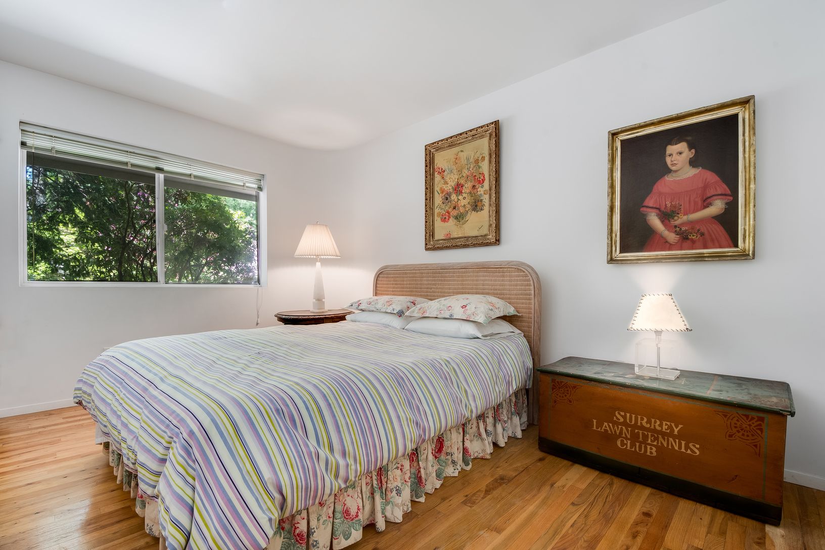 SOLD. Beautiful single-level contemporary home featuring 4 bedrooms and 4 1/2 baths set on a lushly landscaped and secluded builder's acre in Hansom Hills. An inviting entrance foyer leads into a bright open floor plan layout that includes living room with vaulted ceiling and fireplace, dining area, and a new kitchen with granite counters and stainless steel appliances. Sliding glass doors line the back of the house which flows onto extensiv