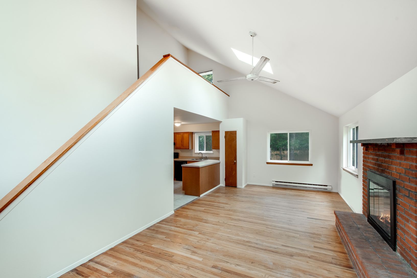 SOLD. On a lovely road, dotted with well maintained and updated homes, at the end of the cul de sac sits this Hamptons contemporary saltbox on a .60+ acre lot. The 3 bedroom and 2 bath home features a large kitchen that opens to the vaulted ceiling living room with wood burning fireplace and tons of natural light from skylights and an abundance of windows. The property has ample room for expansion, pool, and more. With a little imagination th
