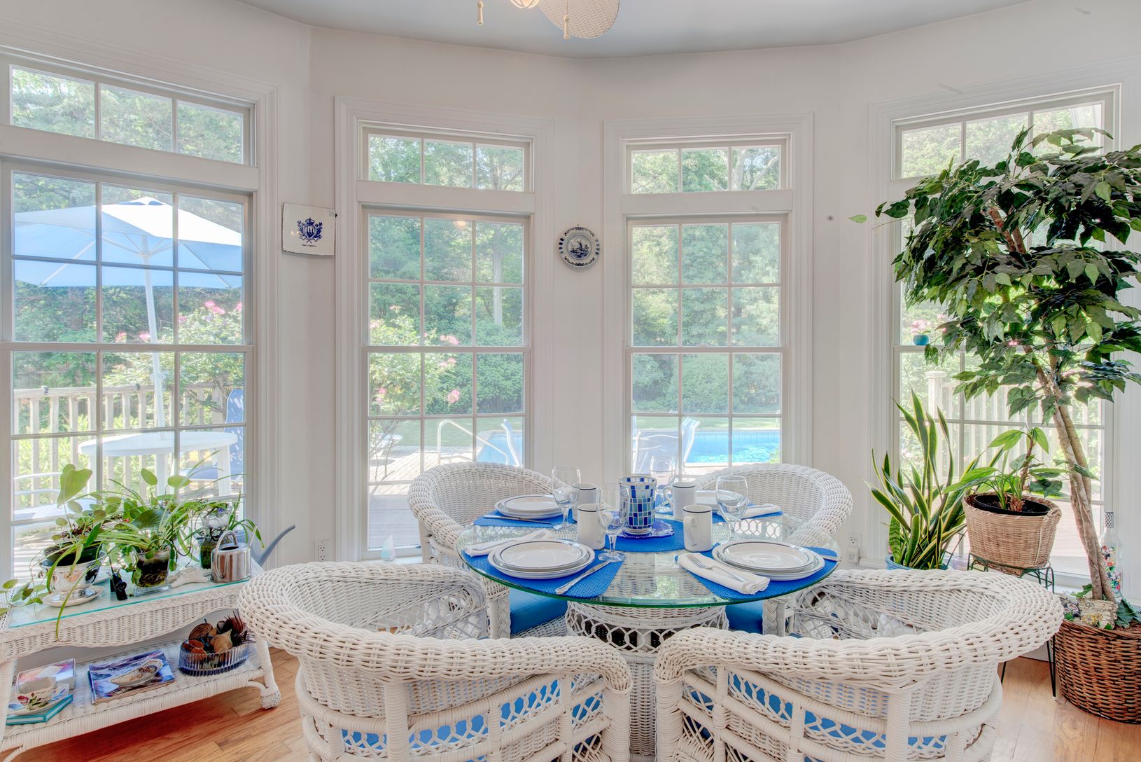 Located in the private community of Clearwater Beach and Marina on Hog Creek and Gardiner's Bay in East Hampton you will find this custom traditional home with parklike grounds. Enjoy total privacy with continuous color and interesting vegetation surrounding the heated swimming pool. This traditional home is designed with entertaining in mind. There's a sweet breakfast nook off the chef's kitchen as well as a formal dining room which opens to