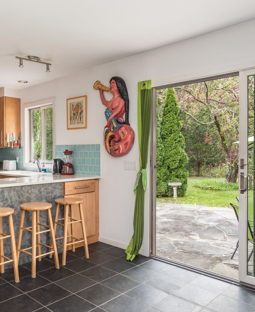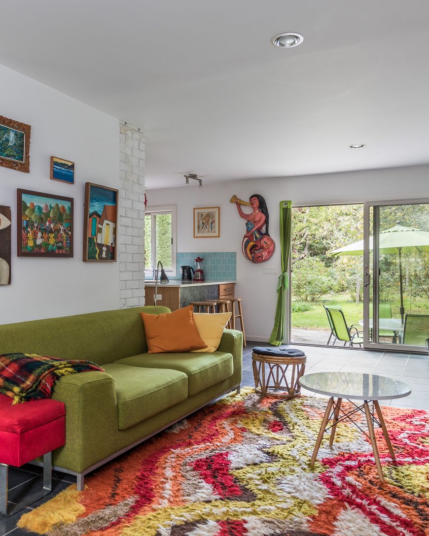 This private family compound in the historic Springs Accabonac Harbor area includes recently renovated mid-century modern main home; detached two story building with second floor studio and bath; and shed. Three bedroom two bathroom main house features luxury steam shower, Silestone counters, red oak floors. Panoramic glass sliders give onto large bluestone patio.