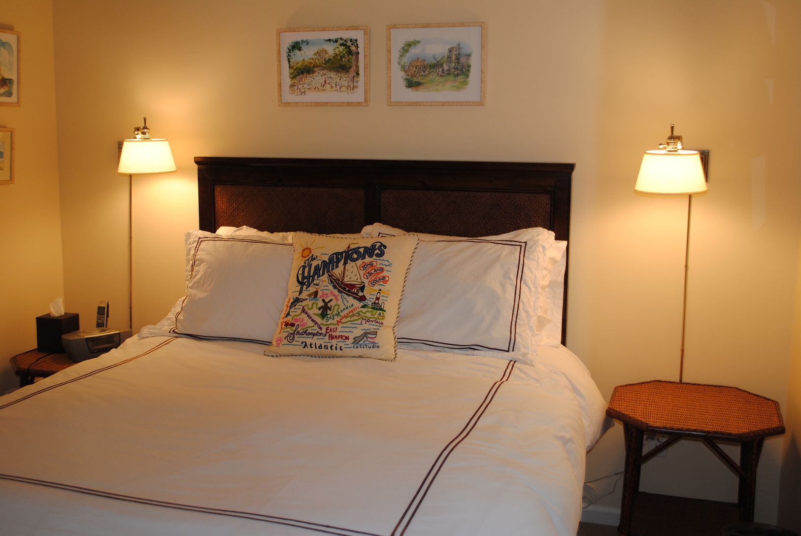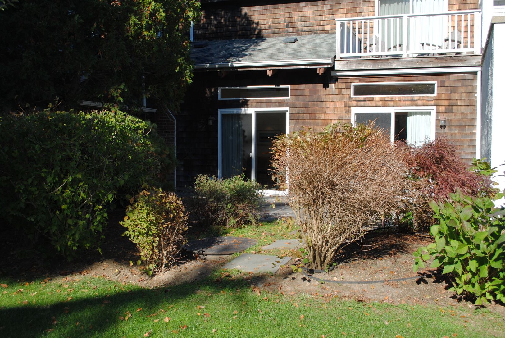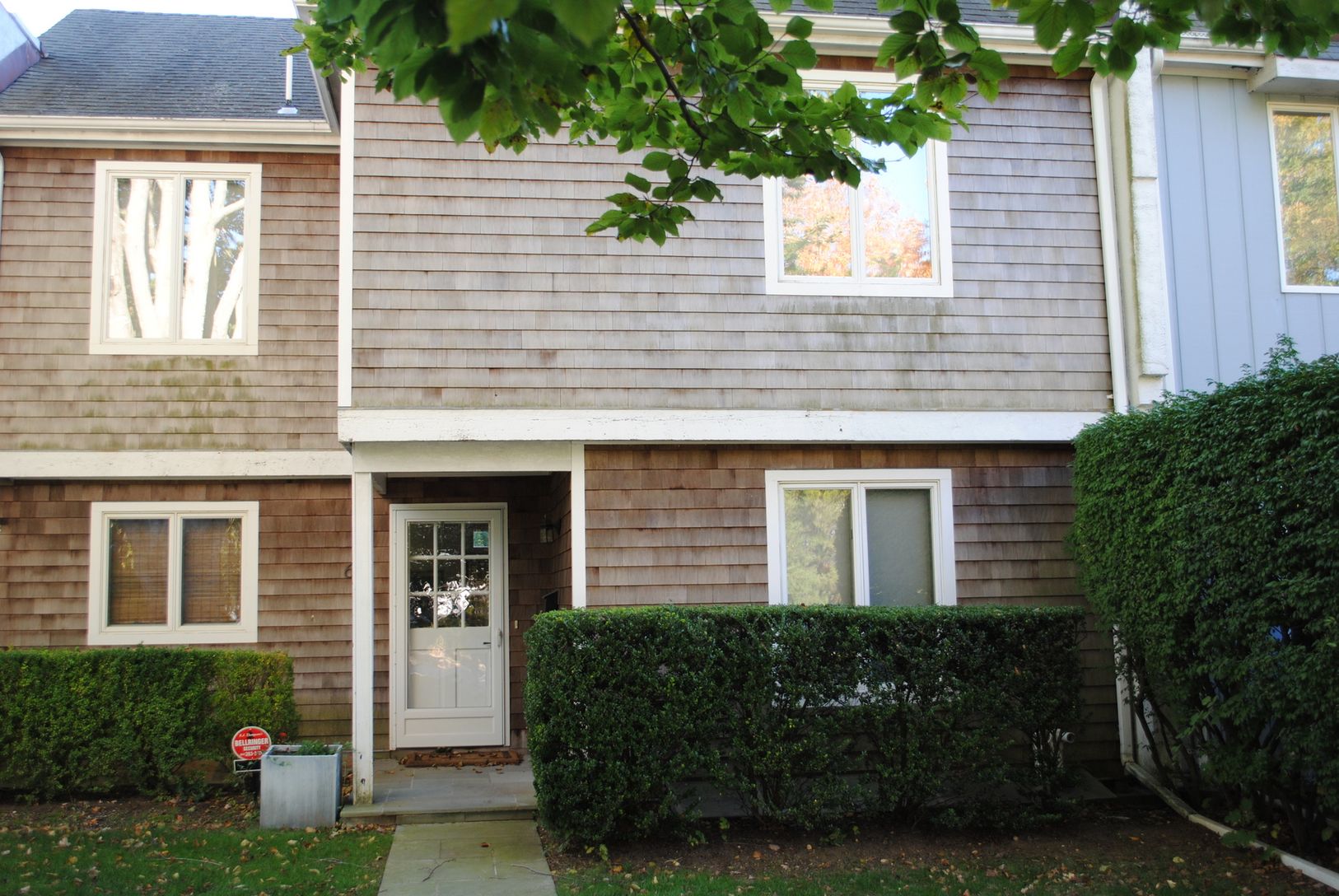 This recently renovated townhouse-style condominium is located in an ideal location in the Village of East Hampton. It is close to ocean beaches, restaurants, shops, movie theater and the LIRR. A bluestone walkway leads to the townhouse, which has shingle exterior with white trim. An entrance foyer opens to a double-height living room with wood-burning fireplace and a separate dining area, which face a bluestone patio and the landscaped gar