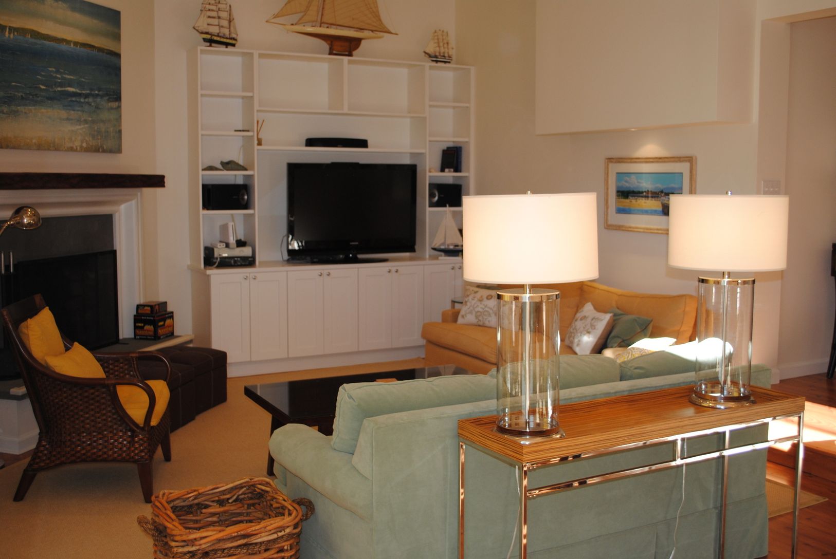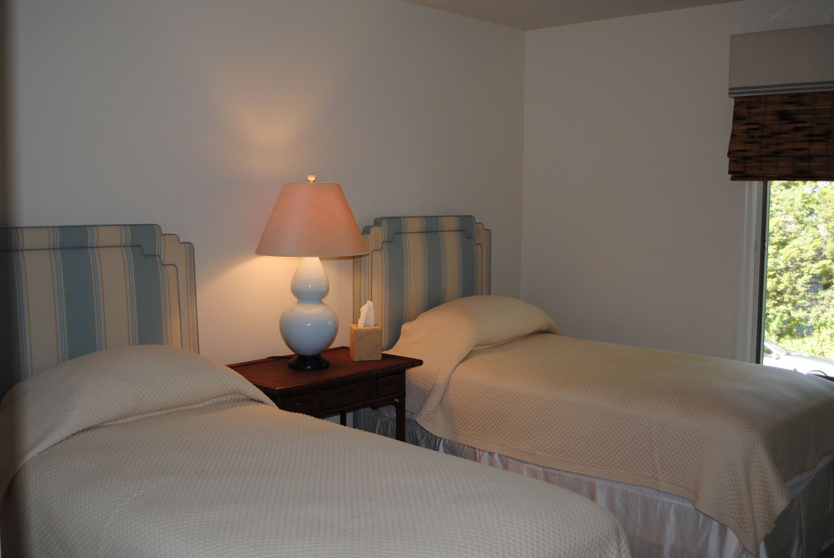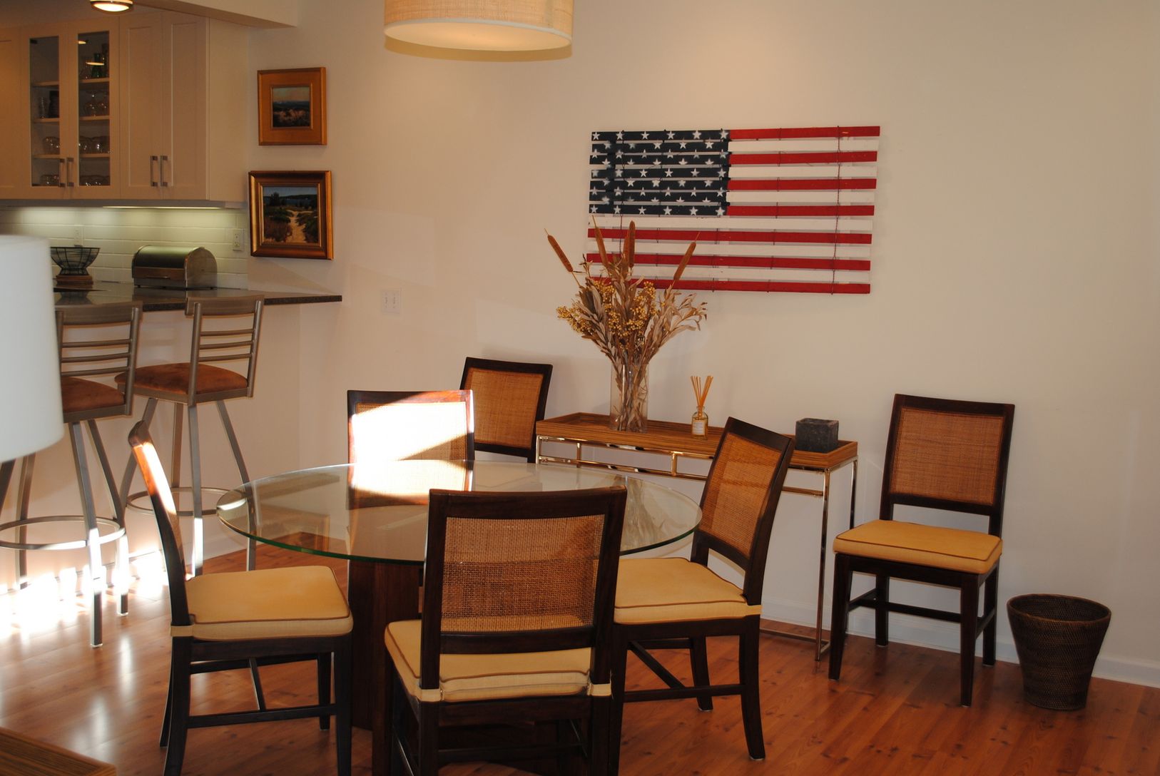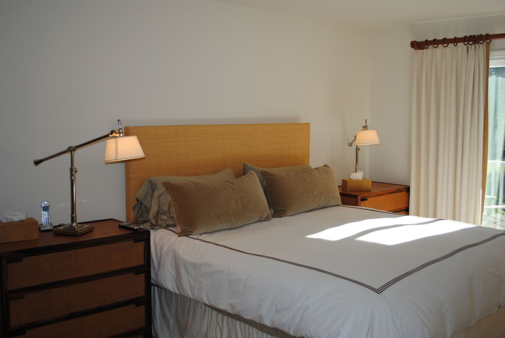 This recently renovated townhouse-style condominium is located in an ideal location in the Village of East Hampton. It is close to ocean beaches, restaurants, shops, movie theater and the LIRR. A bluestone walkway leads to the townhouse, which has shingle exterior with white trim. An entrance foyer opens to a double-height living room with wood-burning fireplace and a separate dining area, which face a bluestone patio and the landscaped gar