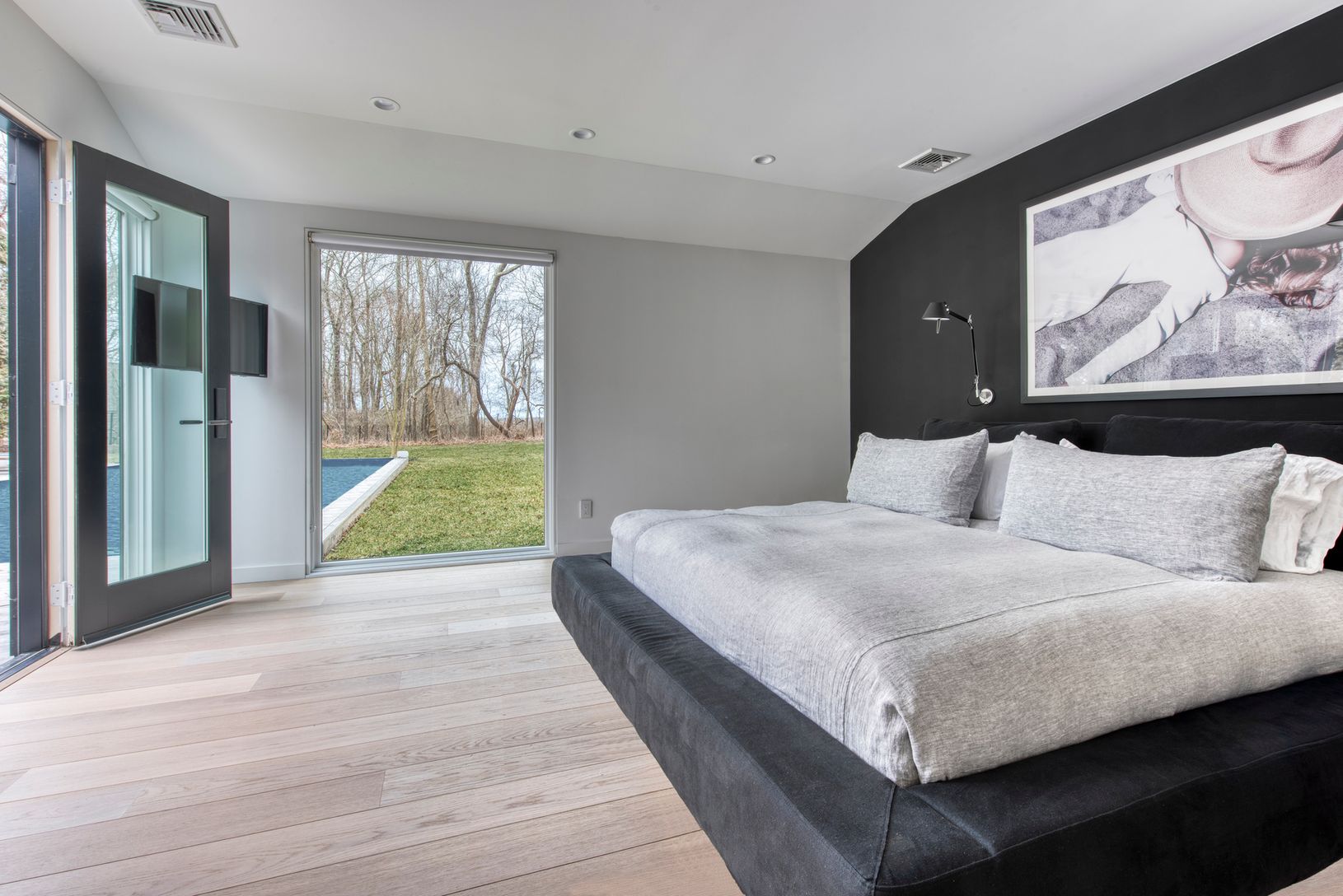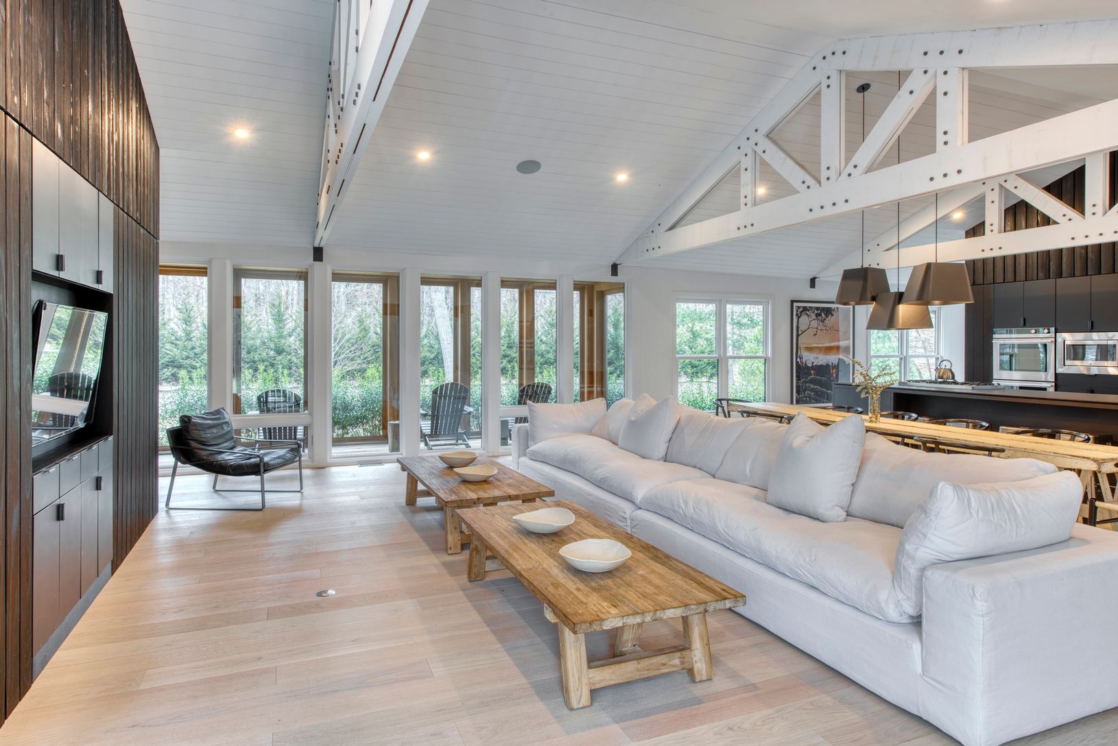 Rental Registration #: 18-1421 East Hampton Village Fringe one-level modern masterpiece. Dramatic beams in the vaulted open living-dining-kitchen. 5 bedrooms (one master and one junior master), 4.5 baths. Screened porch, expansive decking surrounds the heated saltwater Gunite pool..