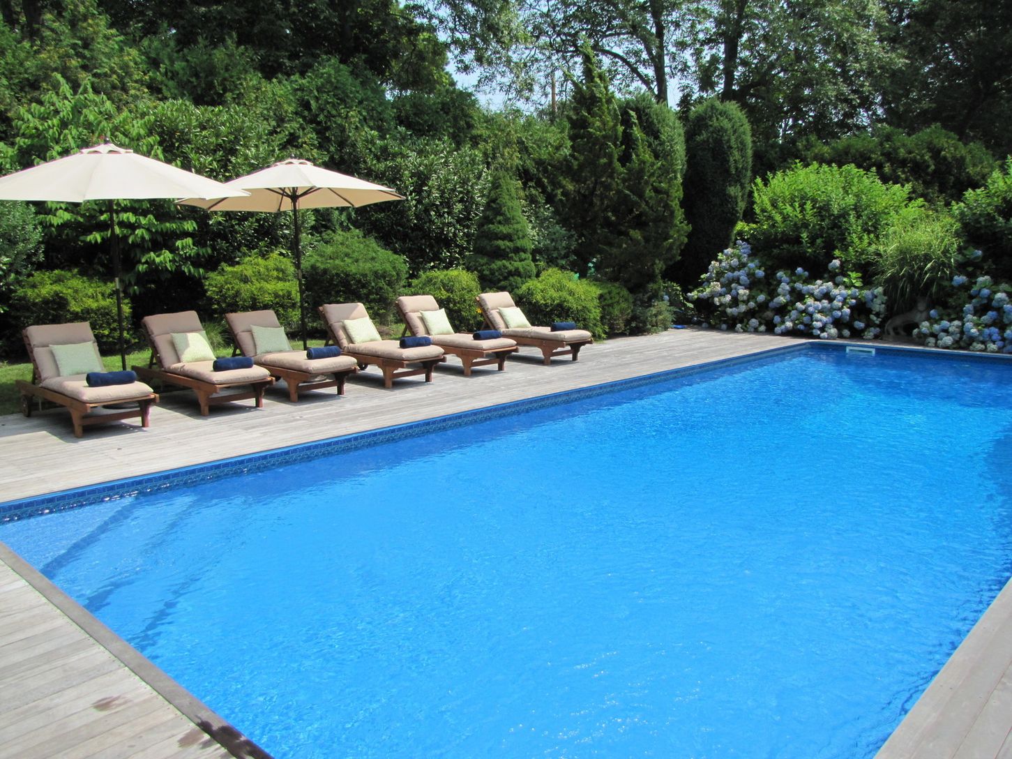 A short distance to East Hampton Village from this secluded home on a quiet street. Boasting a modern decor with country charm, there are four bedrooms, three full baths and a TV room. Outside offers a 16x40 heated pool and a recently renovated pool house, surrounded by mahogany decking, a large deck off the house for entertaining and a fire pit in the backyard. Situated on 1/3 acre, the property is fully landscaped and equipped with outside l