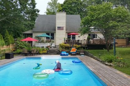 Rental Registration #: 18-2431 This saltbox style home is located just outside of East Hampton village in a private location. There are four bedrooms and two bathrooms. On the first floor there are two bedrooms and one bath and on the second level there are the additional two bedrooms and one bathroom. Outside you will find a beautifully appointed 20 x 40 foot pool surrounded by wood decking. This home is the perfect place to spend the summer
