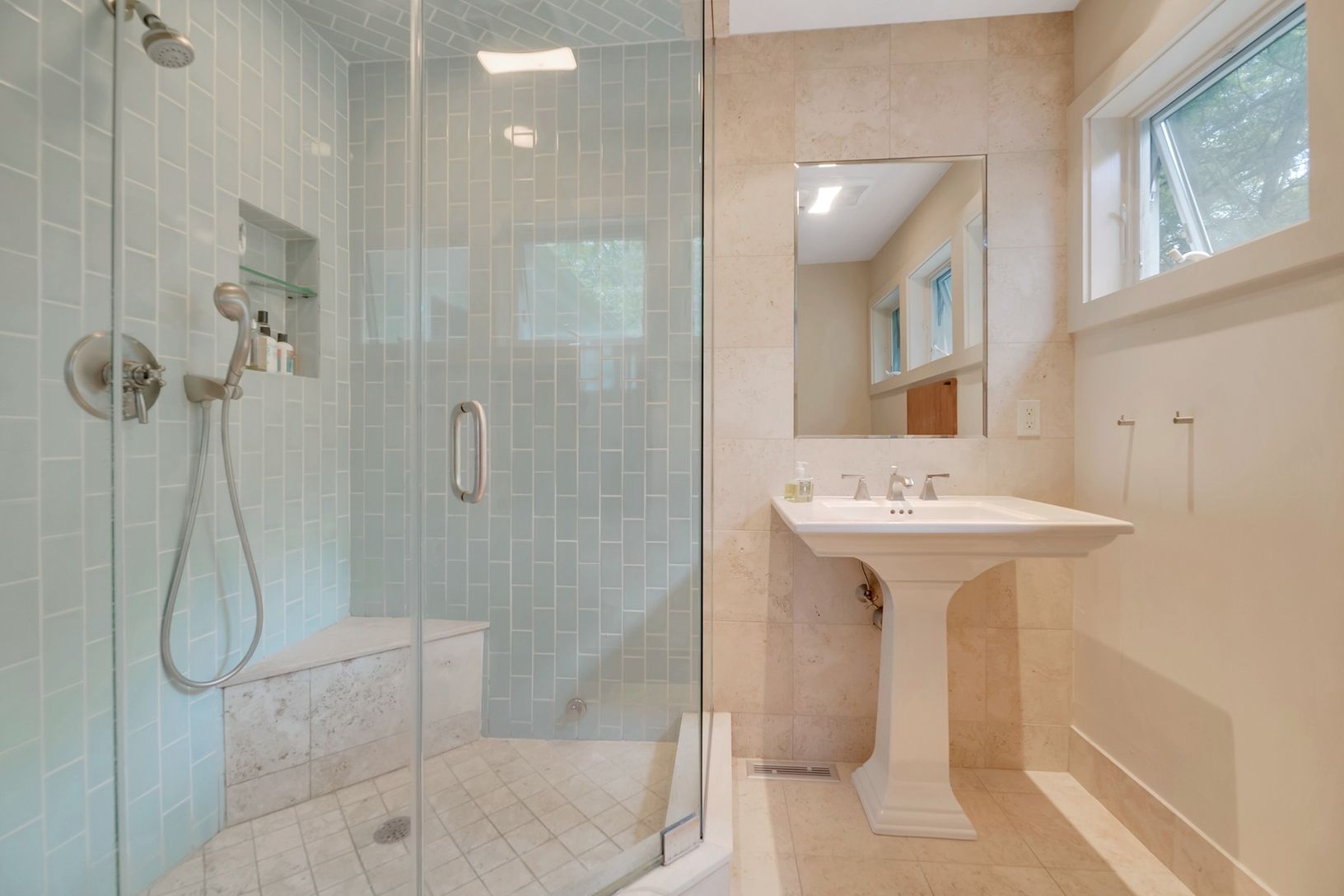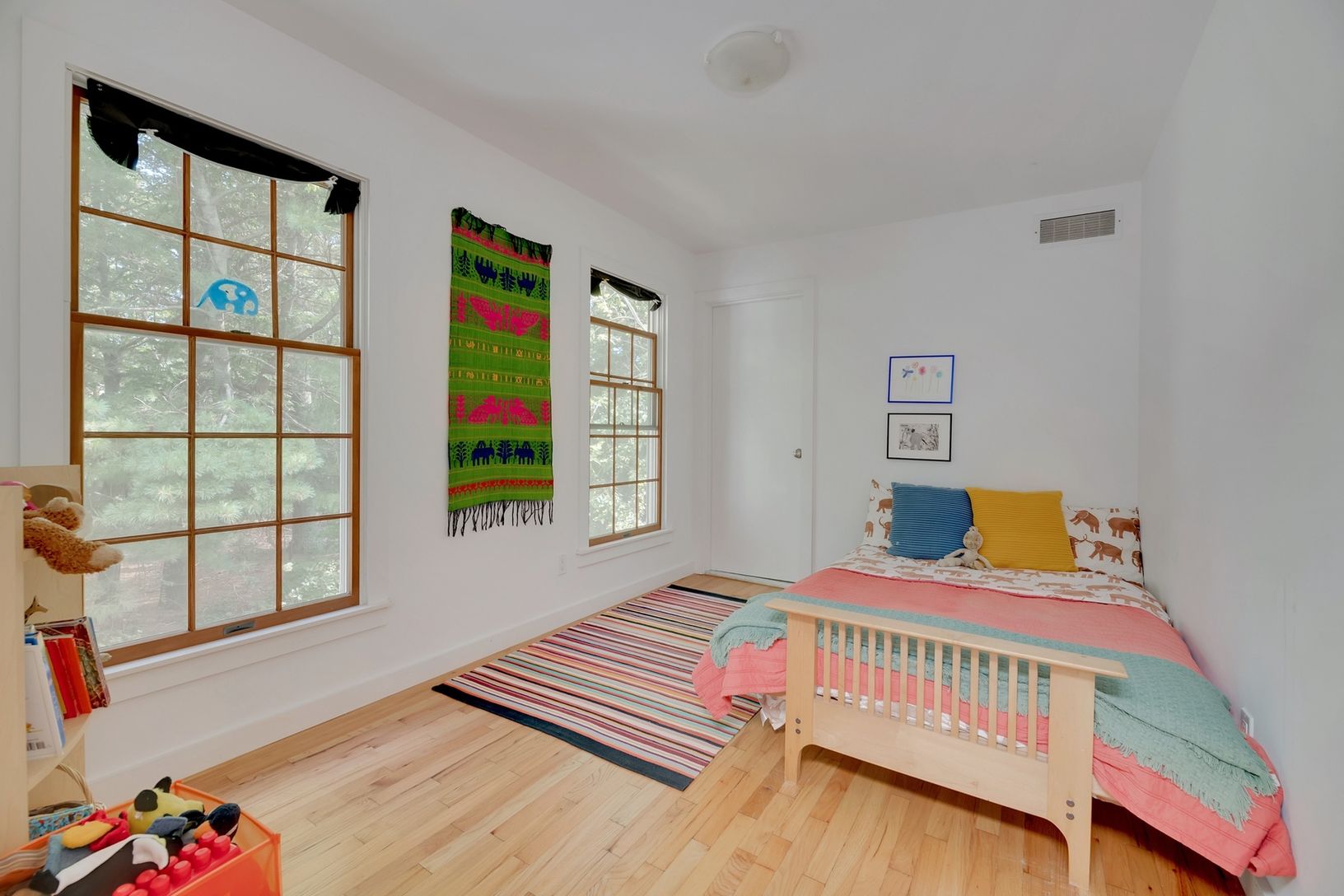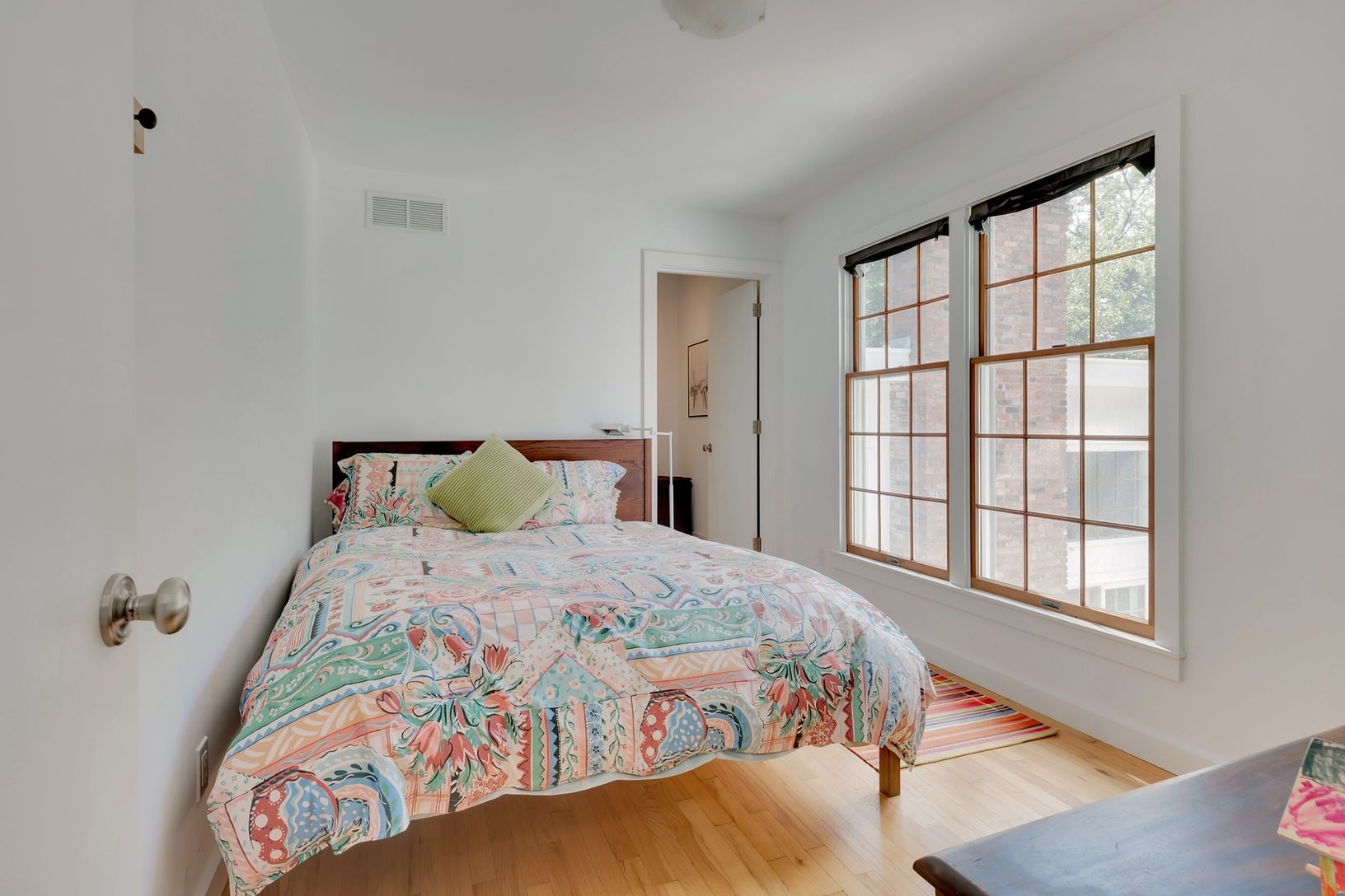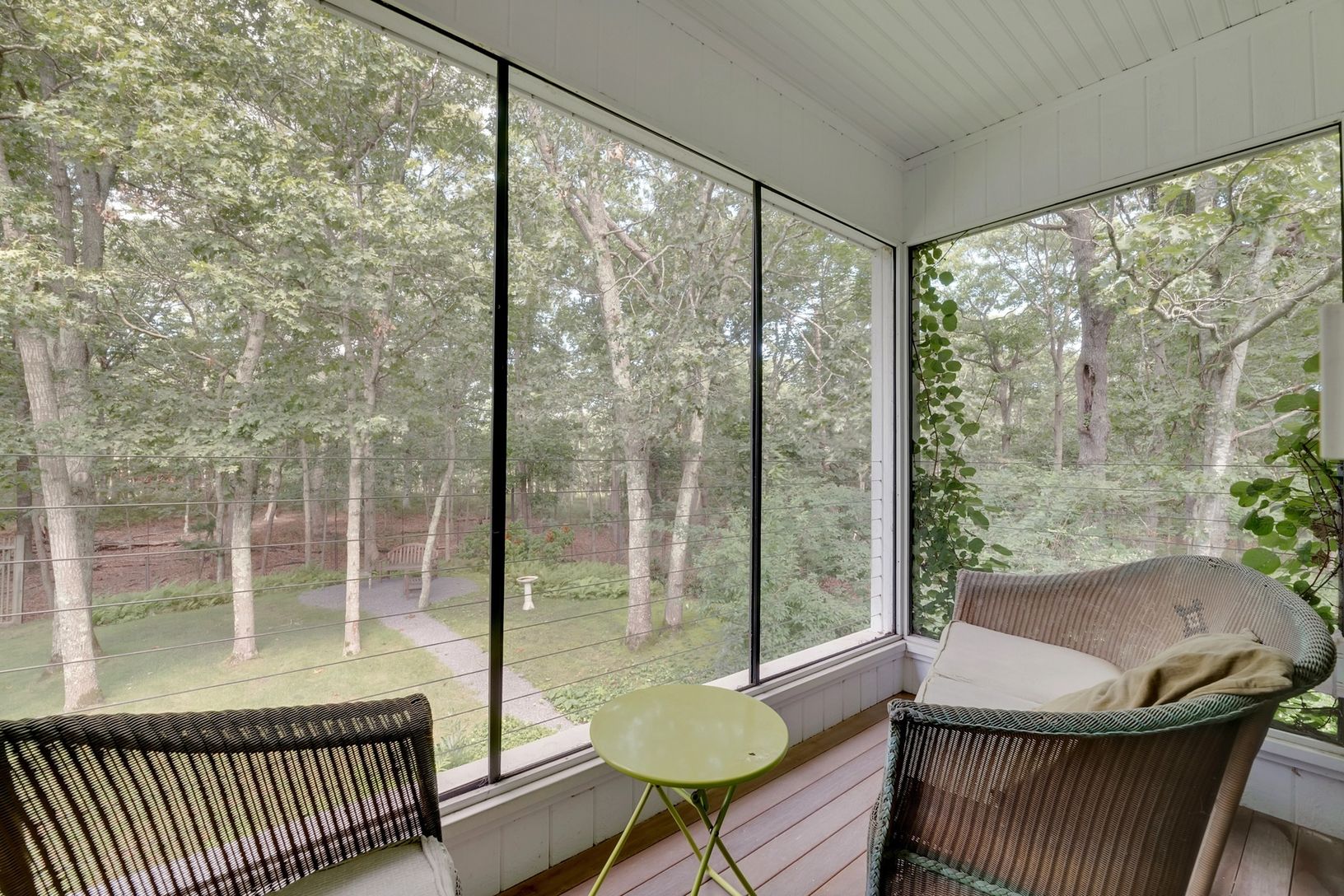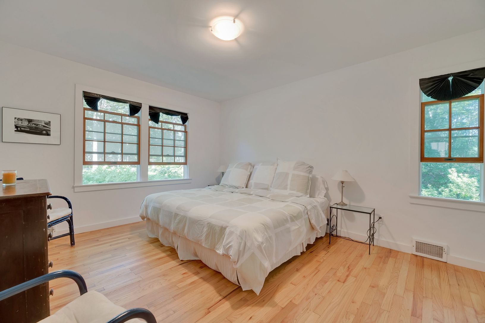 Master bedroom with 10 ft ceiling, framed with windows, including a separate study and screened in porch.