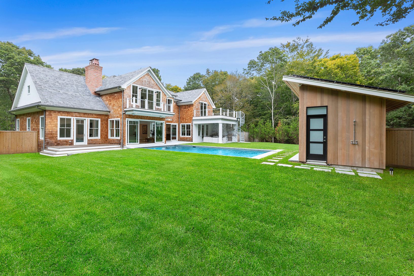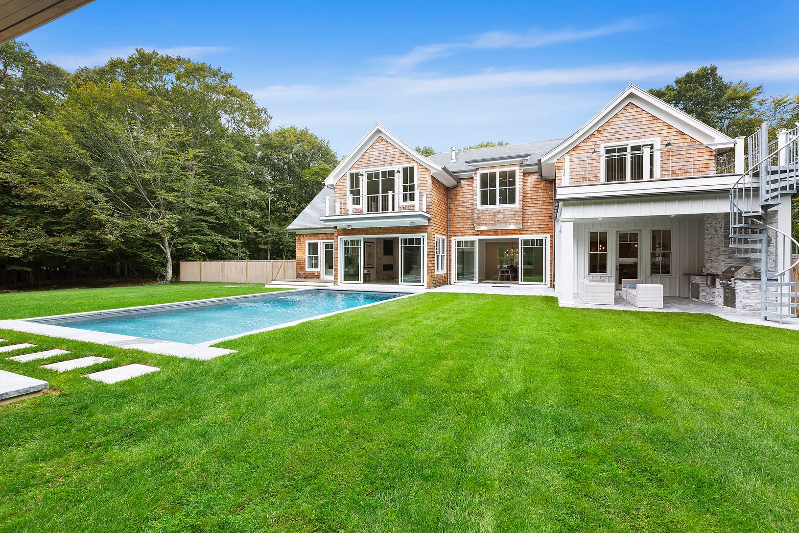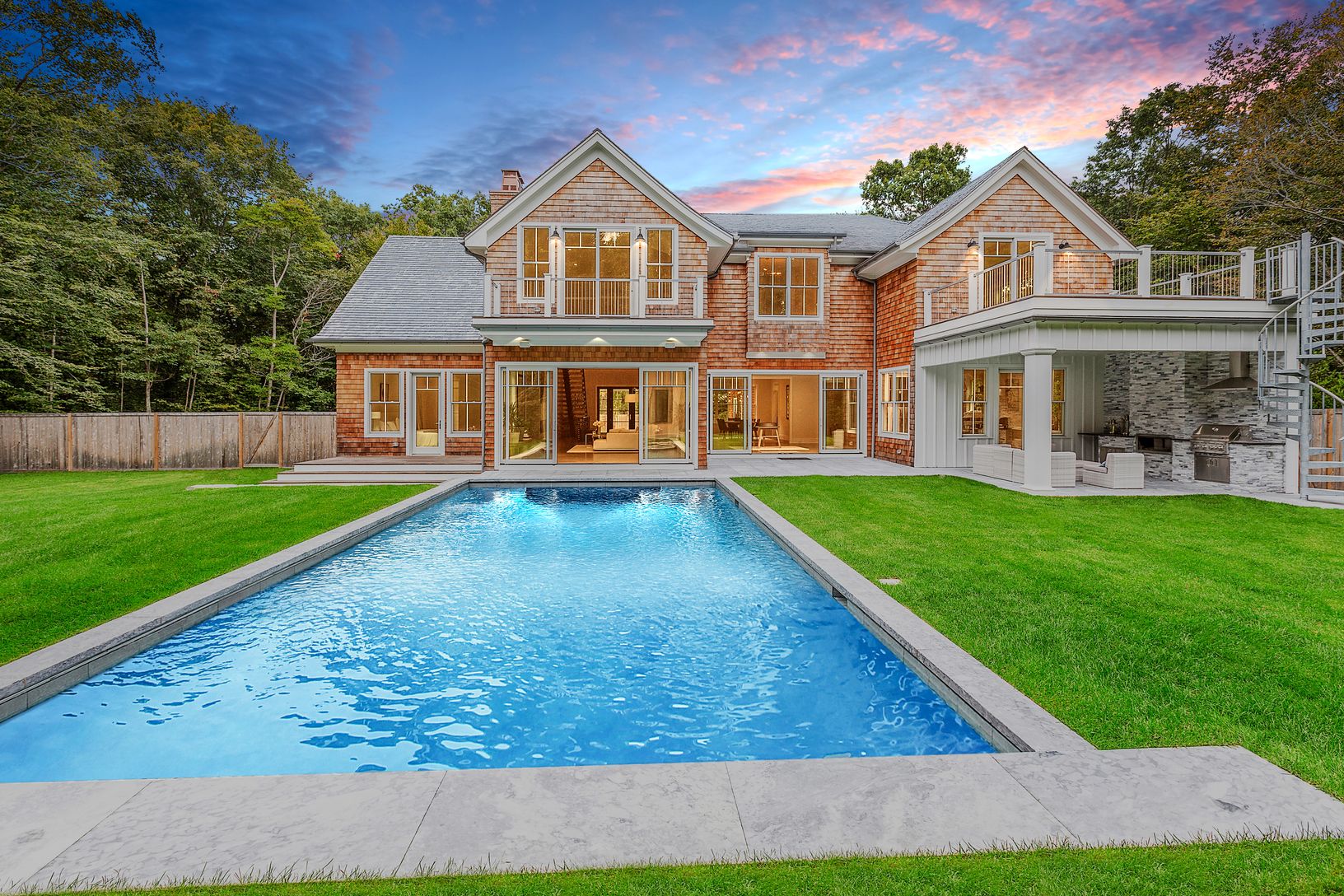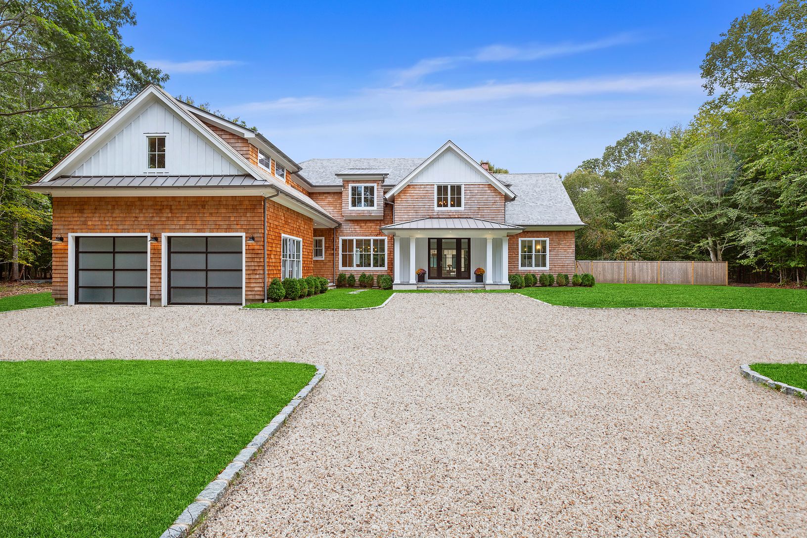 A newly built modern Farmhouse has arrived on coveted Old Orchard Lane in East Hampton just a few minutes down Cedar Street to the village center. With the utmost attention to detail, this compound has been masterfully crafted by Huxley Ridge Design and Development. At the end of a long driveway, surrounded by reserve, this 9,000 +/- square foot home offers stunning design meshing classic Hamptons shingle style with modern elegance. Upon entry