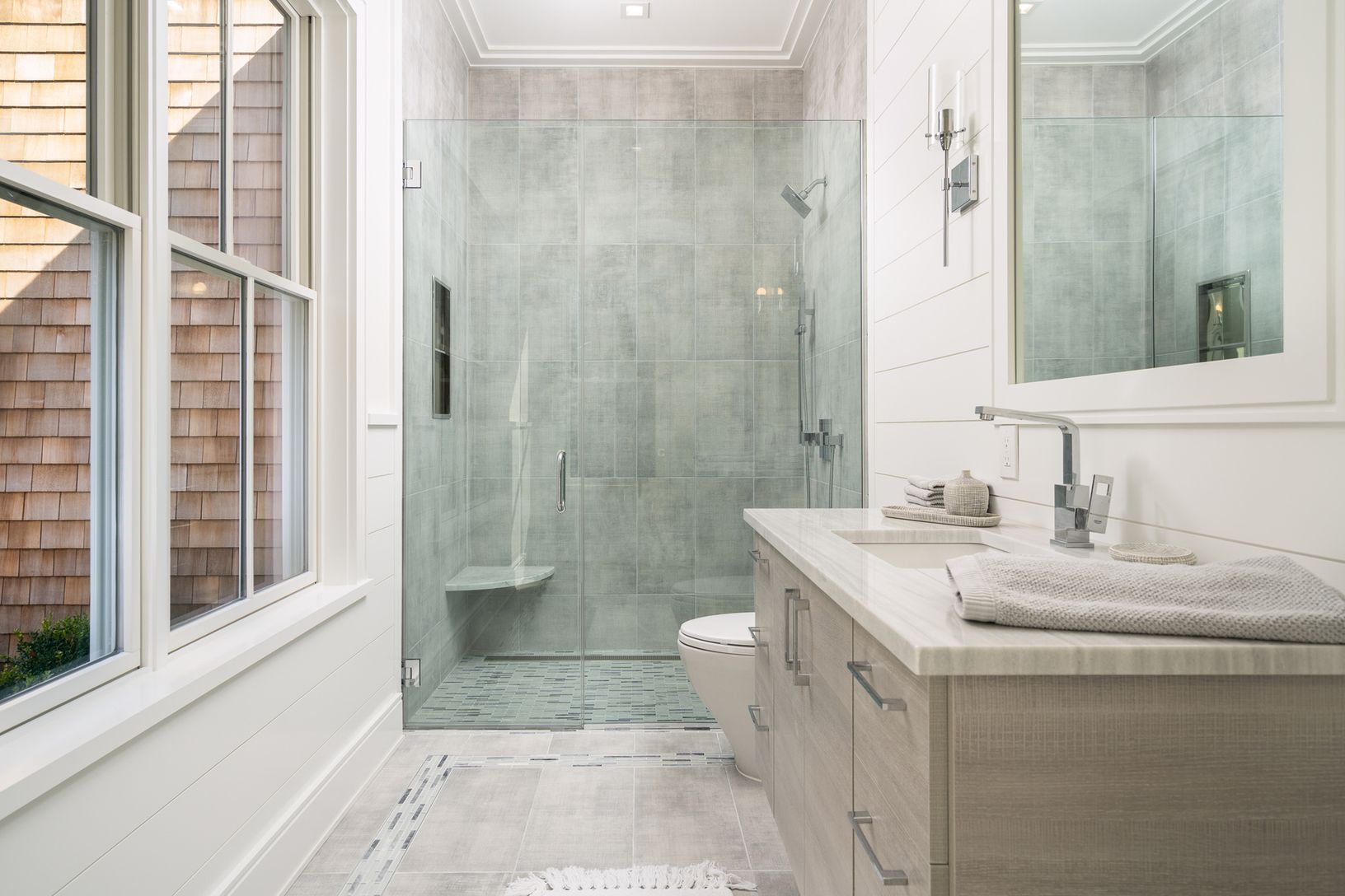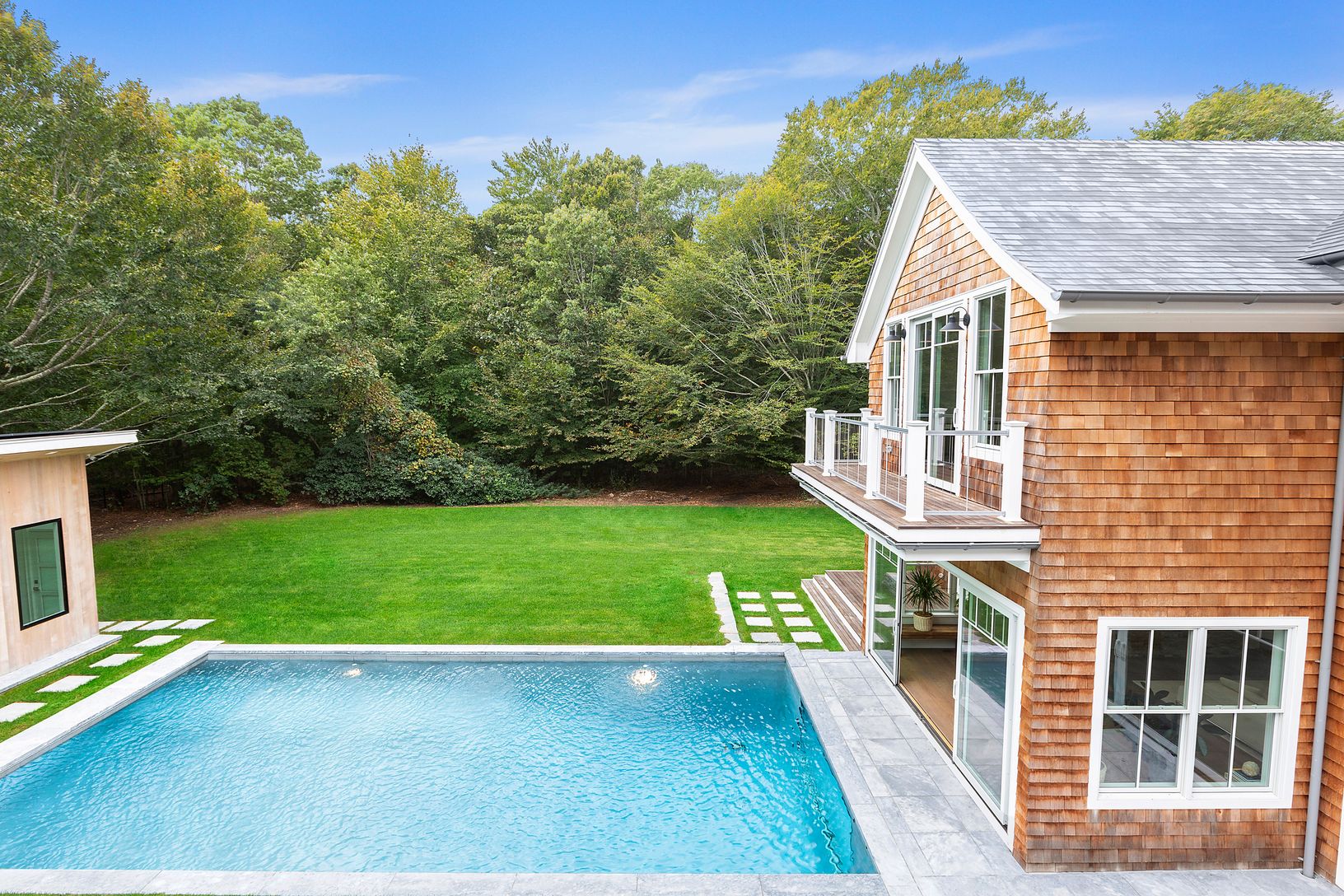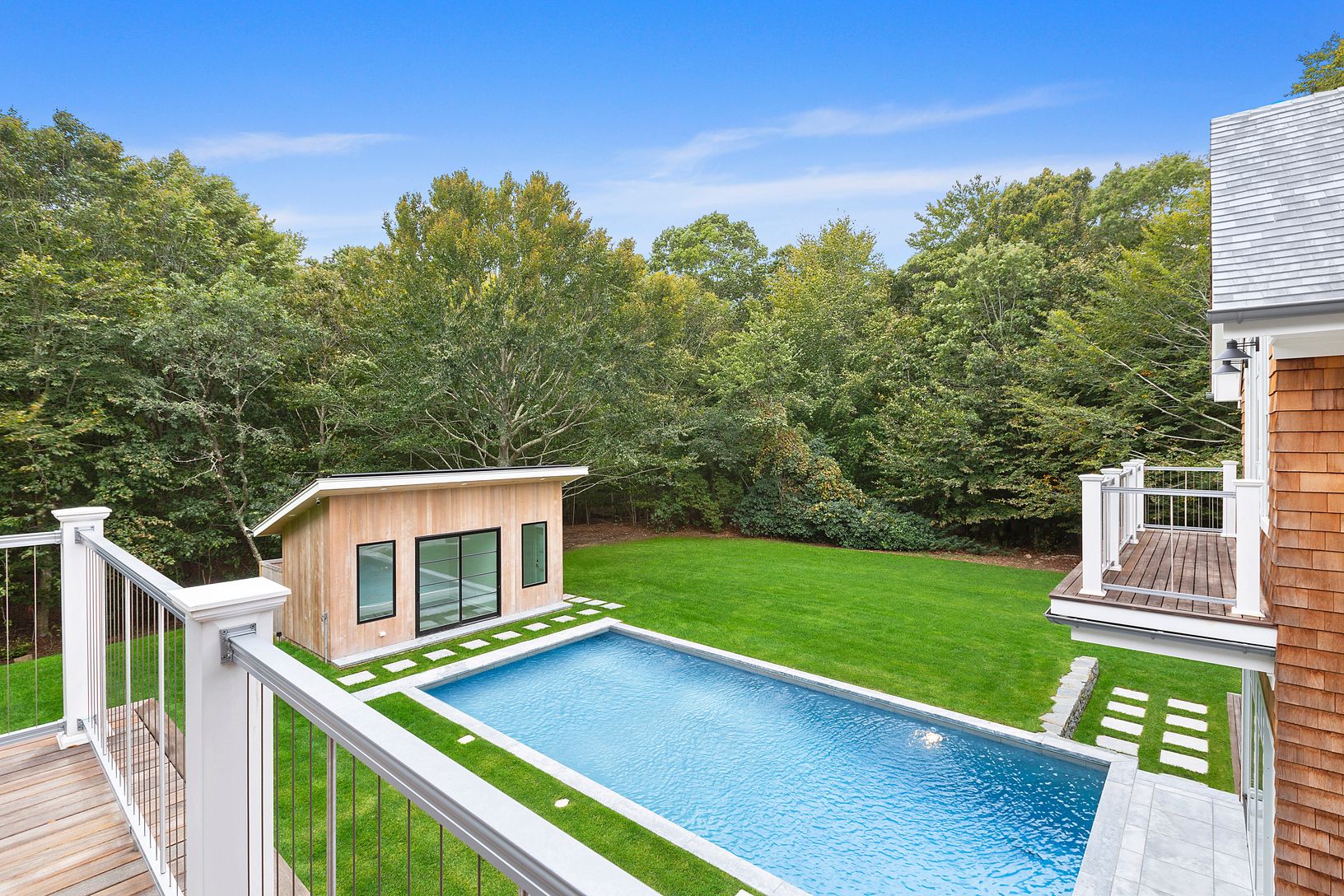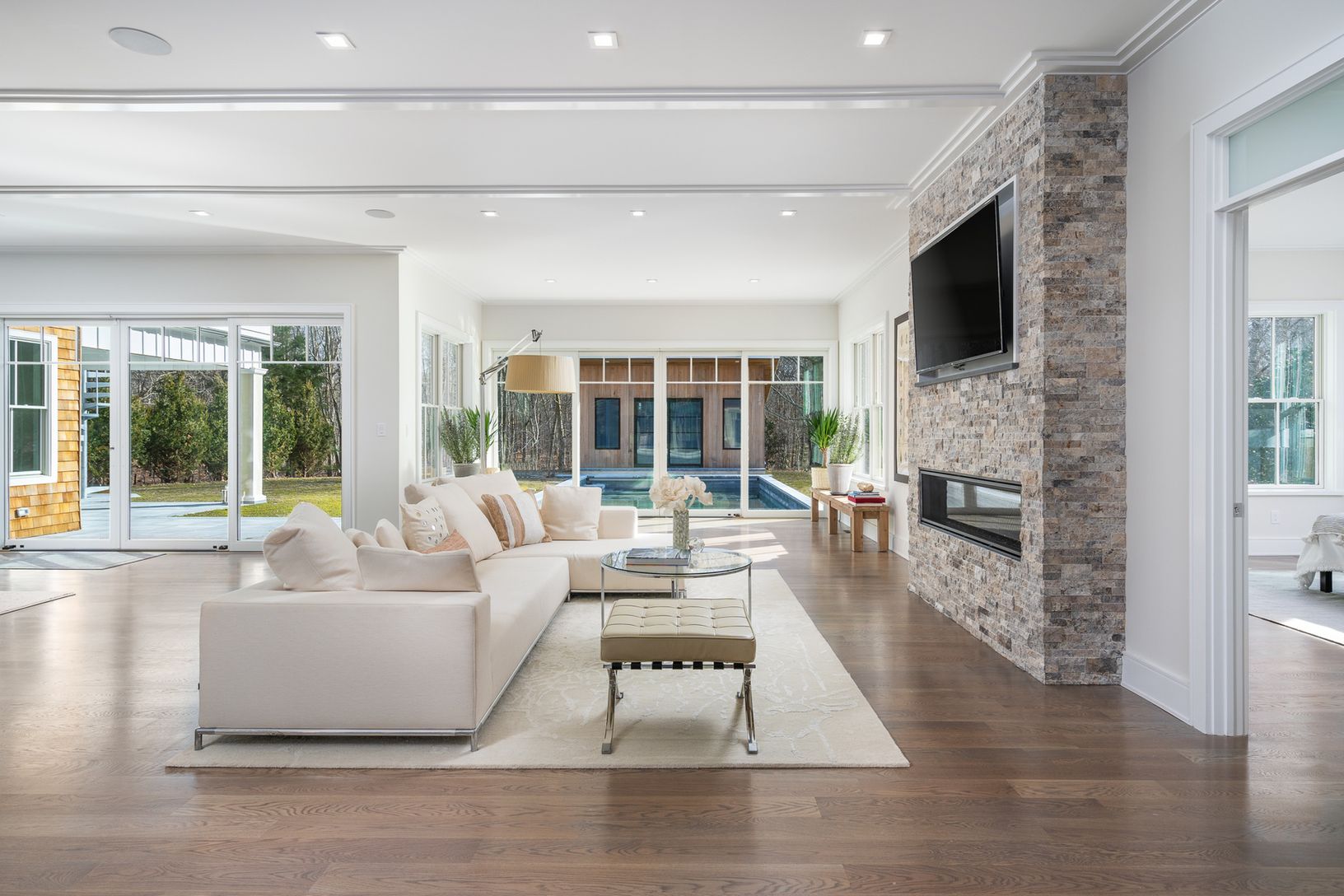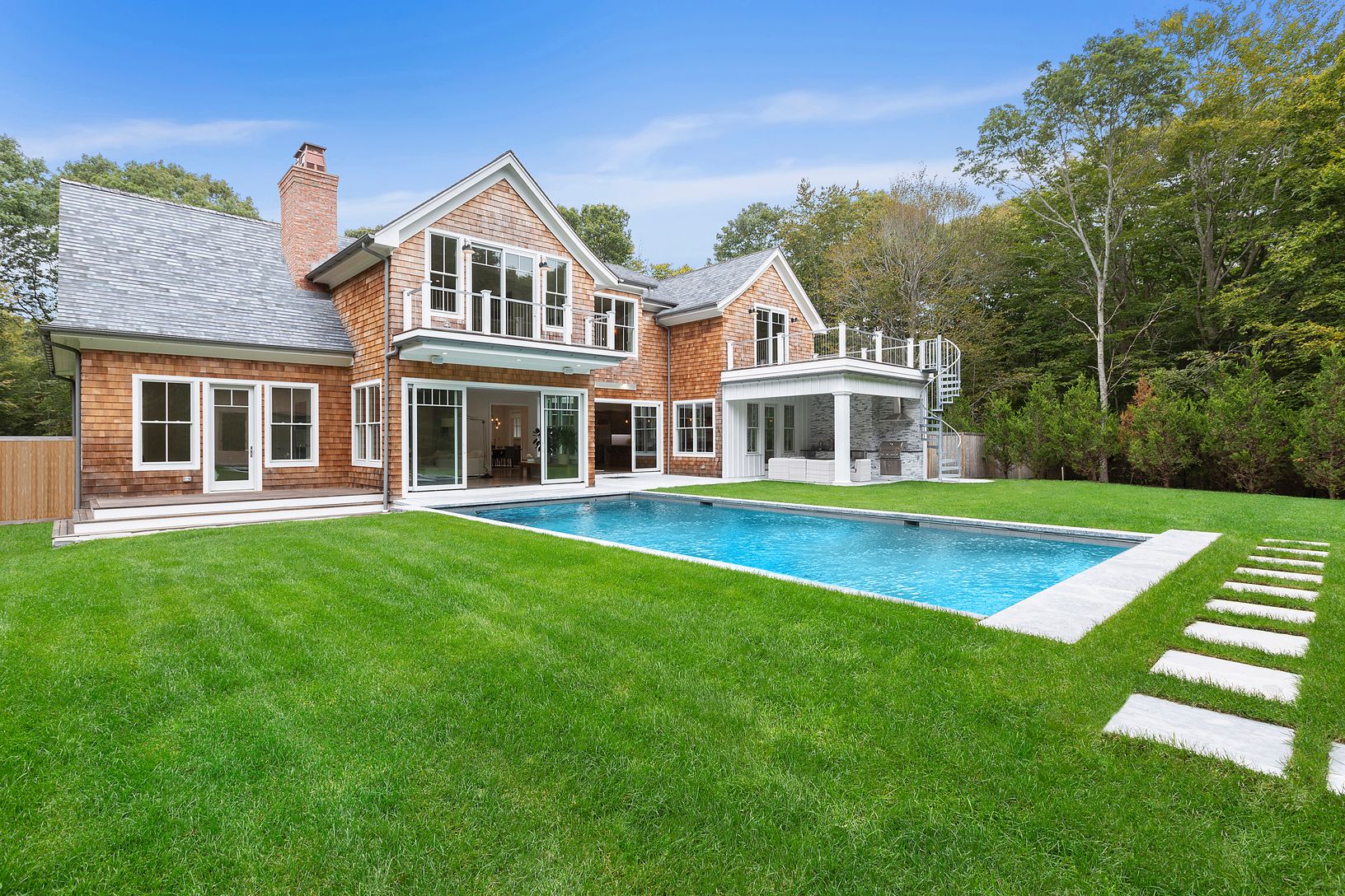 A newly built modern Farmhouse has arrived on coveted Old Orchard Lane in East Hampton just a few minutes down Cedar Street to the village center. With the utmost attention to detail, this compound has been masterfully crafted by Huxley Ridge Design and Development. At the end of a long driveway, surrounded by reserve, this 9,000 +/- square foot home offers stunning design meshing classic Hamptons shingle style with modern elegance. Upon entry