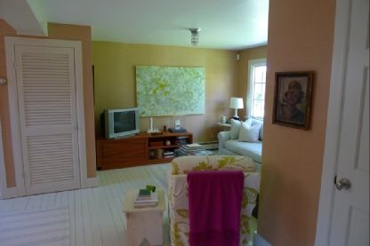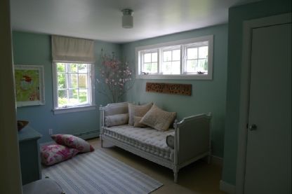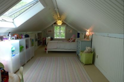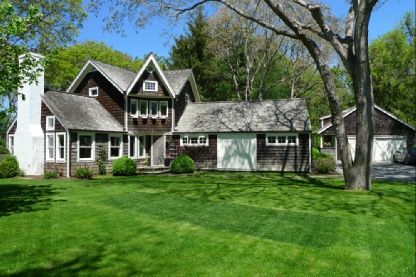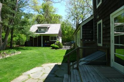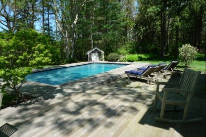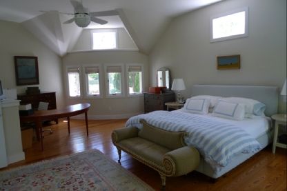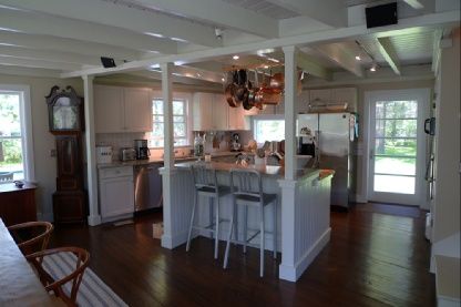 Bike to Georgica beach from this totally renovated and charming home, tucked away on a private lot down a winding driveway. A wonderful blend of old and new, part of the house dates back to 1900, but the main structure was designed recently by an architect and has an open, airy feel. The living room has cathedral ceilings and opens to the dining area and renovated kitchen. On the first floor there are also 2 guest bedrooms, a den, and laundry.