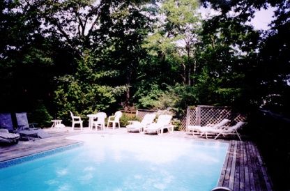 Contemporary residence, built on .79 +/- acre lot with high elevation. The house boasts a bright, open, airy floor plan, extensive decking, with sliders on both floors. Excellent location, only a very short distance to private bay beach access. Lots of space for entertaining. New CAC & Pool liner installed in '07. Needs TLC. SOLD