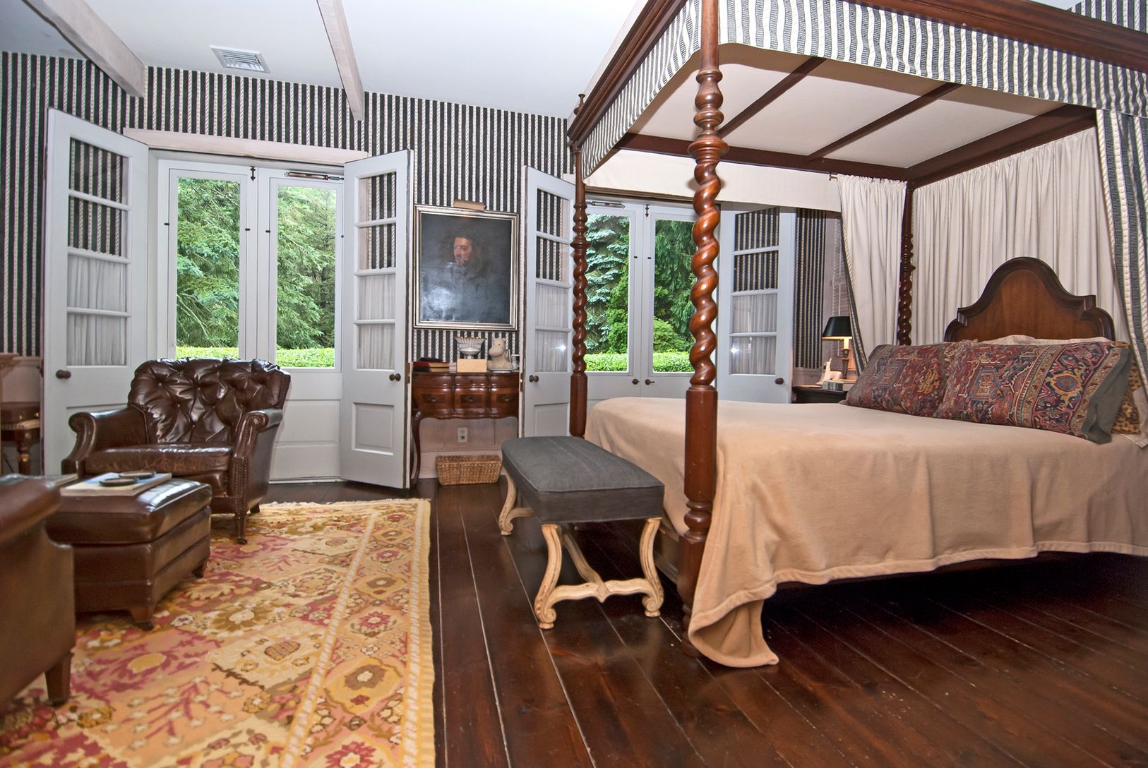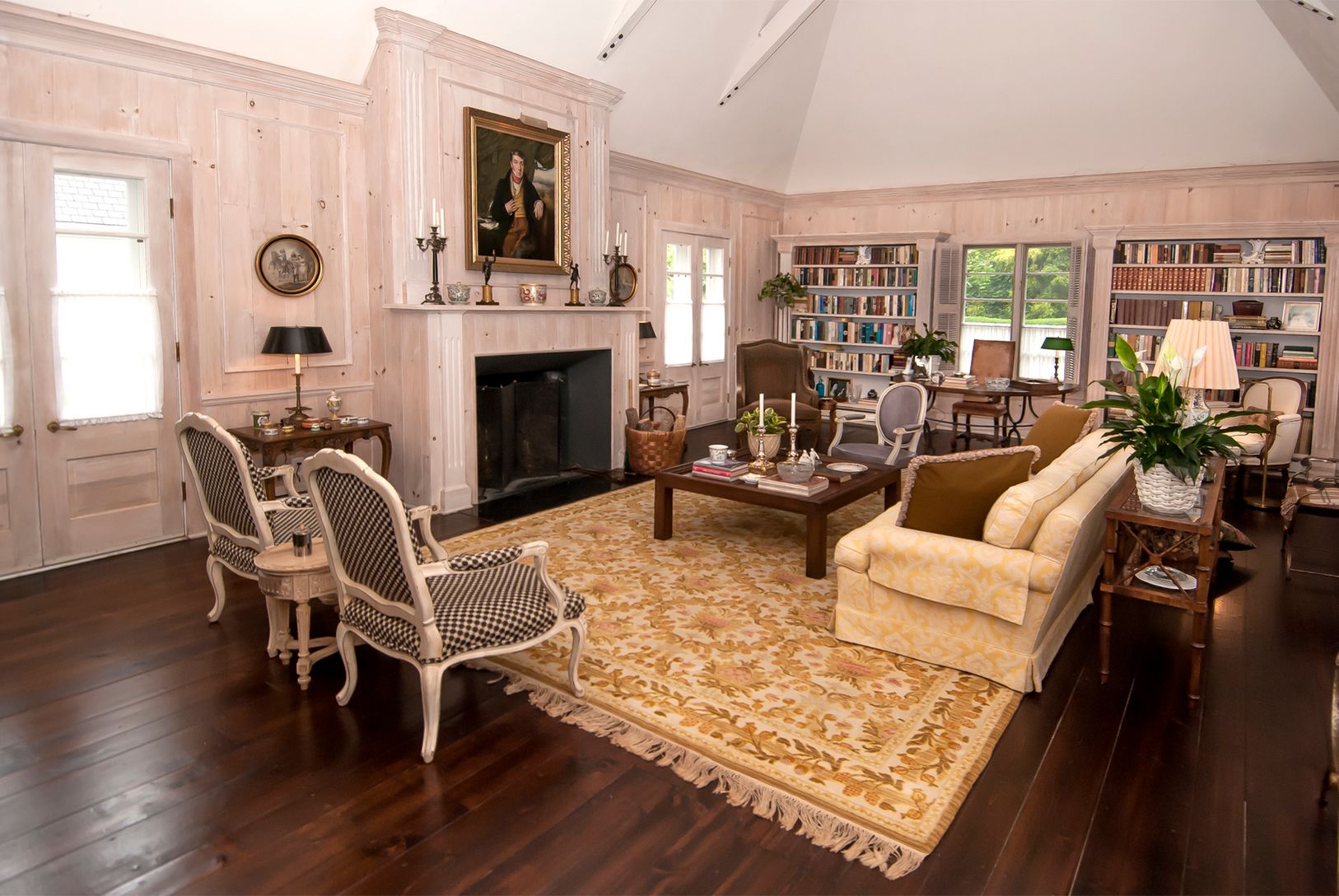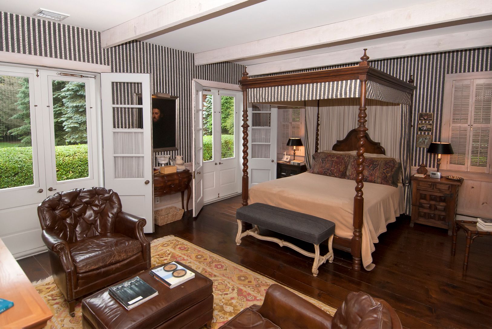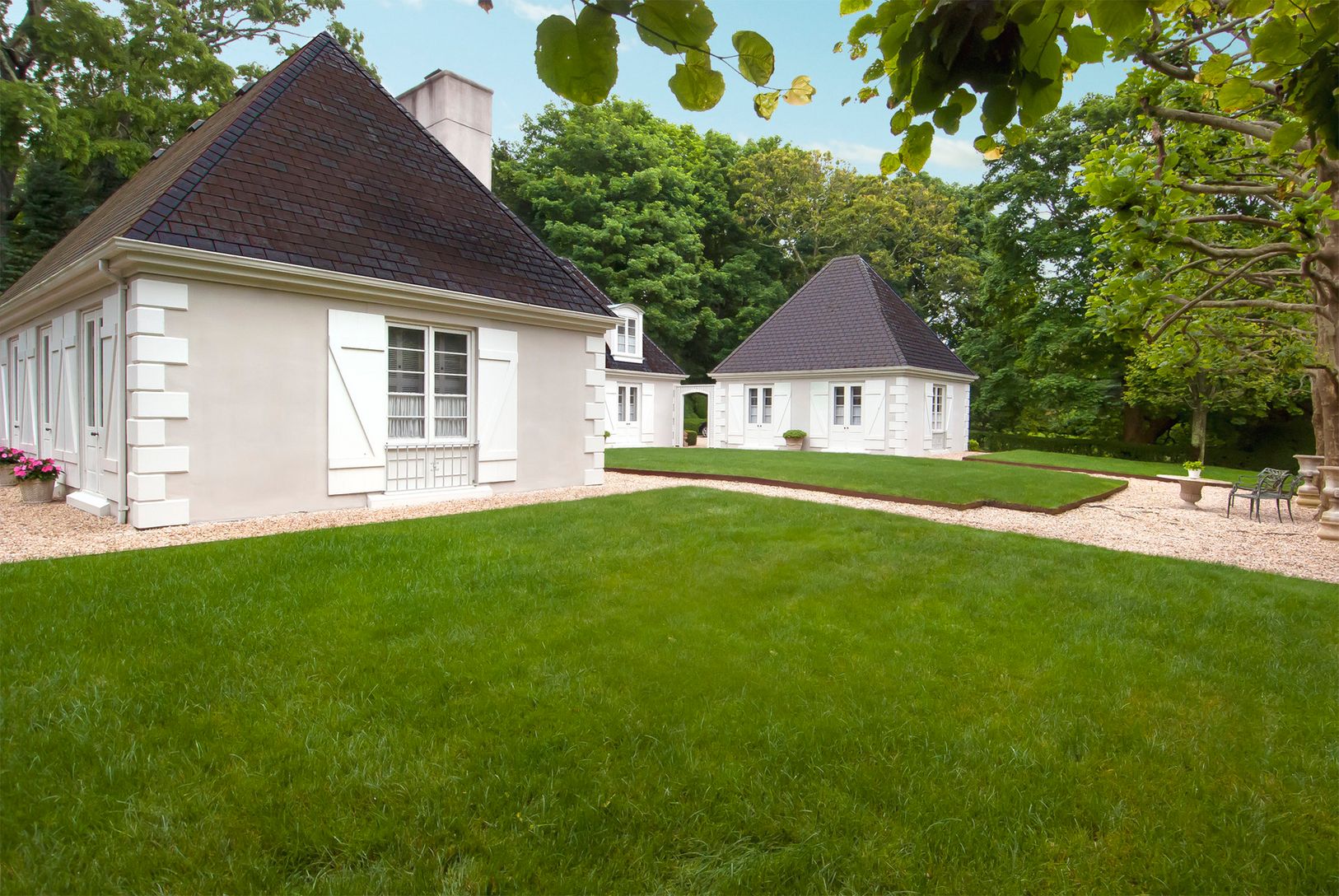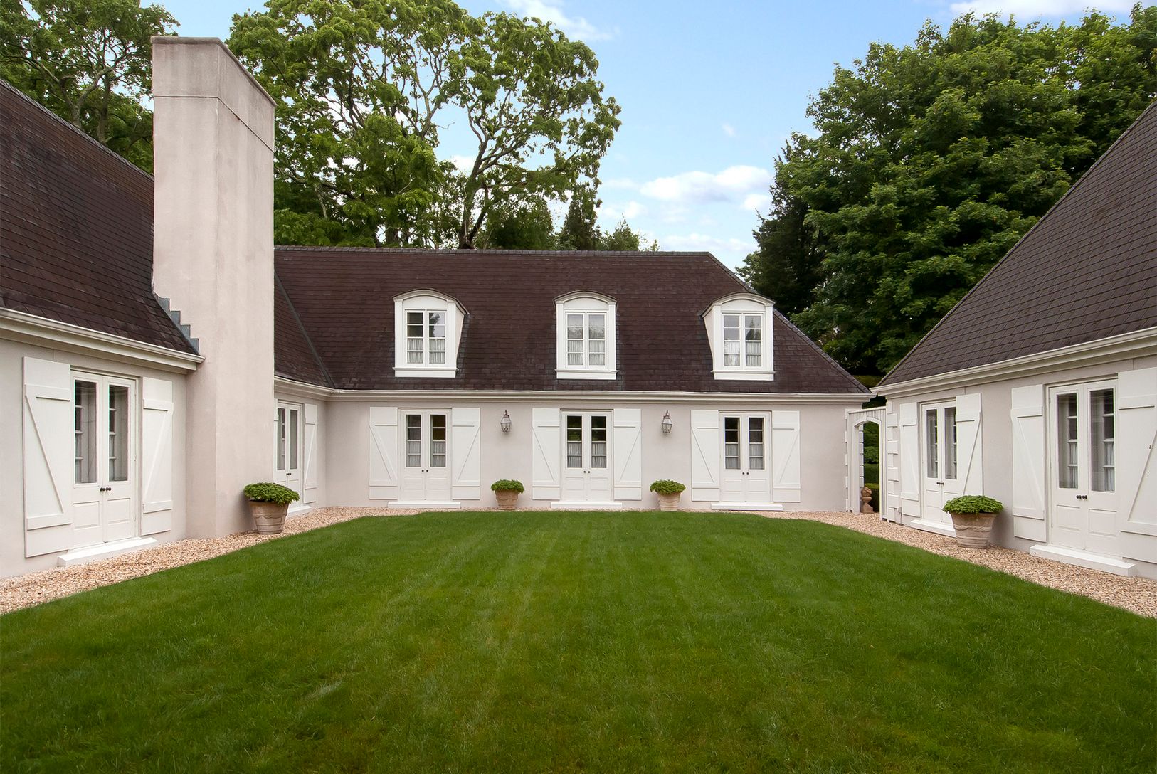 Drawing inspiration from the French film "La Femme Infidele," architect Edward W. Slater created a classic gentilhommiere, which he defined as "a country house belonging to nobles who followed the king's taste but were not of royalty". In building the two-story house in the shape of a modified u, the architect created a classical symmetry that allows the outside living area to be incorporated into the site plan. Among the many stylish design e