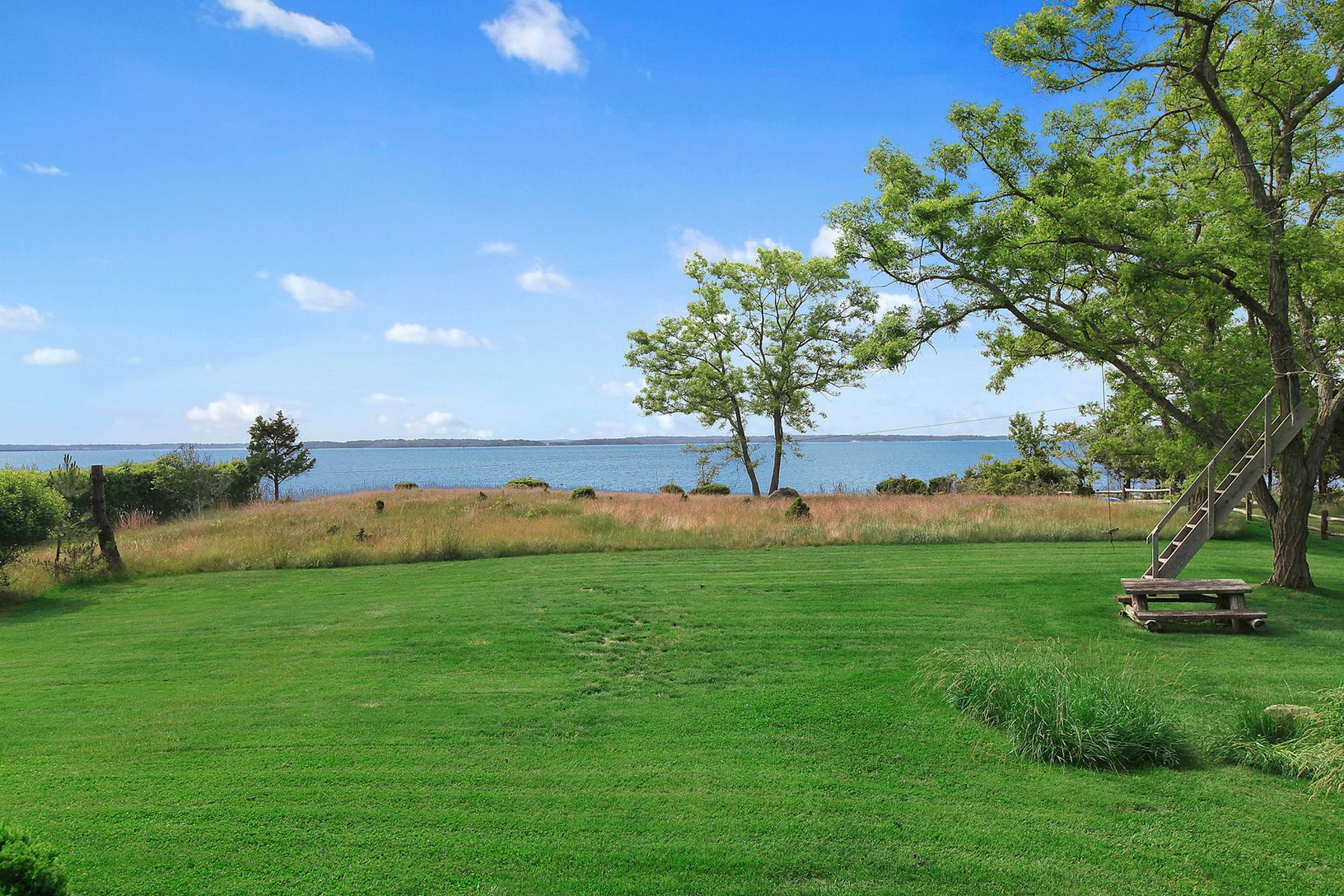 A stunning waterfront opportunity with 126 ft. of open unobstructed Northwest Harbor beachfront. Dramatic west facing sunset views across the bay from Barcelona Beach, to the Mashomack preserve on Shelter Island, and all the way north to the Cedar Point Lighthouse and Connecticut beyond. The present untouched natural landscape is truly preserved the way the Hamptons used to be.