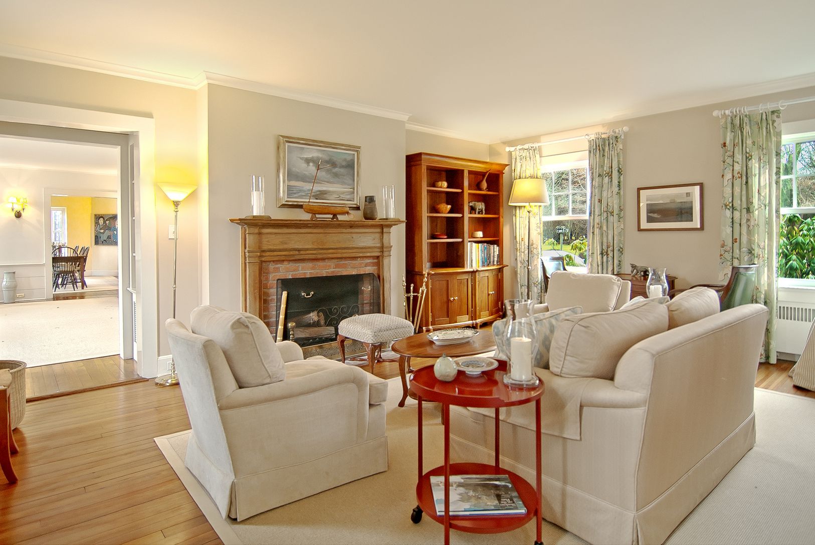 Classic 3.5 +/- acre property is only 0.6 +/- miles to Georgica Beach. The Emily Trowbridge Bell house was designed by well known East Hampton architect Aymar Embury II in 1920 and enlarged by each of the three subsequent owners. The two-story colonial revival is in excellent condition, is heated and air-conditioned for year round living, and includes 6 bedrooms, 5.5 baths. Warm and distinctive common rooms include entrance foyer, living room