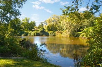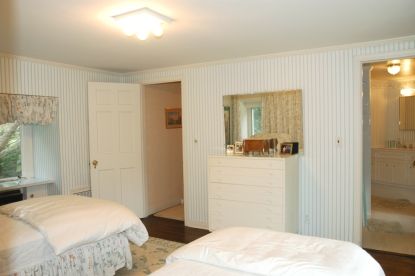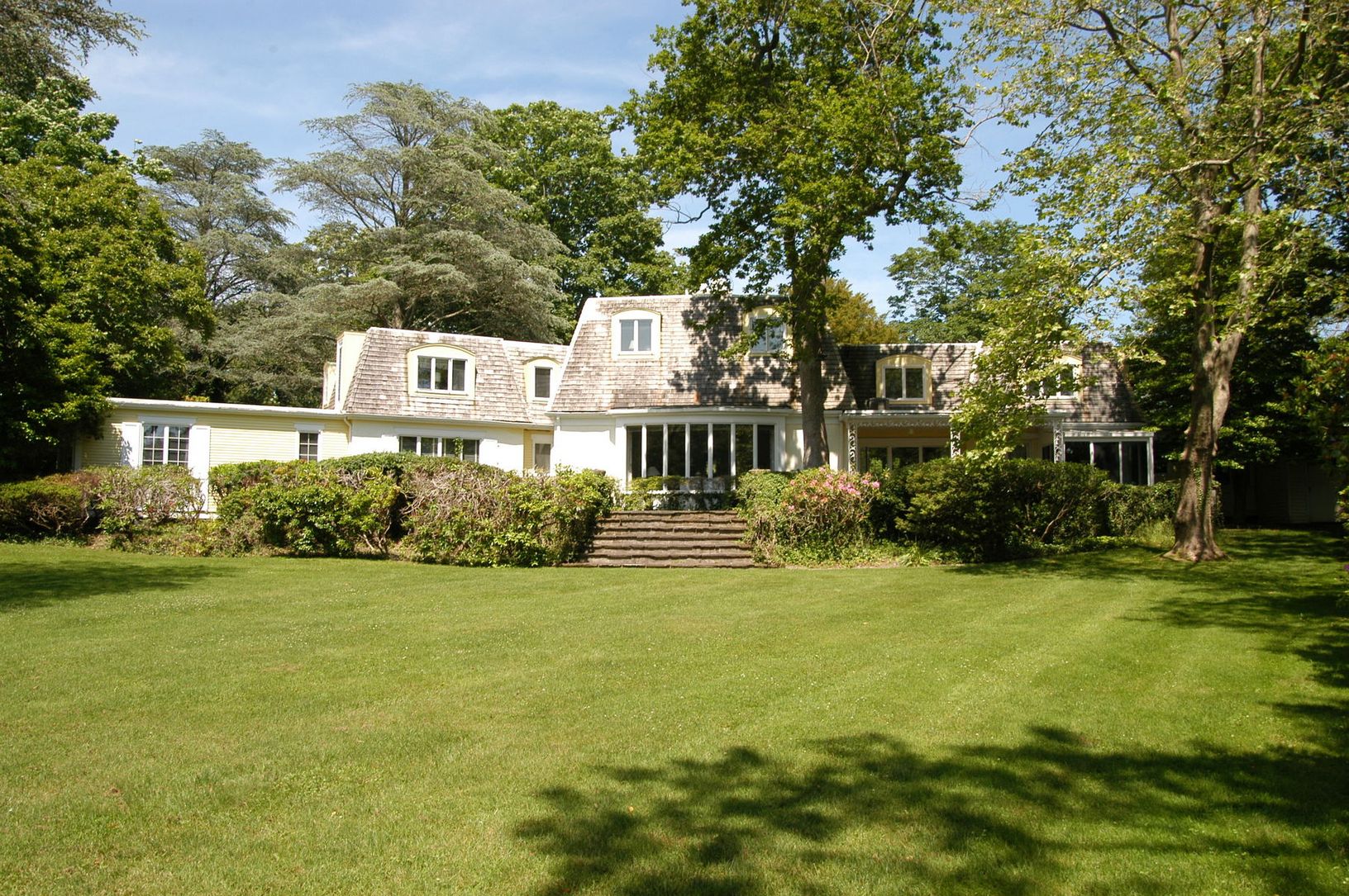 Private 1.27 +/- acre property on Hook Pond is a beautiful setting with wildlife habitat. Situated on a private lane proximate to the ocean beach and Village shopping. The current house includes six bedrooms, large living room with fireplace and wet bar, dining room, study, downstairs master bedroom, two car garage, central air-conditioning, and partial basement. Permits are in place for a house, garage and water side pool. Gorgeous grounds w