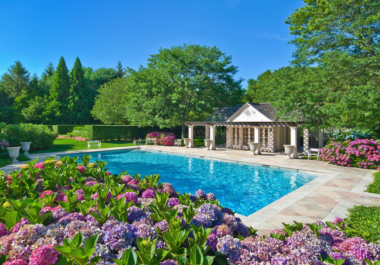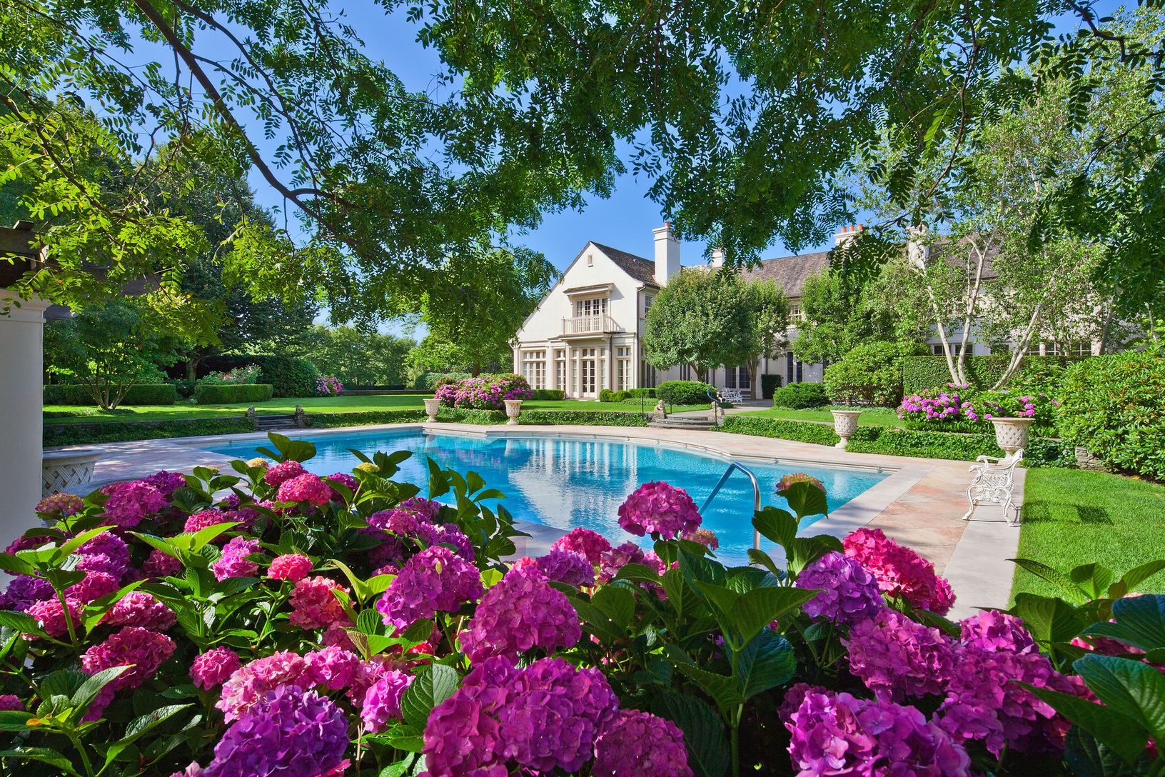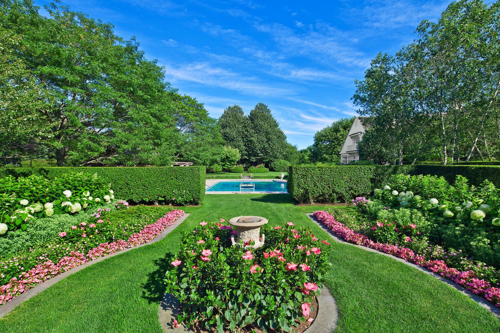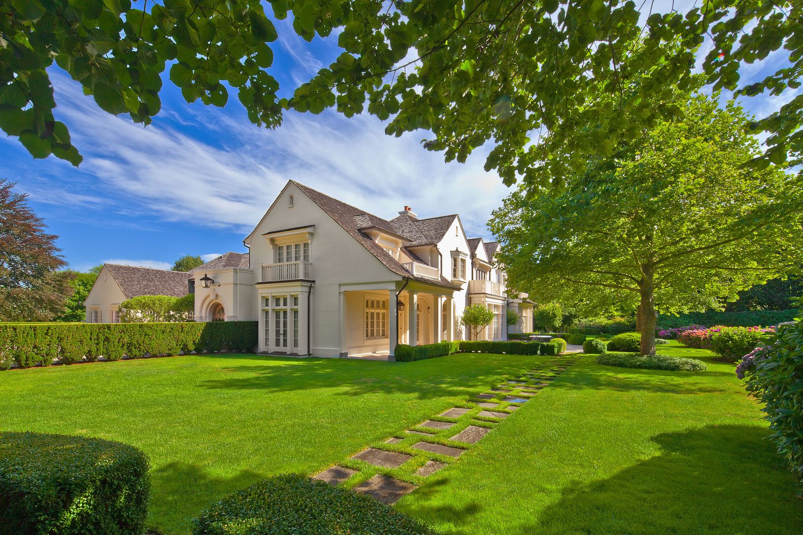 Designed by New York architect Boris Baranovich and built by Trunzo Contracting, Inc. in 1998, the residence features a classic stucco exterior, marble floors and hand-carved millwork. Dramatic entrance foyer with inlaid wood floor, living room with crown moldings and fireplace, paneled library with fireplace and wet bar, gracious drawing room, and dining room with fireplace. Second floor master suite plus two large guest suites face south wit