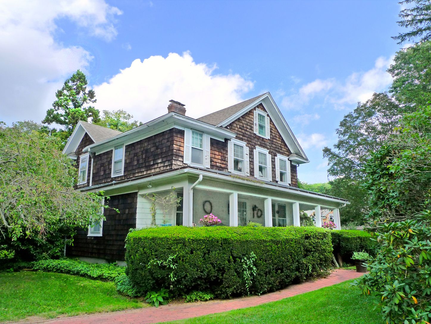 Charming classic East Hampton farmhouse with big front porch and mature landscaping on stately Dunemere Lane. Excellent south-of-the-highway location is also very close to library, Guild Hall, shops, restaurants, Maidstone Club and ocean beach. First floor features living room with fireplace, dining room, den and eat-in kitchen. Upstairs there are 4 spacious bedrooms, 2 full bathrooms, plus an extra room that would be good for an office or nu