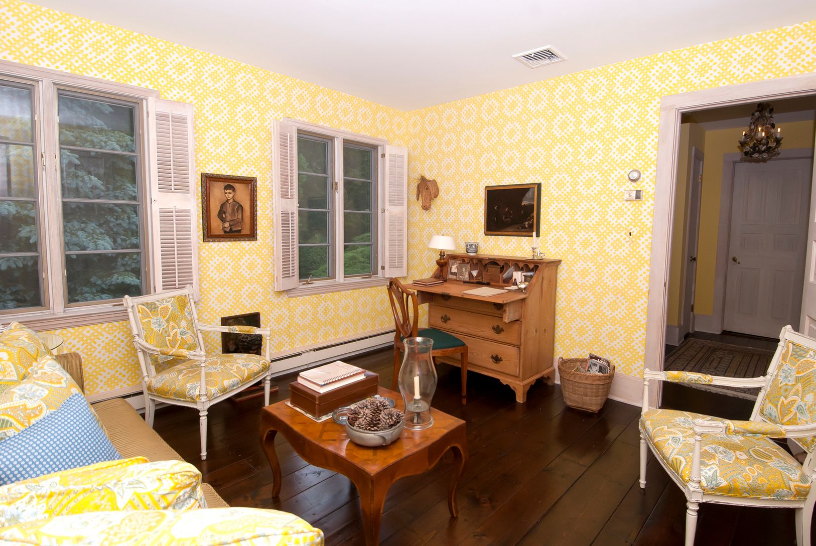Drawing inspiration from the French film "La Femme Infidele," architect Edward W. Slater created a classic gentilhommiere, which he defined as "a country house belonging to nobles who followed the king's taste but were not of royalty". In building the two-story house in the shape of a modified u, the architect created a classical symmetry that allows the outside living area to be incorporated into the site plan. Among the many stylish design e