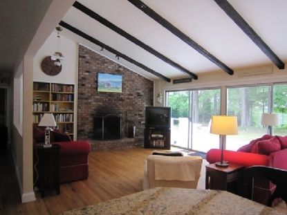 Spacious three-bedroom two-bath traditional home with large open living room, dining area with views of the lovely private property. There is a custom-built deck surrounding the house at the back of the property. Features include a renovated kitchen and partially-finished basement with laundry room. The house is centrally air conditioned and boasts a one-car garage. Just a short distance to Three Mile Harbor and bay beaches, yet only a 10-mi