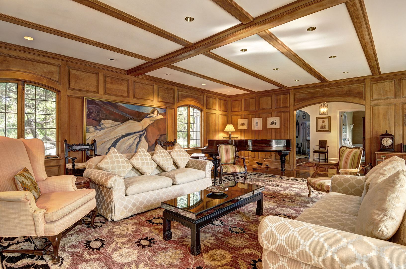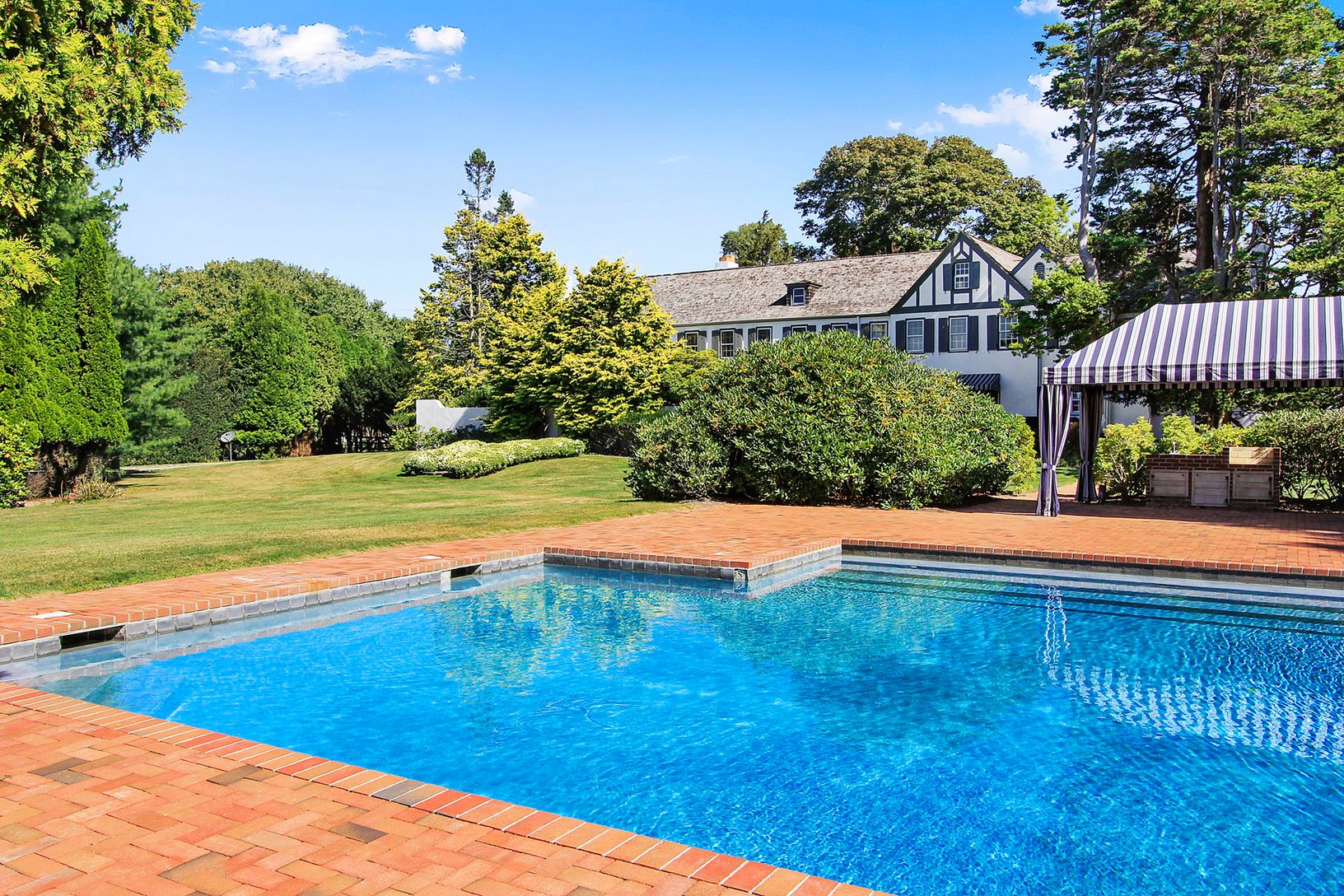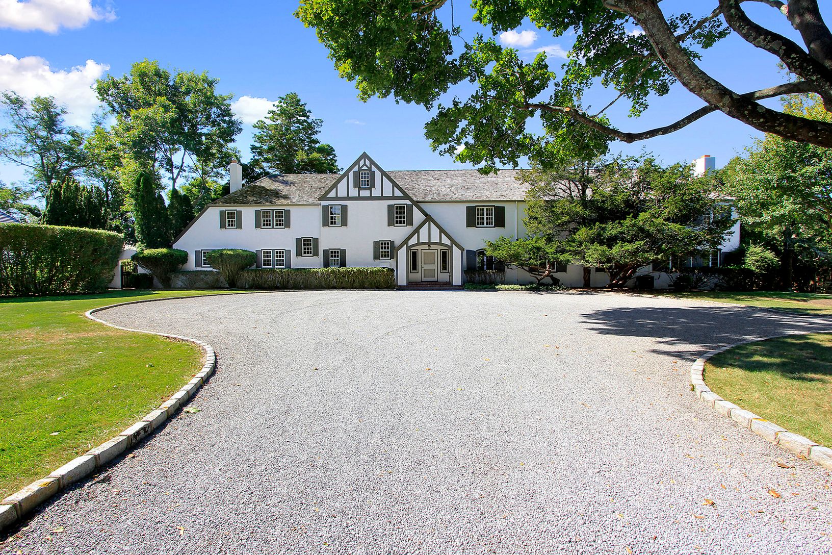 Major estate in East Hampton Village includes a Tudor residence c.1929 on 5 manicured acres +/- with swimming pool and tennis court. Elegant living room, library, dining room and office. Upstairs, five bedrooms plus two-bedroom staff wing. Four fireplaces, fully heated and air-conditioned for year-round use. Separate 3-car garage barn with two-and-one-half room apartment. Situated on a classic tree-lined street, less than one mile to the ocean