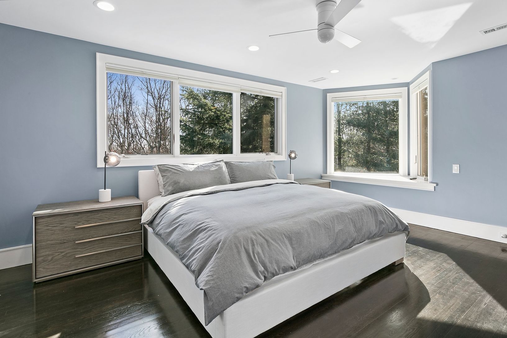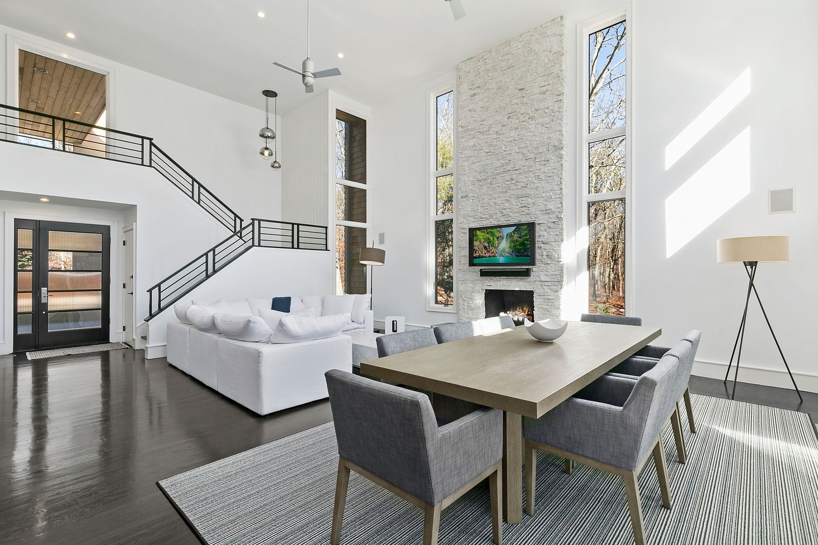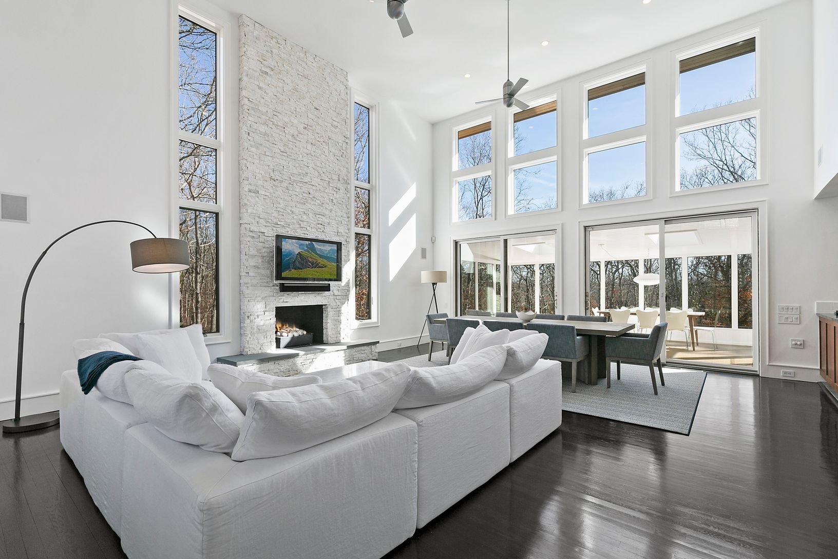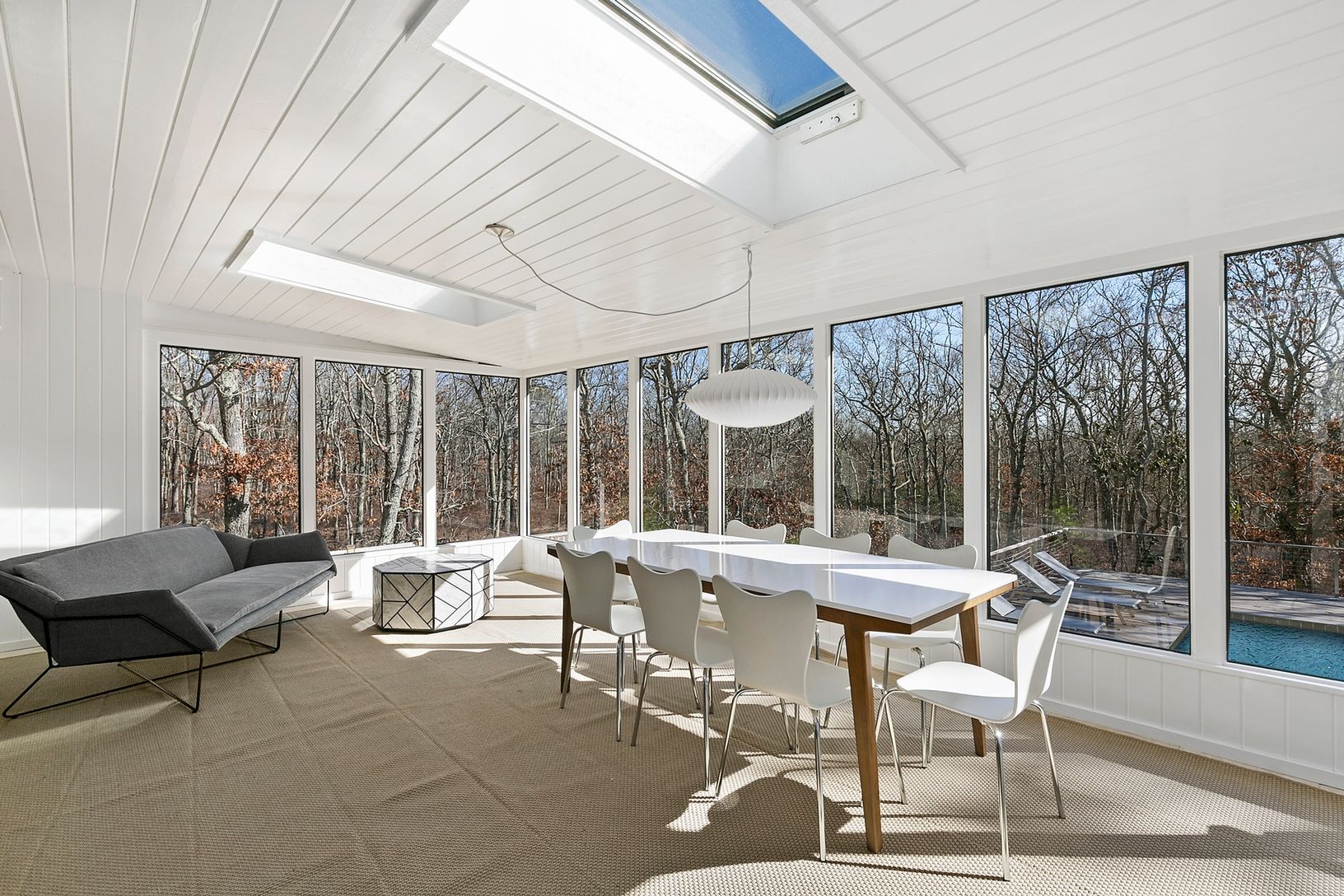 RR# 24-188 Renovated in 2017, sublimely modern, but comfortable, this 4 bedroom, 4.5 bath house has a soaring double height open living/ dining area leading to a comfy screened porch overlooking the heated pool. First floor primary suite has a gas fireplace and an adjacent sauna. Beautifully appointed and perfect for relaxing no matter what room you're in. A gourmet kitchen completes the picture. Equidistant between East Hampton and Sag Harbor