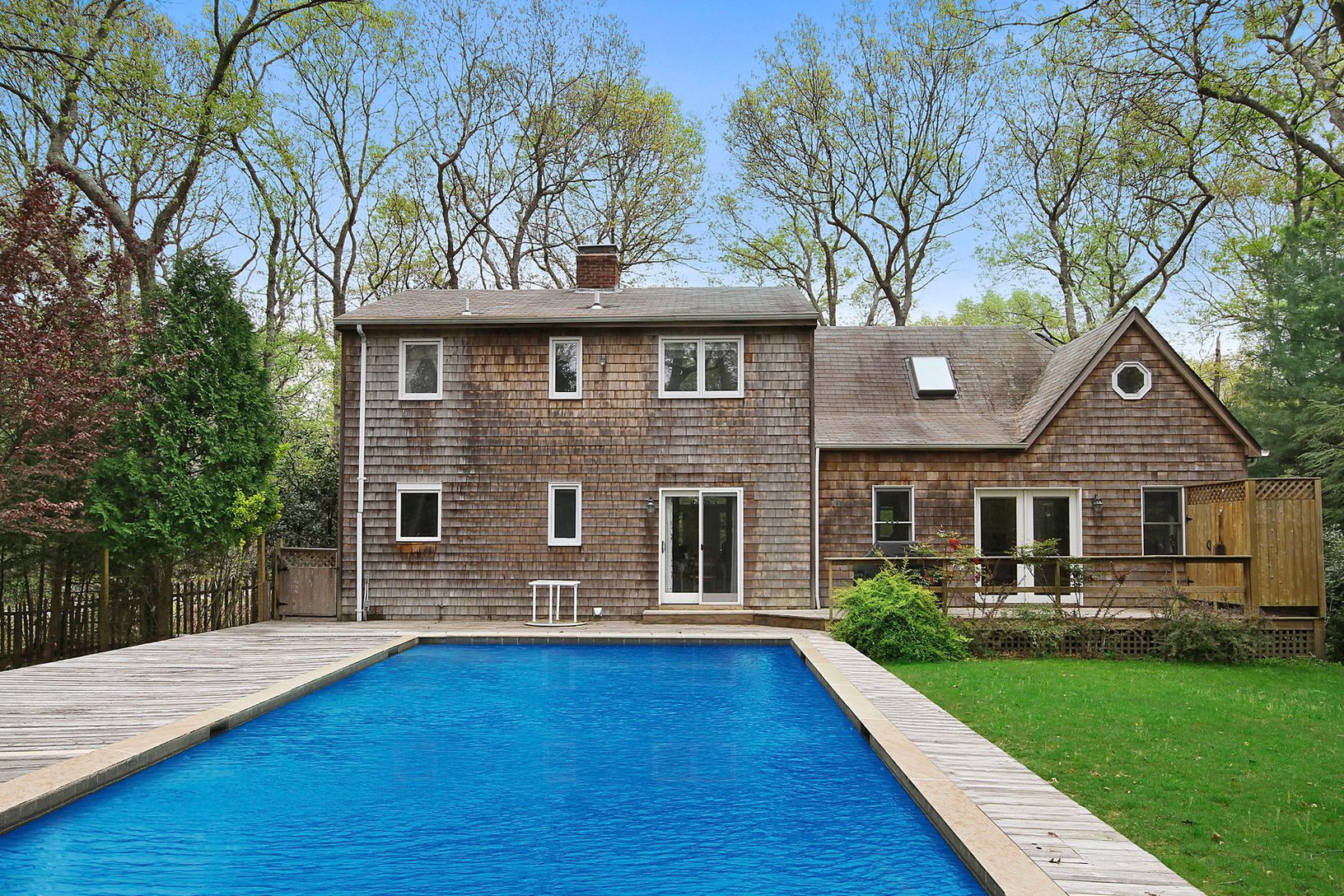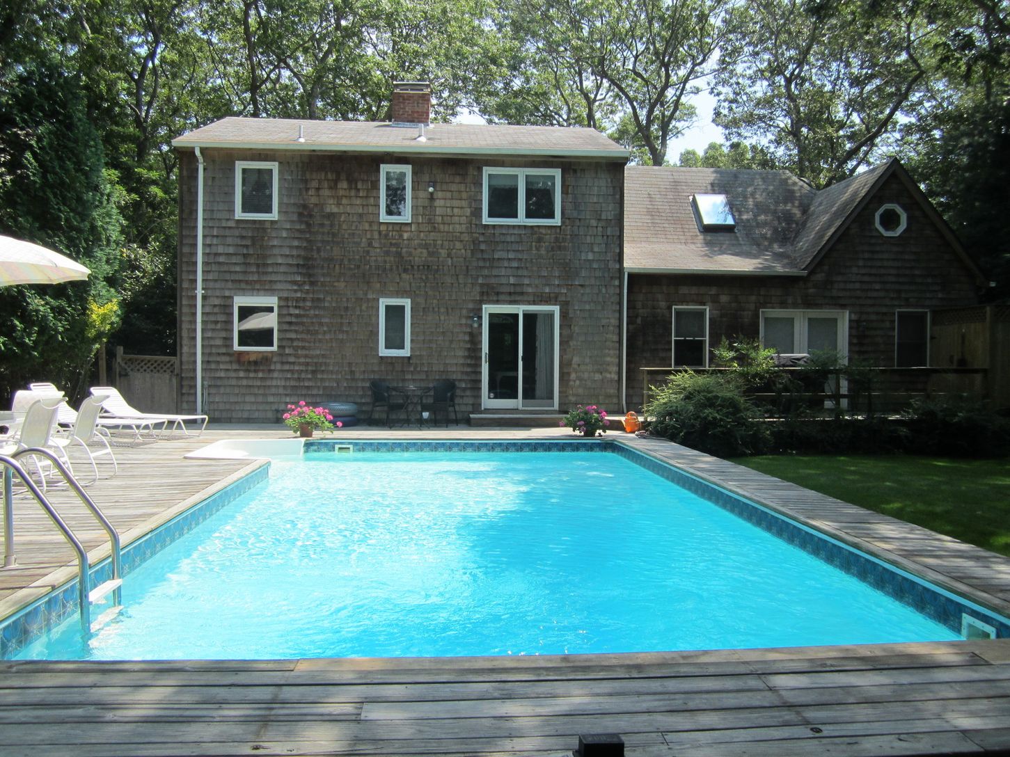 Expanded and renovated Salt Box. First floor provides entry foyer, vaulted ceiling living room with fireplace, open kitchen with custom cabinetry, dining room with French Doors to the deck, powder room, and a spacious master bedroom suite. On the second floor there are two guest bedrooms with Jack and Jill bathroom. Pool, decking and outdoor shower. Beach and marina access. Web# 32523