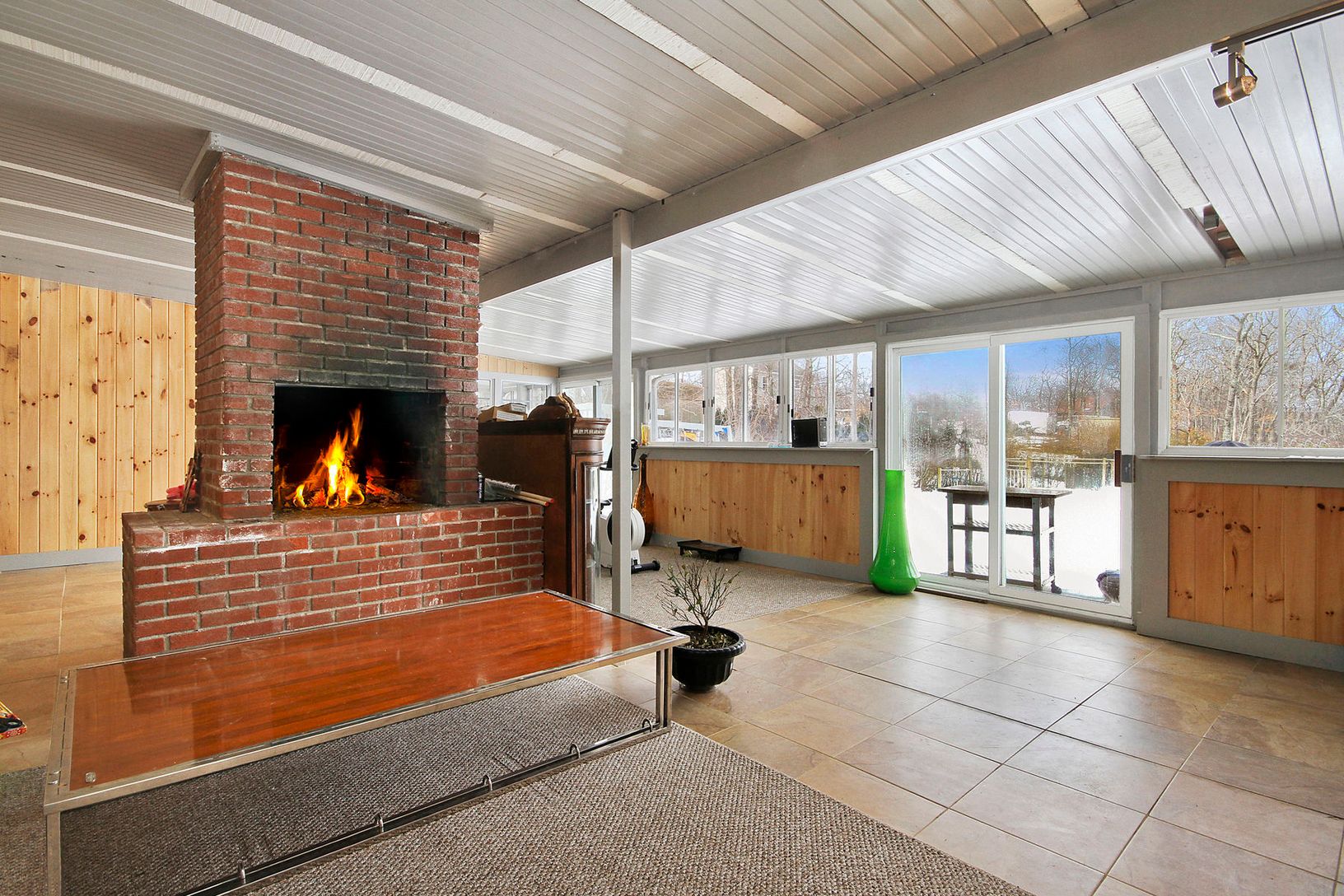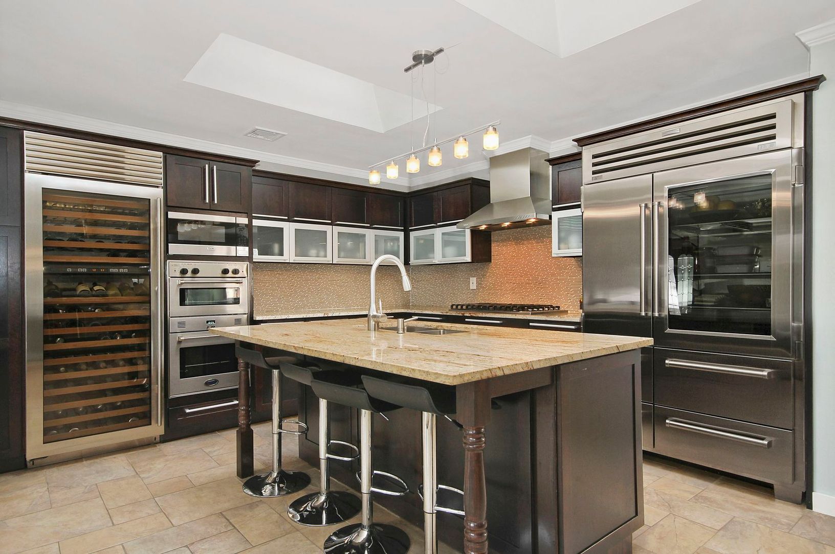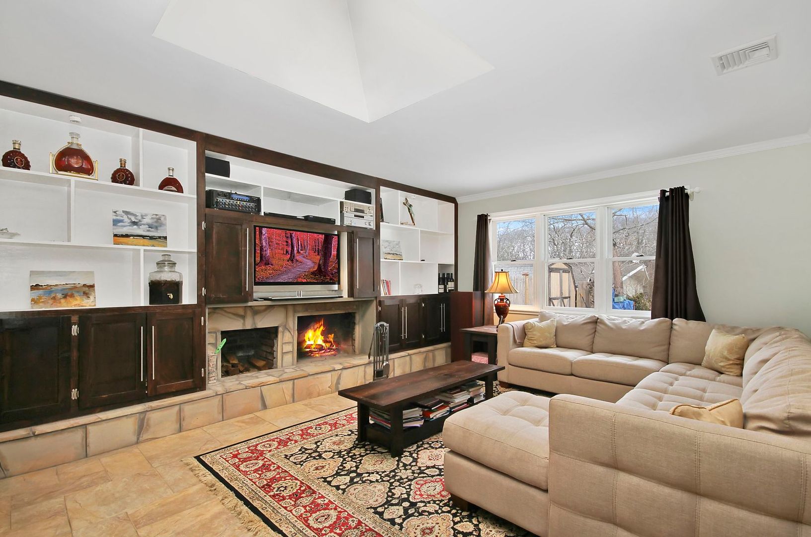 Totally renovated with a spectacular kitchen that has a large island and counter seating. This three bedroom two bathroom home has been updated with care and thought by the present owners. There is new tile flooring throughout. Stylish bathrooms and an upscale chefs' kitchen with skylights, custom cabinets and granite countertop are amazing features of this house. The living room has a fireplace and cabinets with bookcases. Central air condit