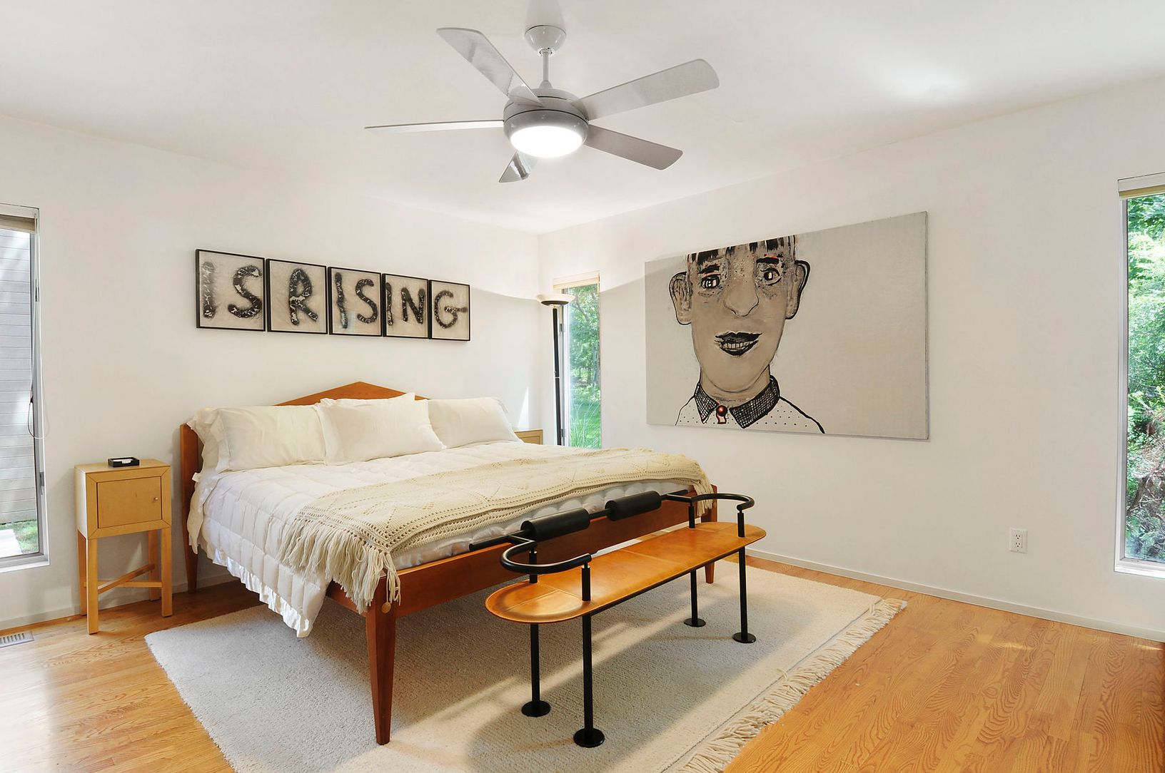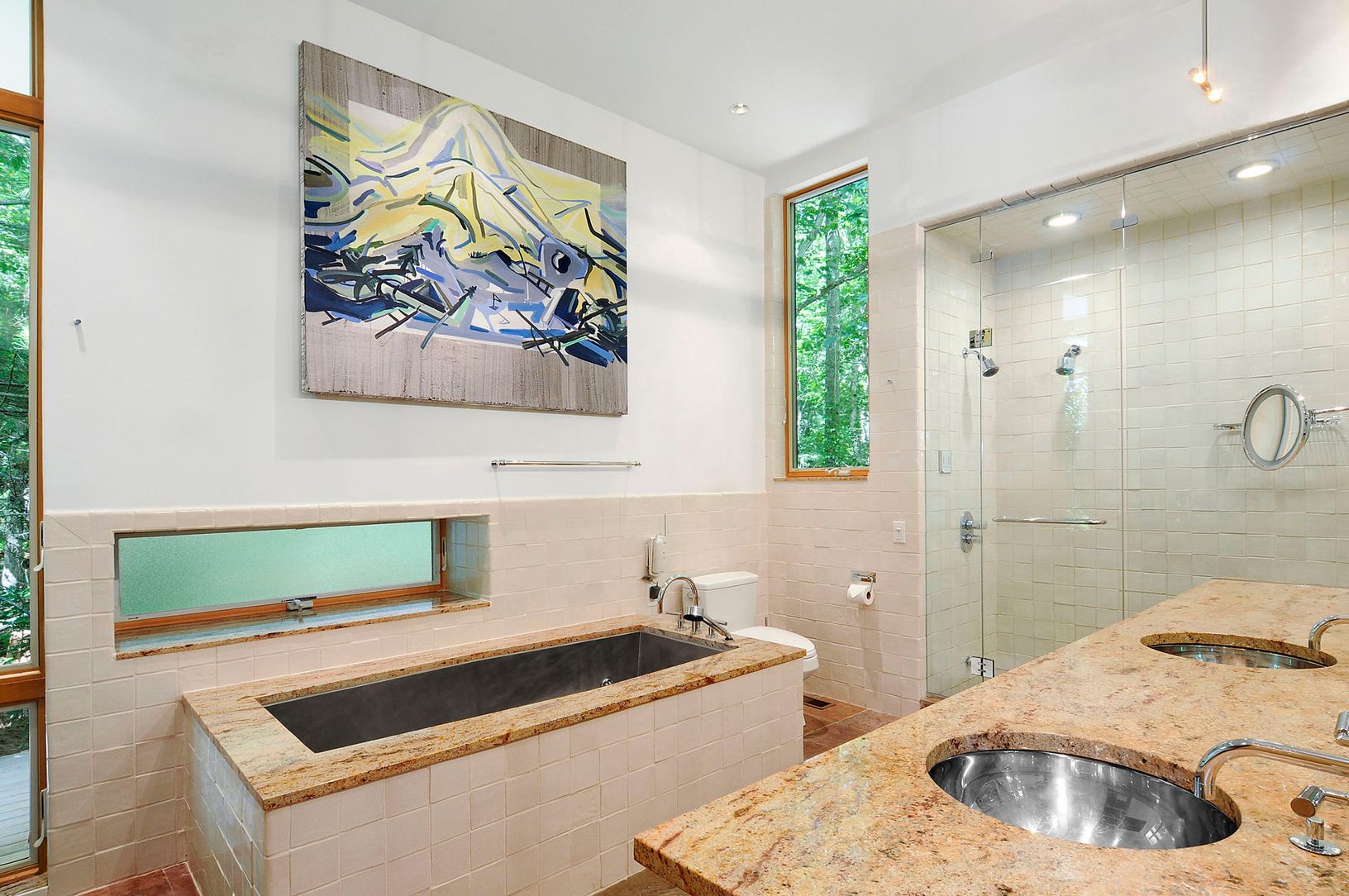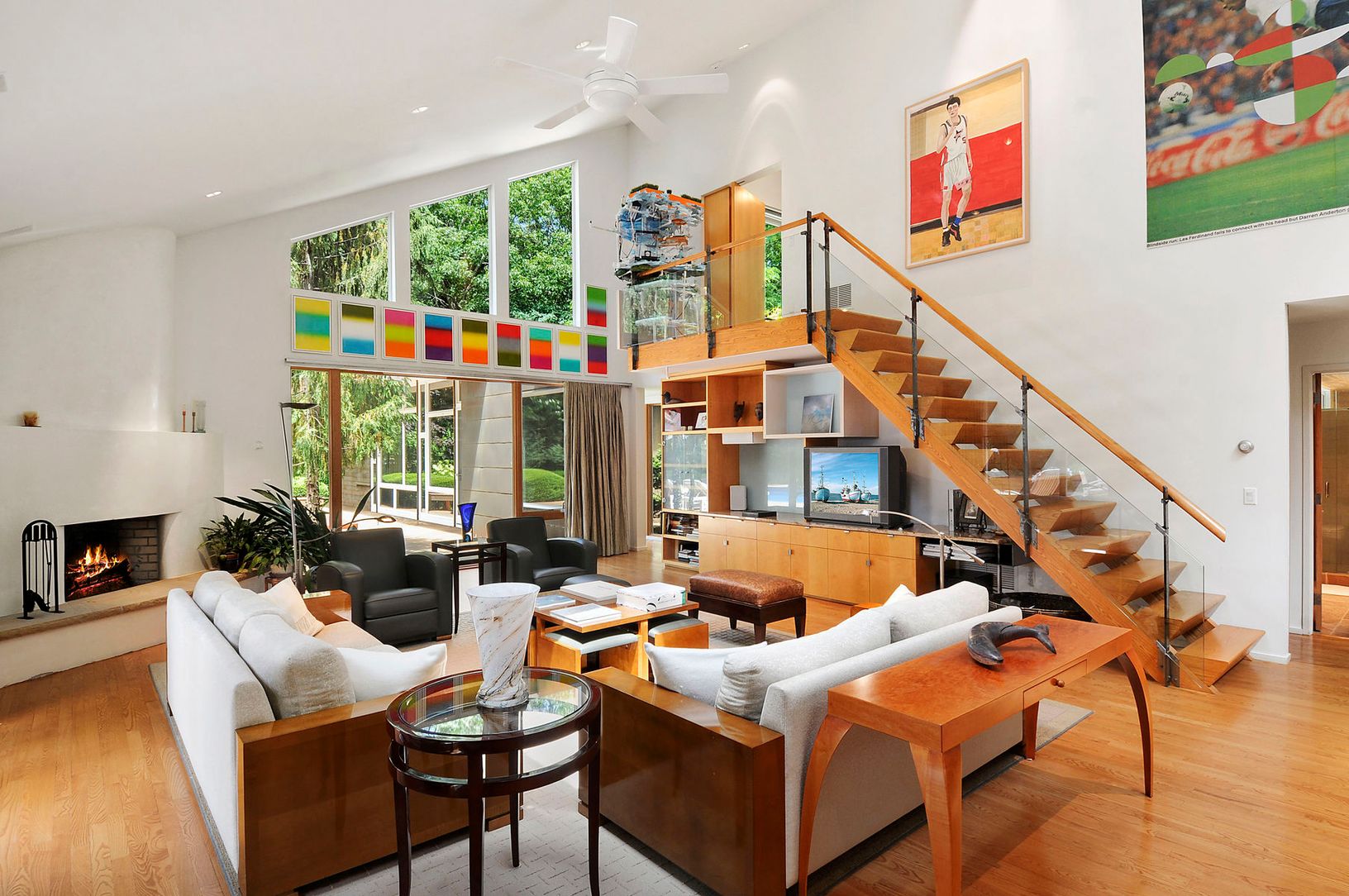Sophisticated and comfortable, this 4500 sq ft contemporary in near northwest, built in 1994 on 1.3 acres includes 3 bedrooms, 3.5 baths, an office/den and a 1230 sq ft gallery added in 2004. The living room looks onto 2000 sq ft of cedar decking, a 20 x 40 heated pool, and a hot tub. There are two fireplaces; one in the living room and one in an upstairs second master suite. A free-form stairway to the upstairs master is custom-designed by