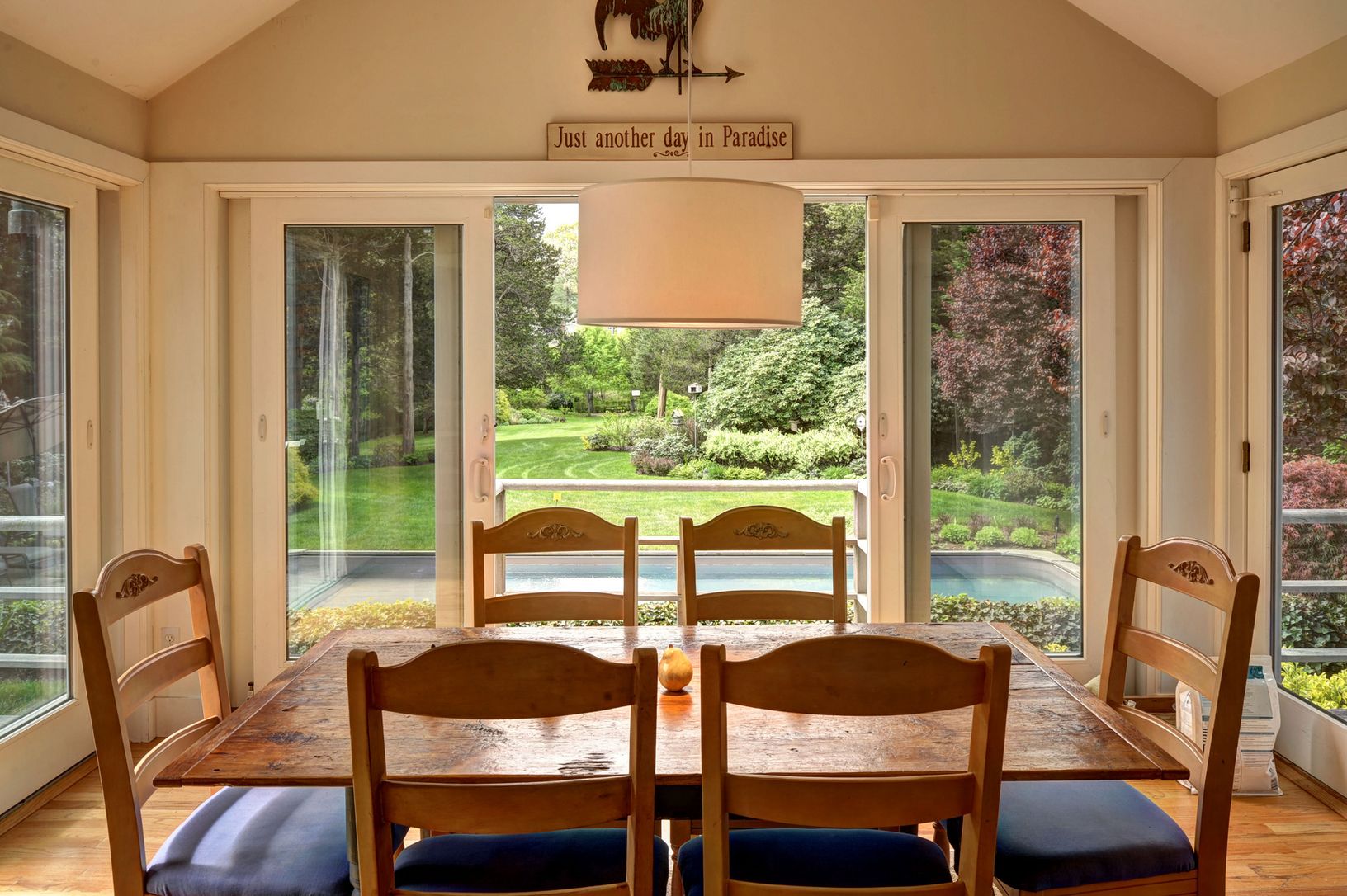 SOLD. This strikingly simple and solid home on the fringe of East Hampton Village proper has been lovingly transformed by its Artist/Designer owner into the light filled beauty that it is today. A gracious foyer, sun filled dining room, the expansive living room, all opening to published gardens, and a renovated cook's kitchen provide the perfect places for family or private time. The master bedroom (new ensuite bath) opens to the property on