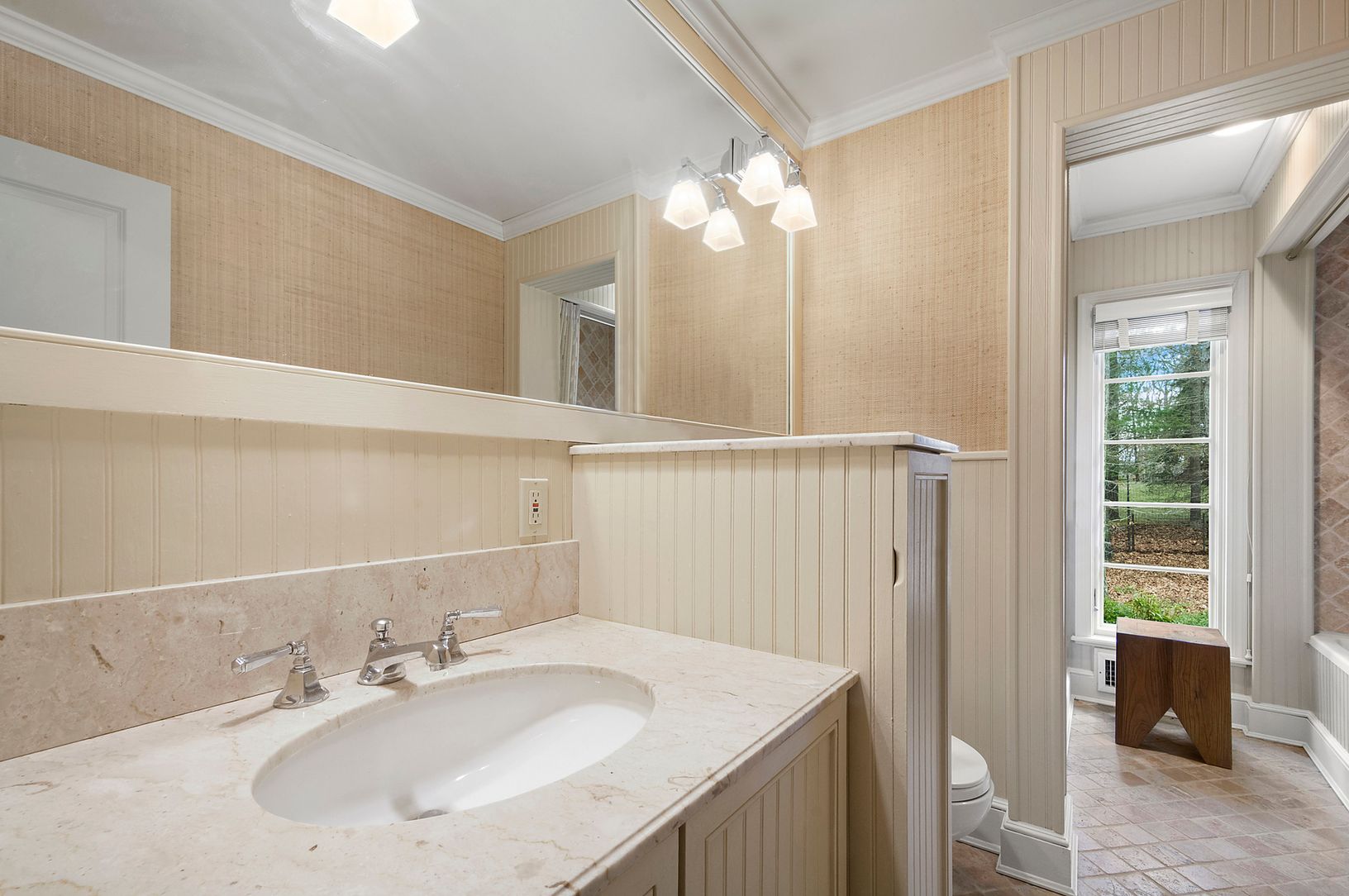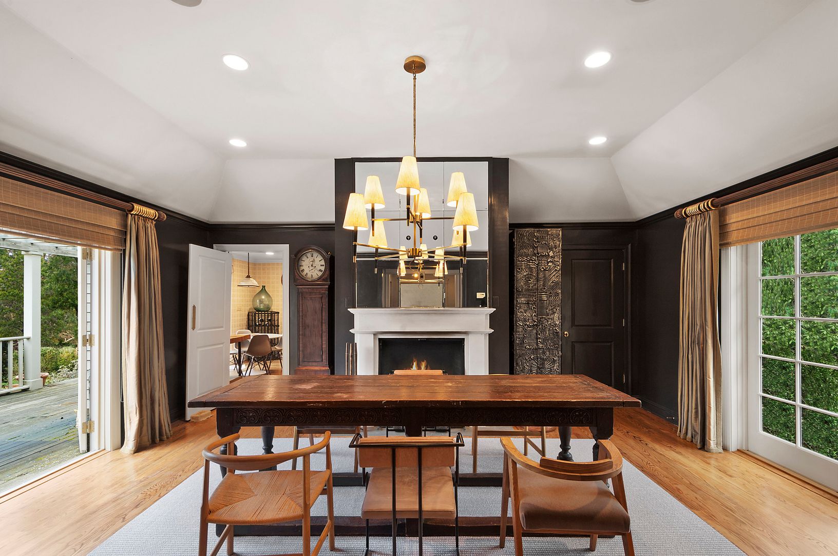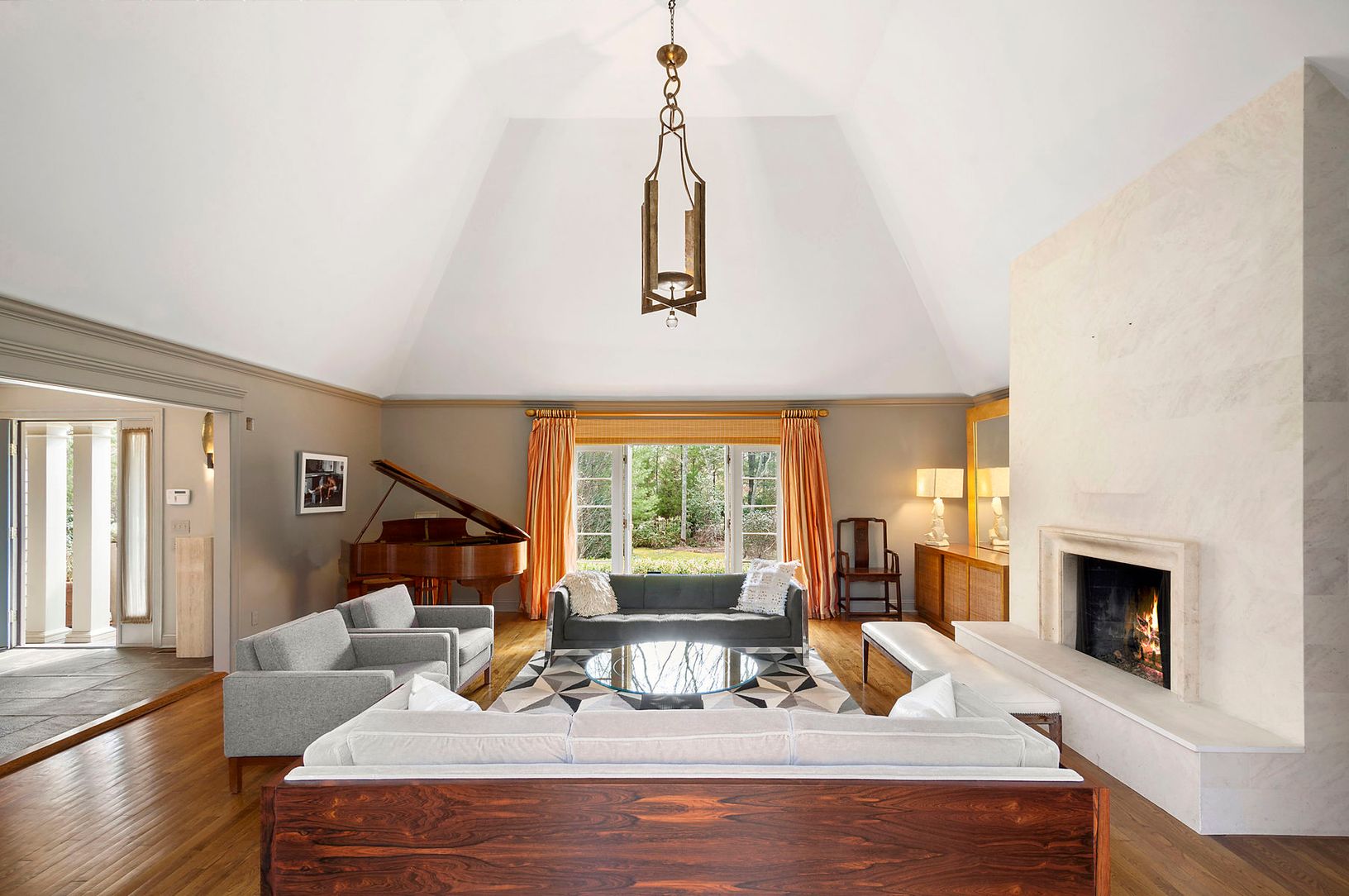 The elegant entry foyer opens on either side to large living and formal dining rooms, both with fireplaces and cathedral ceilings. The en suite master is separated from the guest wing with 2 additional bedrooms and their own bath. All major rooms open to the front and back decks and pool through french doors bringing light and the outdoors in.