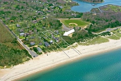 A RARE OPPORTUNITY! True Waterfront nestled by wild acreage of Blue Bay Girl Scout Camp, abutting the dune beauty of Maidstone Park, and bordering the pristine waters of Gardiners Bay. 1.12 acre with direct beachfront on Gardiner's Bay. Spectacular sunsets. Existing beach cottage and garage create a perfect 'footprint' for new construction, and Suffolk Cty. Dept of Health approval in place for new septic and well. Acreage accommodates substant