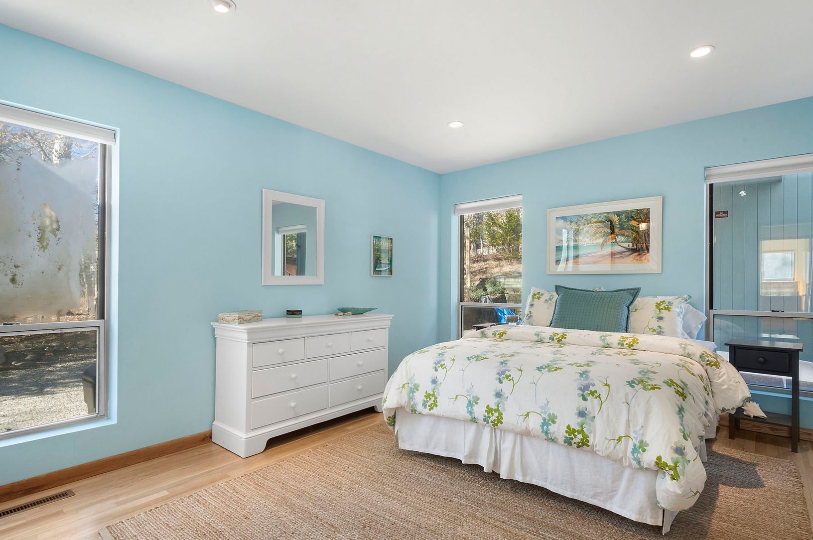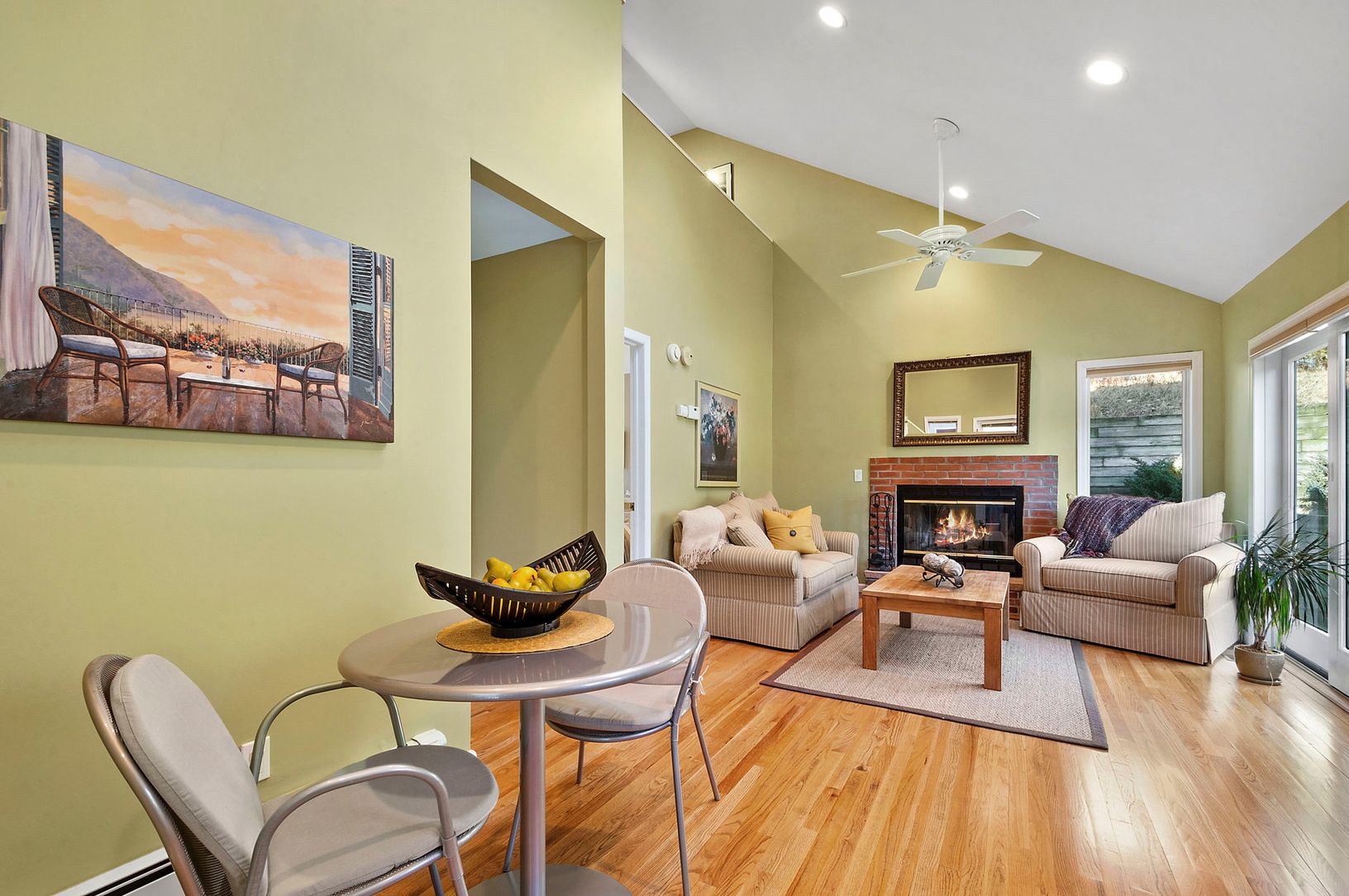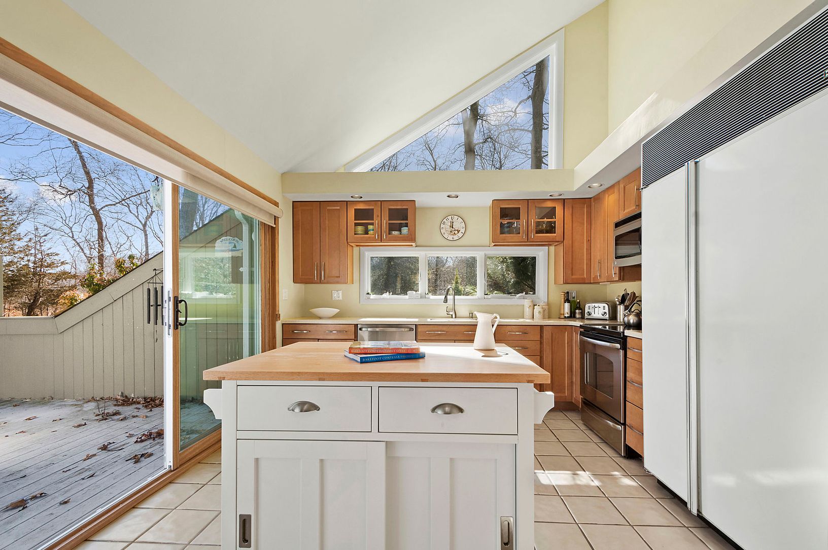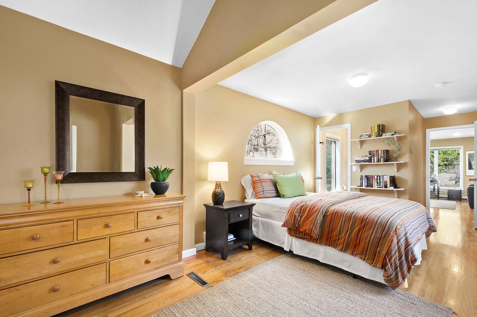 SOLD. This spacious contemporary with separate guest suite is perfect for an extended family, a house filled with guests or a professional office. A sunny great room with a wall of glass doors to the multi level deck and heated saltwater pool is the centerpiece. additional 'public space' is provided by an office and a second living room with fireplace. A finished basement has a large rec room, laundry room, a full bath and ample storage. Five