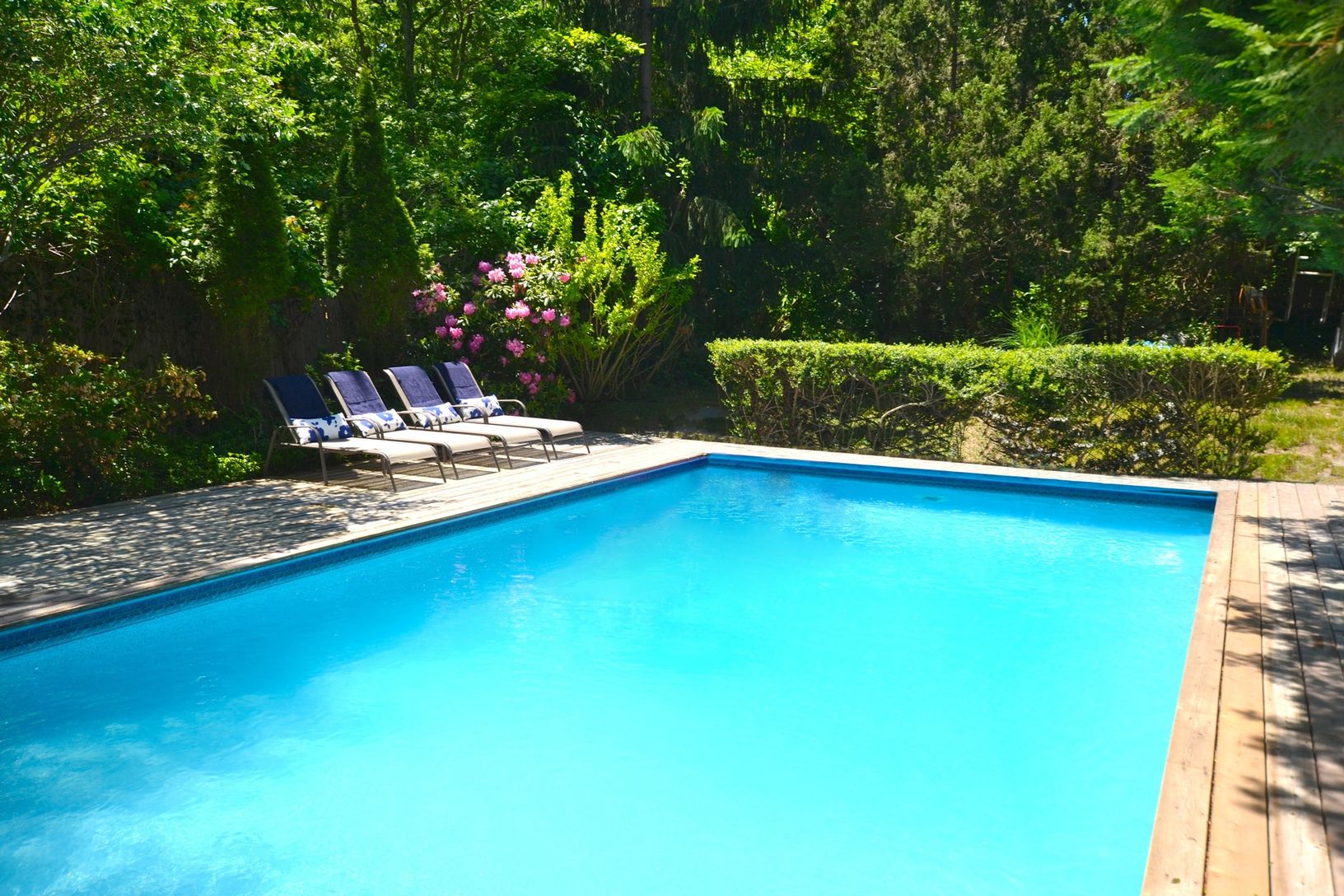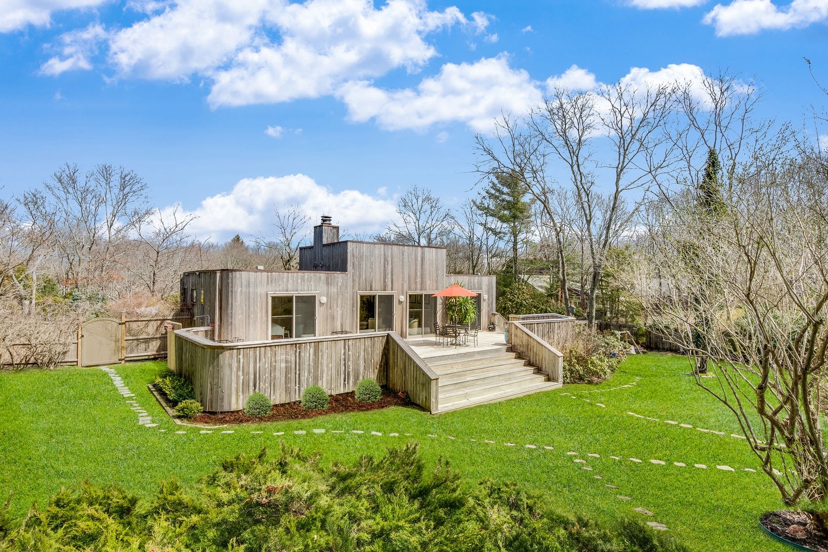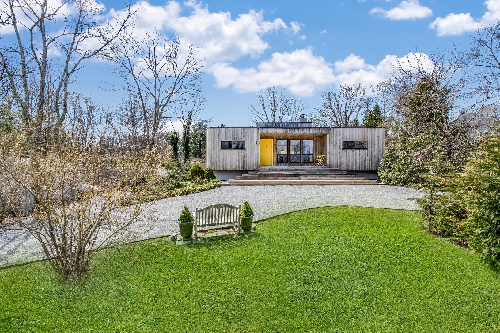SOLD! Set at the end of a quiet cul-de-sac, this bright contemporary home overlooks the beauty and privacy of an exceptional property with mature landscaping, heated pool, extensive decking, separate patio, and an outdoor shower. In addition, there is a charming and secluded studio / cabana with the wonderful conveniences of water, electric and cable. The residence features a central living room with cathedral ceilings and tremendous light fro